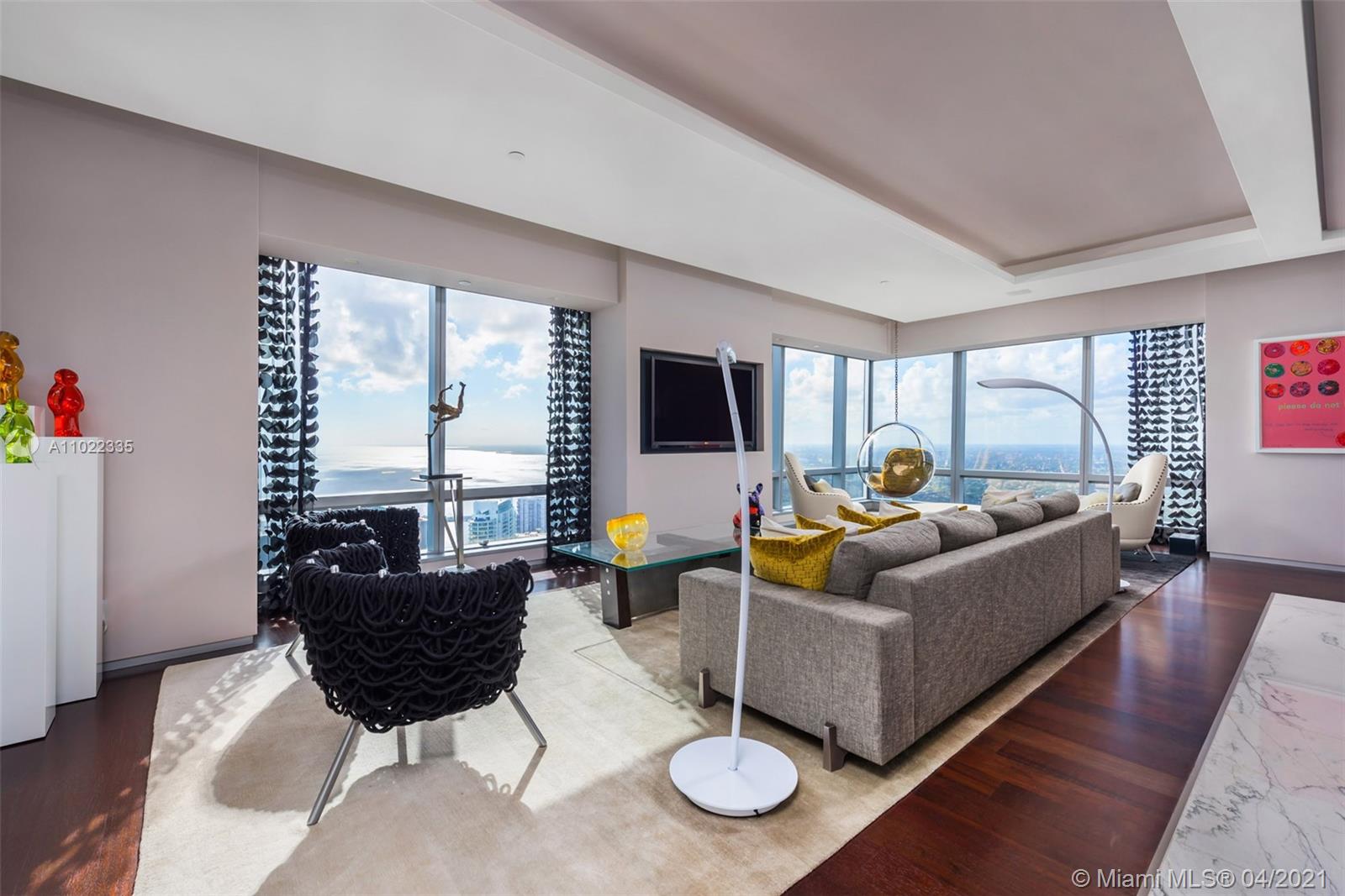 Enjoy living a life of ultimate luxury in this award winning one of a kind 65th floor Four Seasons Brickell residence. Completely transformed by renowned ODP Architects. Every detail of this complete renovation is crafted w/precision. This Oasis in the sky offers unobstructed Biscayne Bay views & sweeping tree top canopy/city views. This 2BR/2.5BA corner unit has spacious living areas w/views from all spaces. Open gourmet kitchen w/ top-of-the-line appliances. Master bath feels like a day at the spa, beautiful wood & marble floors, custom powder room sink, master bedroom mirrors, expansive master suite & 2 balconies. 5 star amenities: concierge, 24-hr valet, restaurants, 3 pools w/ cabanas, spa & Equinox gym.