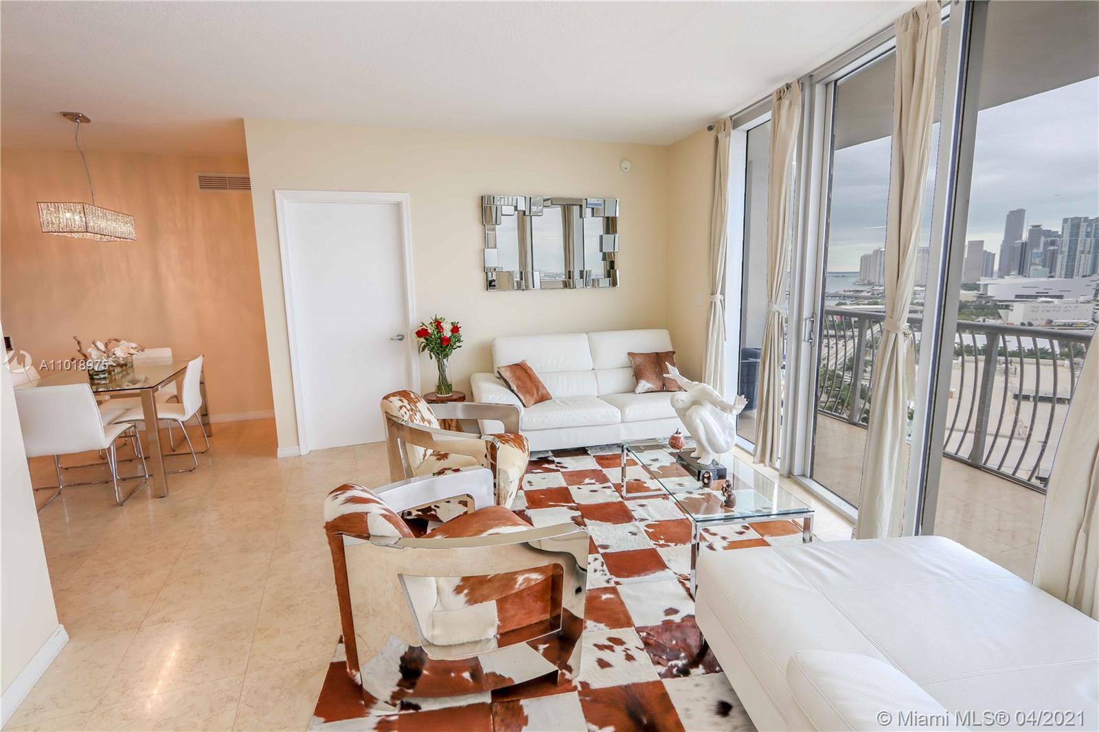Beautiful 2 Bdrms 2 Bths with partial views of Biscayne Bay and Miami Skyline. Unit comes with Italian kitchen cabinets, stainless steel appliances, granite countertops and modern baths with a large balcony to entertain guest. Bldg amenities incl: swimming pool, Lounge room, 24 hrs security, valet, concierge, business center, fitness center and more. Located in the heart of Miami in front of Margrate Pace Park, Arsht Center and minutes to Arena, Bayside, Brickell, SoBe, Wynwood, Design District and Airport.