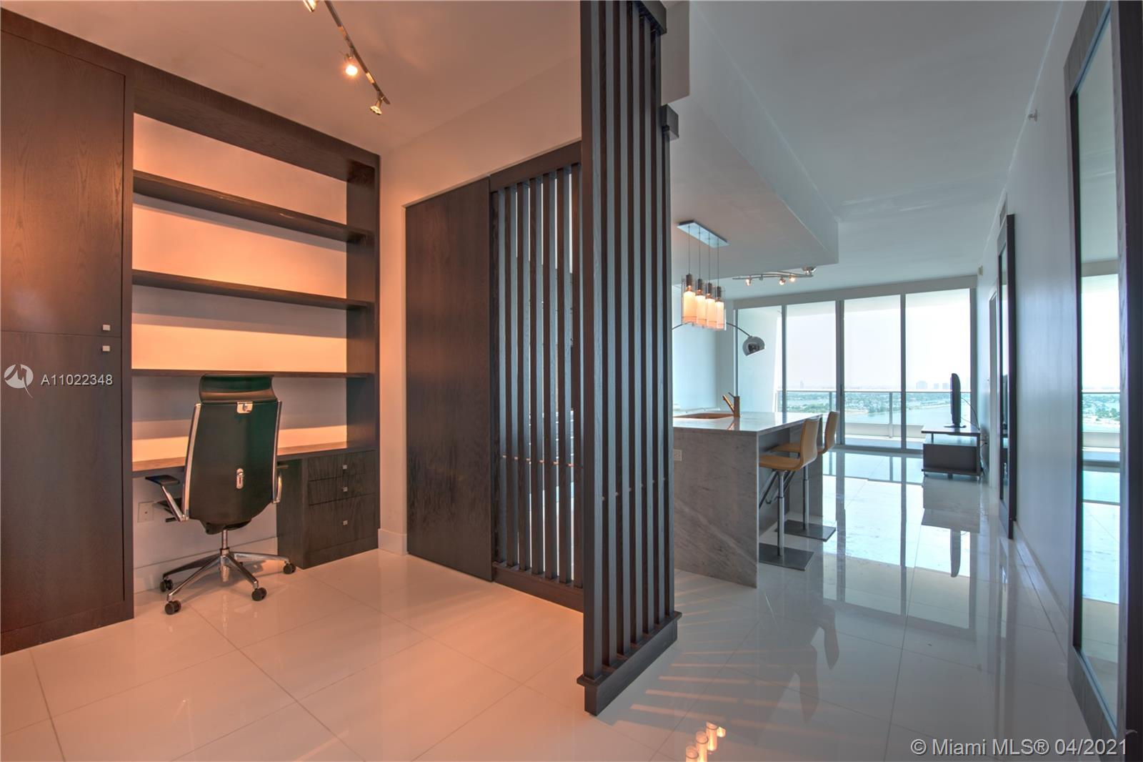 TENANT-OCCUPIED THROUGH MARCH 14, 2022. A stunning 1 Bed + Den/2 Bath condo at 900 Biscayne Bay featuring white tiled floors, electric shades in the living room, custom mirrors in the living room & both bathrooms, built-in closets, and a beautifully partitioned den w/ built-ins. Breathtaking views of the bay, ocean, sunrise, cruise ships, and Miami Beach skyline from the 28th floor. The 05 line is THE BEST 1 bedroom line in the building, offering complete privacy & full concrete walls on either side of the unit. Monthly maintenance dues cover cable TV, internet, and water. Building amenities include a full-service spa; men's & women's locker rooms w/ sauna, steam room, and Jacuzzi tub; state-of-the-art fitness center; resort-style pool; lap pool; clubroom w/ kitchen & pool table; and more.
