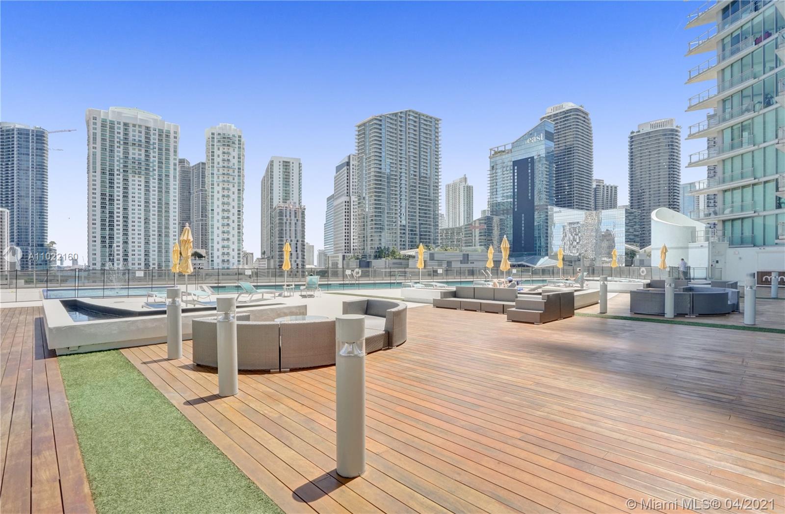 Rarely available, the best line at the Mint at the River Front. Amazing 2 bed 2.5 baths + den (den can be converted into a 3rd bedroom), large master bedroom, marble floors, massive balcony (236 Sqft), beautiful views of the river, and Brickell City Center. Stainless steel appliances, granite countertops, and Italian kitchen. Parking space conveniently located near the elevator. Two gatted guard entrances. Exclusive 5-star amenities including fitness center, bar, pool, business center, active room, 24-hour concierge, valet parking. Close to dining, shopping, minutes from beach, airport, and Financial District Brickell