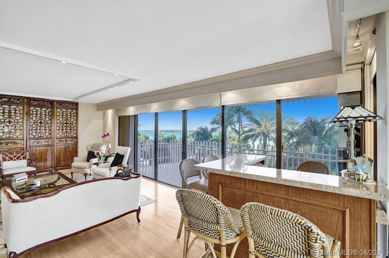Great opportunity to own a corner unit in building 1. This large 3 bedroom, 2.5 bathroom offers south views of the bay, Dinner Key marina, Downtown Coconut Grove, and lush tropical landscapes. The floor plan spreads to 2,424 square feet and features wood floors in the main living areas, two terraces and spacious bedrooms. The kitchen has stainless-steel appliances, granite countertops, and an eat-in breakfast area. The primary bedroom has its own en-suite bathroom, dule walk-in closets and its own terrace. Great for entertaining, the living room has a custom built-in bar shared by a beautiful formal dining space. Enjoy an evening beverage while watching breathtaking sunsets. Live on a gated 20-acre isle with security, services and resort style amenities.