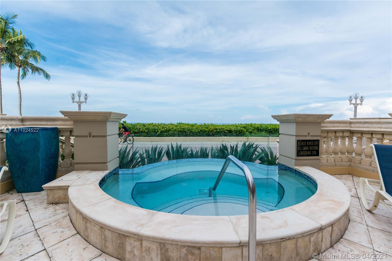 This luxury apartment has the BEST, PRIVILEGE and PRIVATE NORTH SIDE location of this STUNNING MEDITERRANEAN BOUTIQUE building on the Beach (only 40 apartments of 62 units building), with AMAZING, UNIQUE, PRIVATE, and UNOBSTRUCTED panoramic views of the OCEAN, BEACH, PARK and INTRACOASTAL. You can enjoy all these priceless views from relaxing of any of your beds, living sofas or just by sitting down in THE HUGE COVERED and UNCOVERED TERRACE with approx. 1,000 sq. fs. with DIRECT ACCESS from MASTER and SECOND BEDRROMS, AND SOCIAL AREAS. PRIVATE ELEVATOR DIRECT TO THE UNIT FOYER, provides the ultimate PRIVACY. HIGH IMPACT DOOR-WINDOWS. walking closets, master has his and hers closets and his and hers bathrooms with jacuzzi spa tub and shower. Gourmet kitchen with high end appliances.