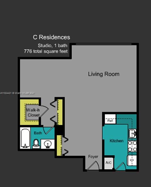 • Жилая площадь: 776 фут² / 72 м²