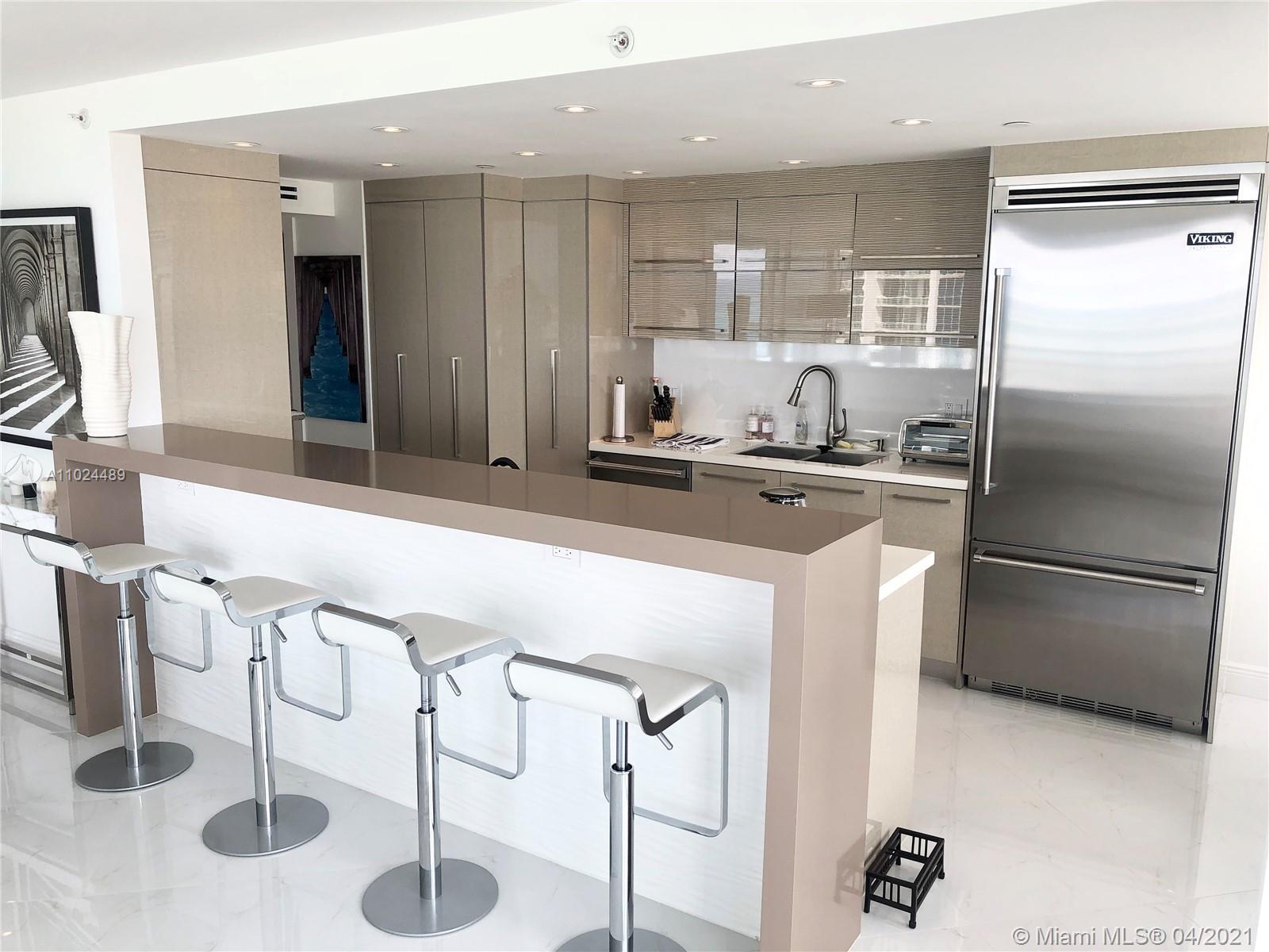 "JUST BRING YOUR TOOTHBRUSH". High-end modern gut-renovated corner residence with wrap-around terrace and stunning ocean, city and downtown views. Two well-appointed, spacious bedrooms with 3rd bedroom that can also be utilized as an office or den with sliding telescope door for flexibility and privacy. Luxury features include stainless steel Viking built-in appliances, motorized shades throughout, custom lighting, Porcelanosa floors. gorgeous bathrooms, and hurricane impact windows. Best priced, high floor 3 BR luxury in Sofi. Located in the renowned South of Fifth neighborhood, you are steps to the Atlantic Ocean, dozens of 5-star restaurants, marina, bay walk, ocean boardwalk and South Pointe Park.