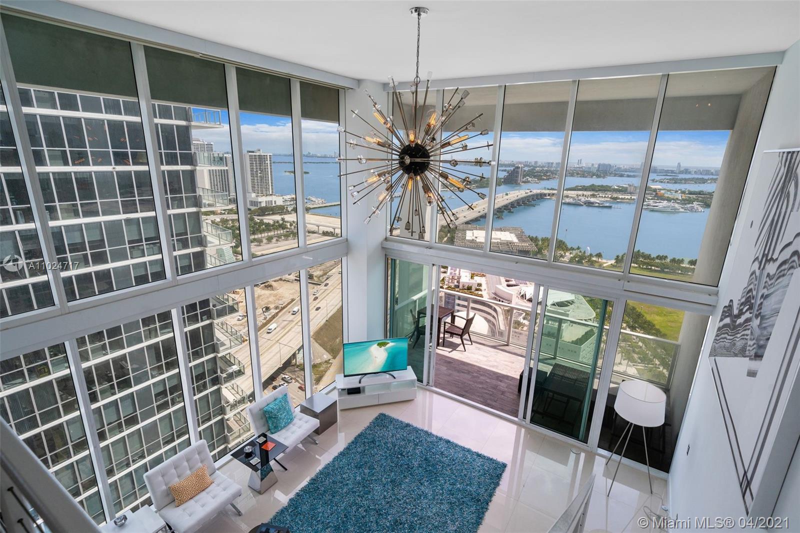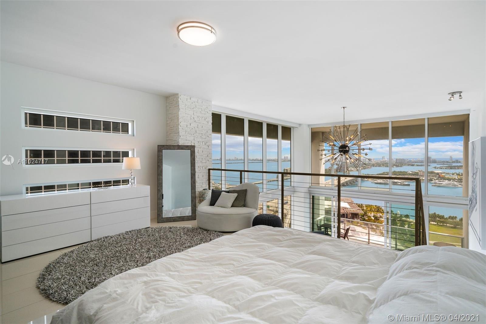 LOCATION, LOCATION, LOCATION & A MILLION DOLLAR VIEW. THIS BREATH TAKING 2 STORY LOFT HAS 1 BEDROOM W/ FULL BATH & A HALF BATH DOWN STAIRS & A MASTER BEDROOM & BATH UP STAIRS WITH THE GLASS ENCLOSED SHOWER OVER LOOKING THE BAY & SOBE . THIS CORNER UN IT BOASTS A TRUE 2ND BEDROOM W/ EXTRA LARGE CLOSETS W 2 STORY STONE COLUMN FACADE IN THE MAIN ROOM. THE UNIT ALSO HAS LARGE GLASS TILE FLOORS,ELECTRIC SHADES BOTH SILHOUETTE & BLACK OUTS & A VERY LARGE BALCONY OVER LOOKING THE BAY, PARK ,MUSEUMS, & SOBE