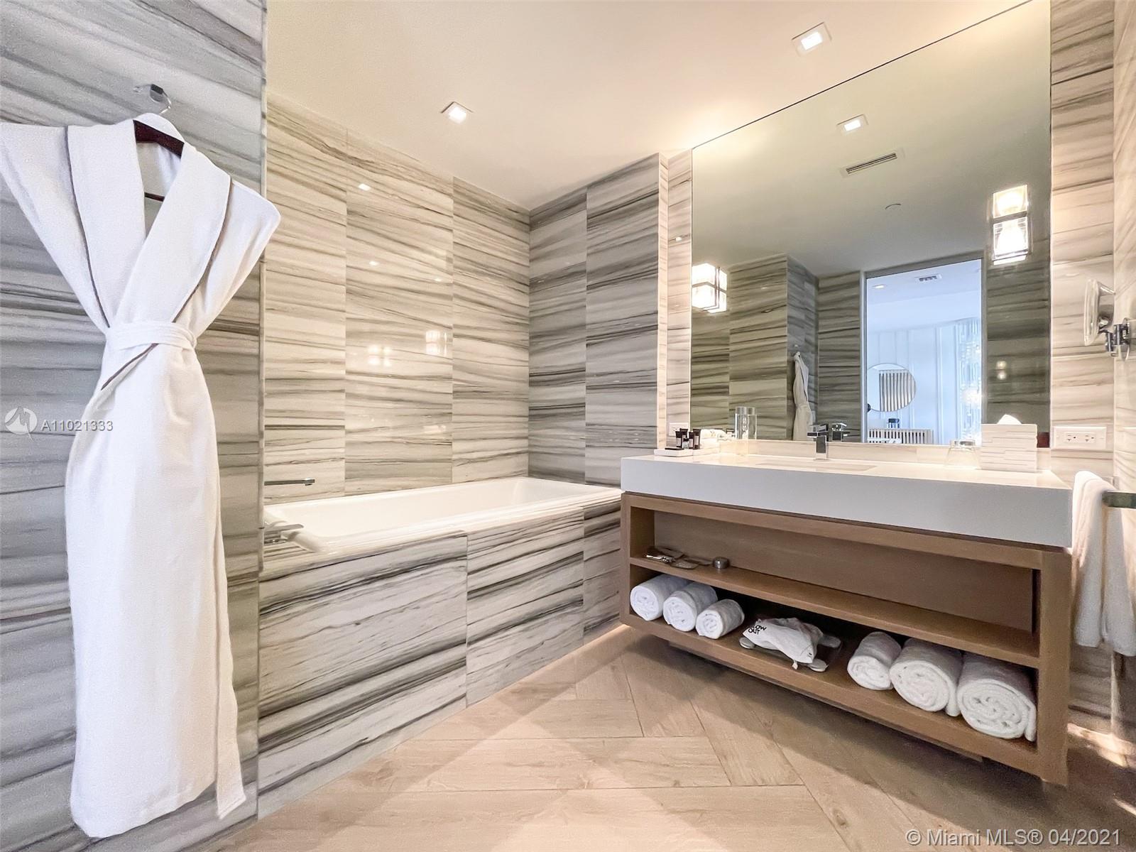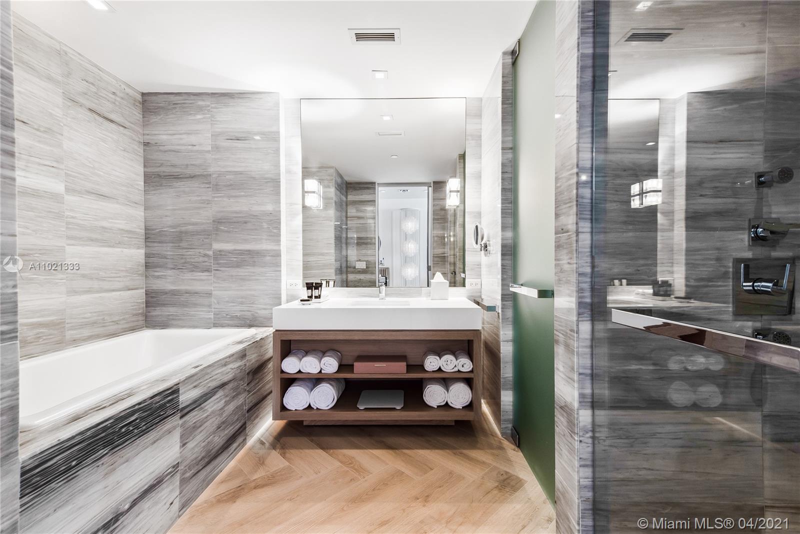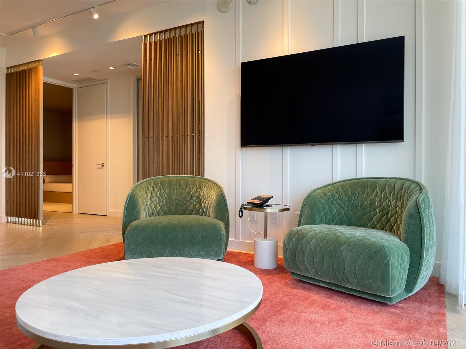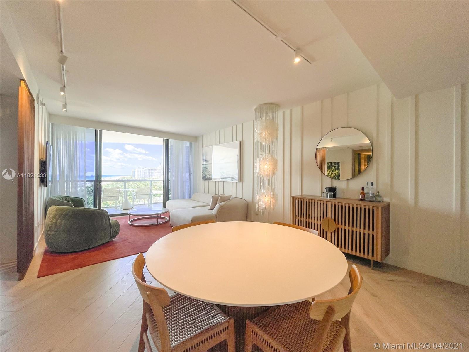 Find tranquility at The W Oasis model oceanfront residence. Exquisite fully furnished 1bd/1.5ba+den, featuring 1,026 SF of living area, open kitchen, top of the line appliances, washer/dryer, floor to ceiling impact windows and 2 distinct balconies off living & bedroom. Designer residence offers breathtaking ocean & city 180 degree views, marble bath w/ separate tub & shower + powder room for guests. Experience the finest 5star amenities, dining & concierge Miami Beach has to offer! Private full service beach, 2 picturesque pools w/ cabanas, fitness center, newly renovated 9,540 SF AWAY spa, tennis, basketball, Mr. Chow Beijing cuisine, several chic indoor and outdoor bars. May be placed in hotel program for additional income. W Residents also enjoy travel discounts at W Hotels worldwide!