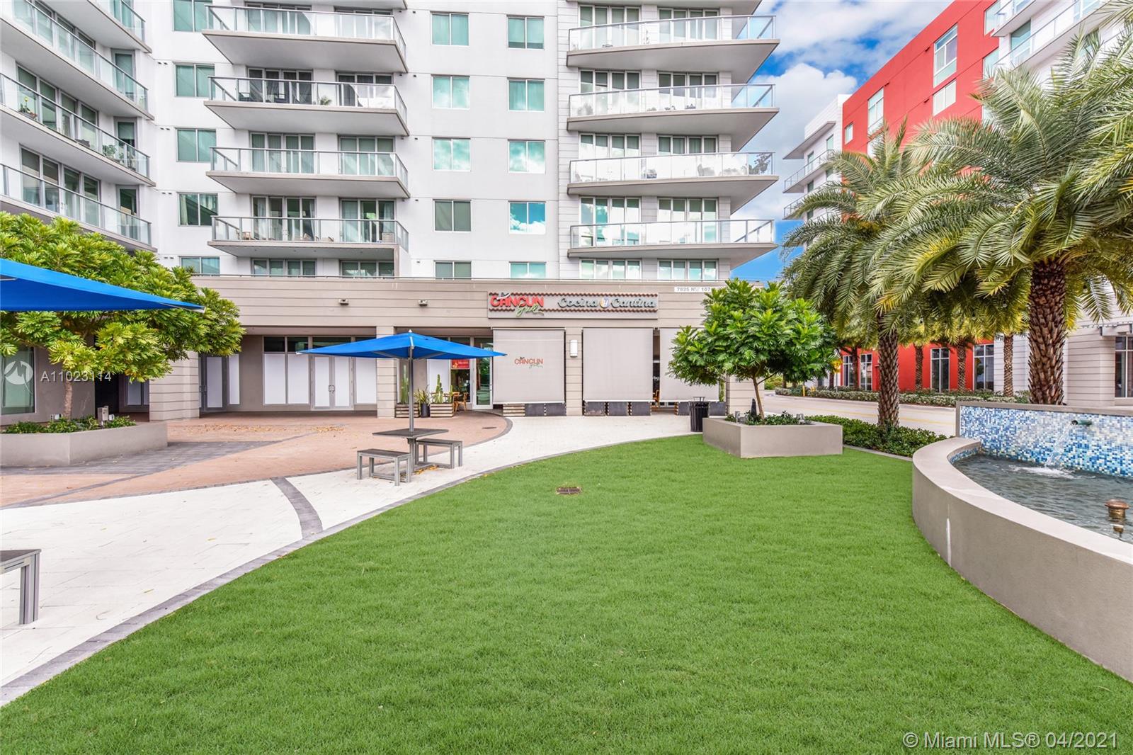 Chic and Sleek, Modern Condo in the lovely community of Midtown Doral! This property offers amazing bright-airy living quarters with oversized wall windows that provide a charming view of the community! Great kitchen with SS wall oven, snack bar counter, ample cabinet space w/ contemporary finishes. Two master suites with plenty of closet space and private bathroom, in additional to another commodious bedroom and shared bathroom. Great for guests! Washer/Dryer inside unit. Take a deep breath and enjoy the fresh air in the wrap around balcony! Location gets no better than this with everything at your convenience! At walking distance you have delectable restaurants, shops, boutiques, medical offices, Publix, and plenty do to in the lively neighborhood of Doral. Schedule your showing today!