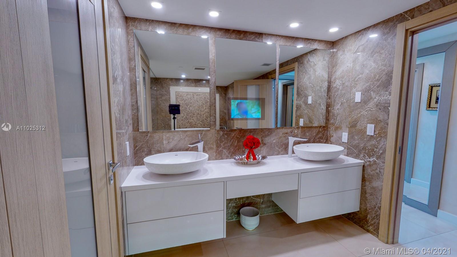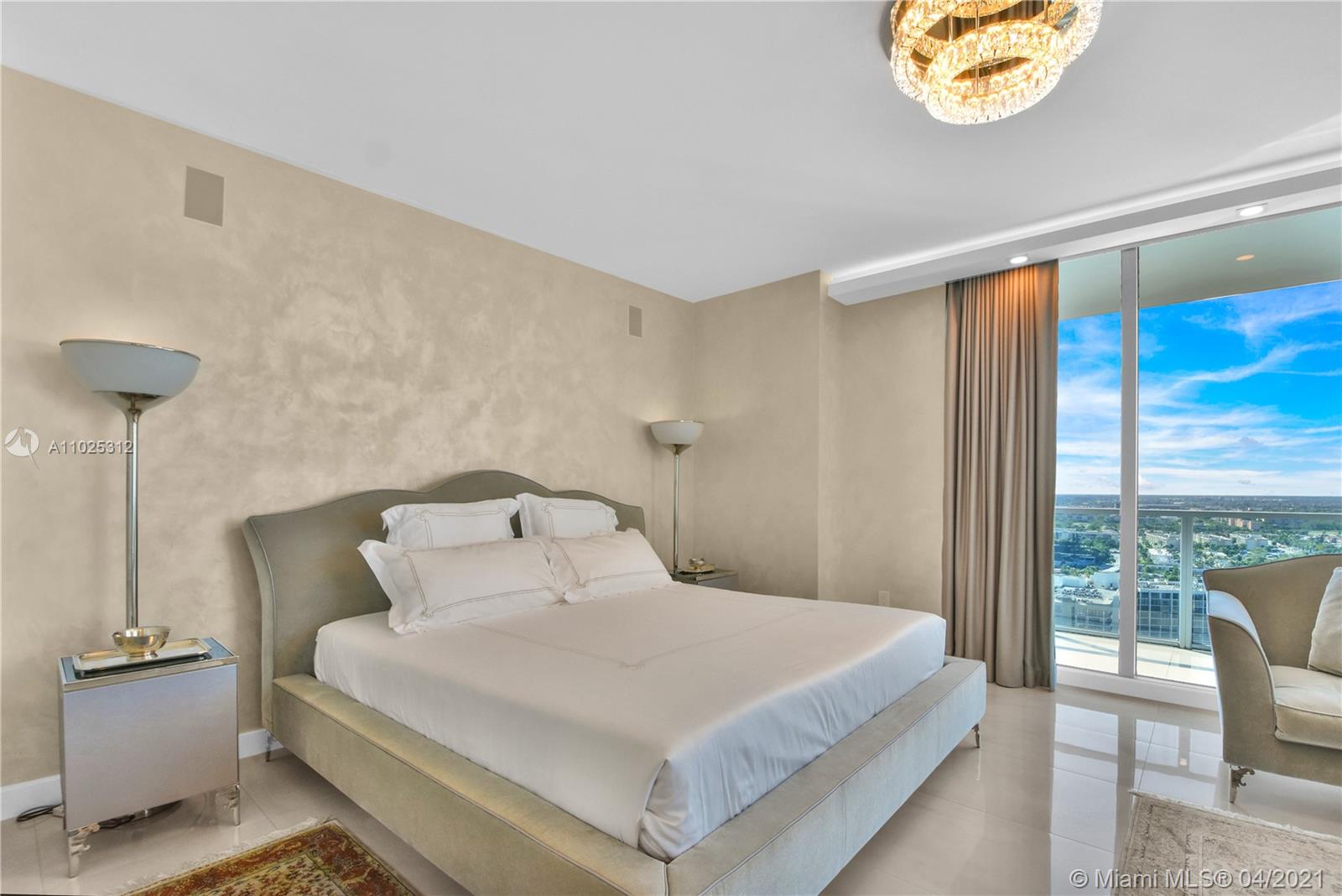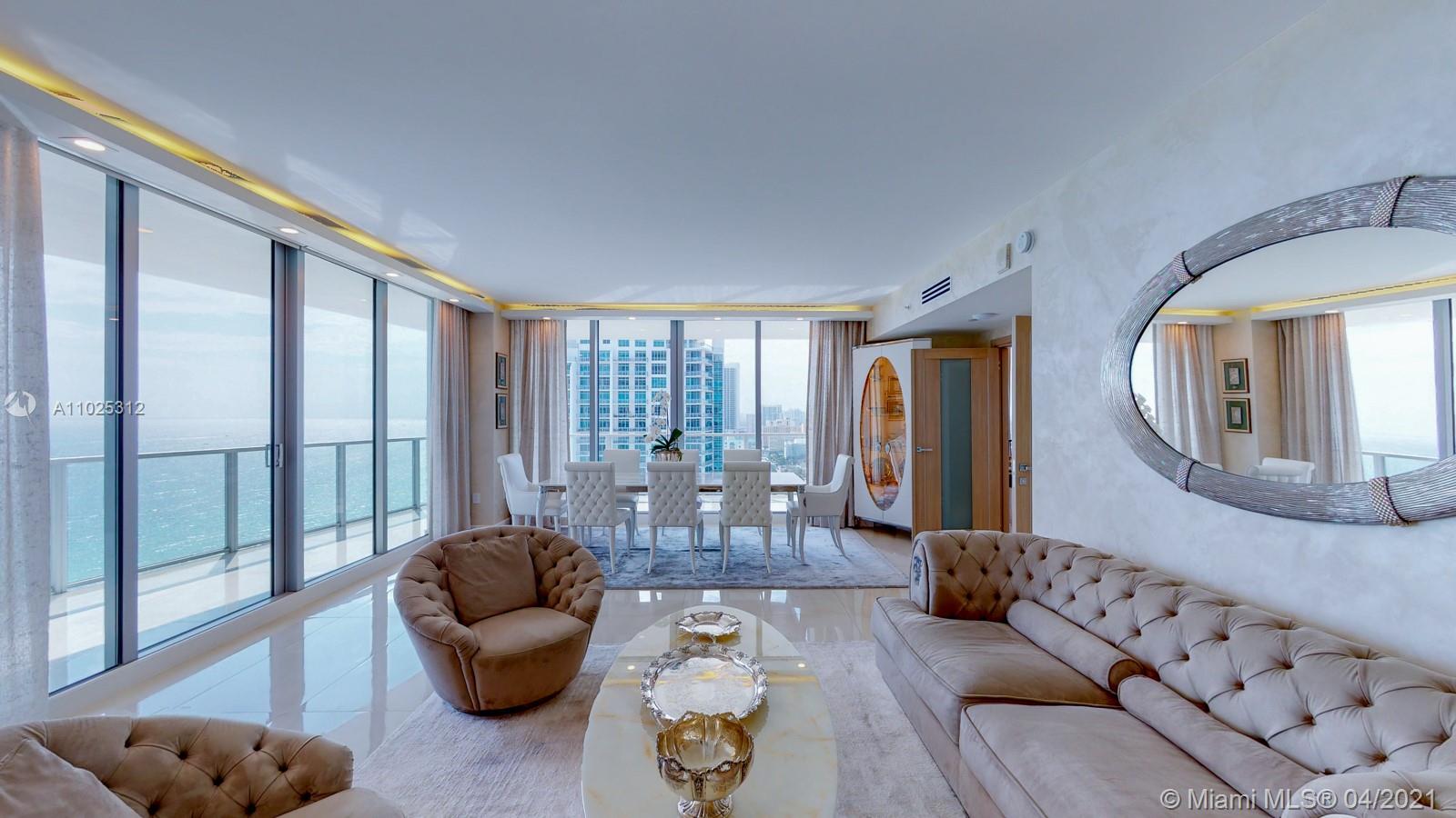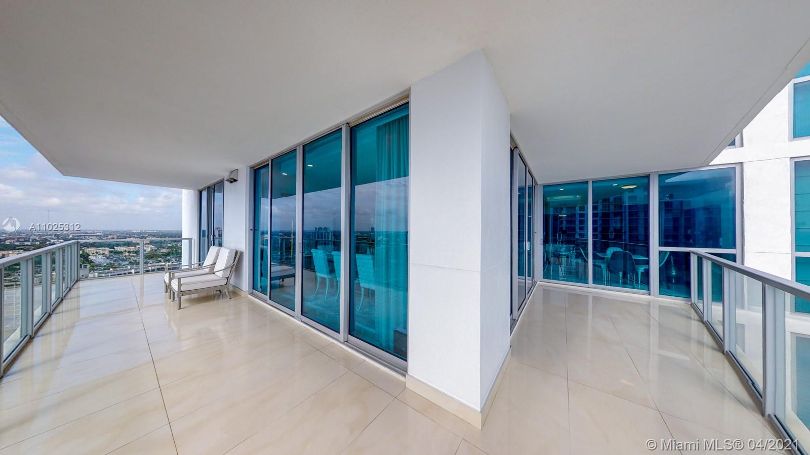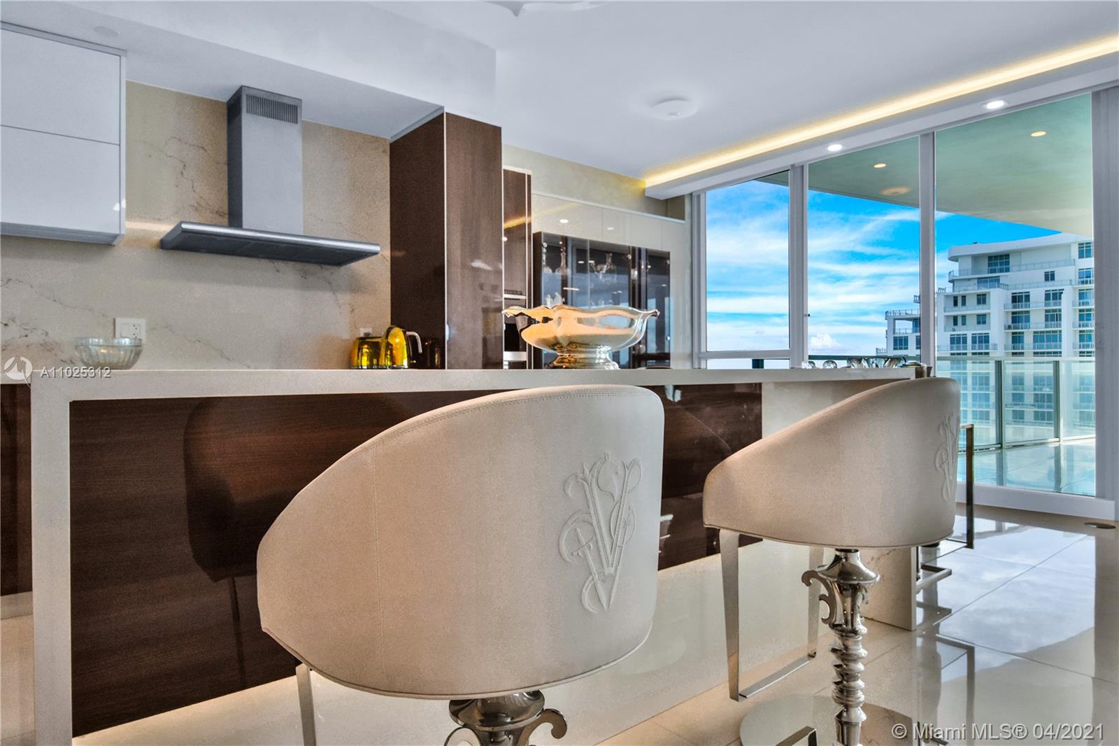 Luxuriously renovated apartment with no expense spared offering nearly 2,308 +-SF of interiors and +/-750-SF of wrap-around terraces. Wake up to panoramic views and sunrises and enjoy five-star amenities offered right here that will make every day feel like a vacation. This residence features a private foyer, floor-to-ceiling high impact windows, Italian “Versace” tiles on floors and walls, Versace wallpaper, new doors from Italdoors, Mirror TV in the master bedroom, LED/Lutron lighting, new A/C, Smart Home System, Soffits lighting, European style kitchen, upgraded European style luxurious baths with spa shower, and sumptuous master suite with hers/his Velart closets. Electric shades, Sound system, Italian Deco Painting on walls.Onyx Slab on the flooring at the foyer. New washer/dryer.