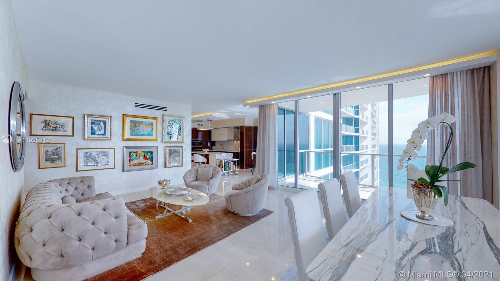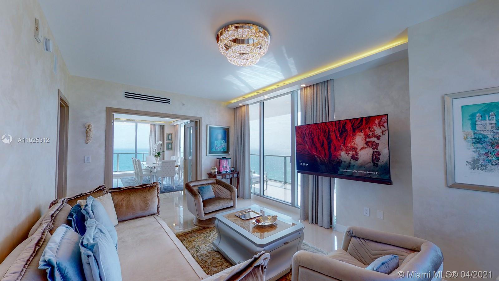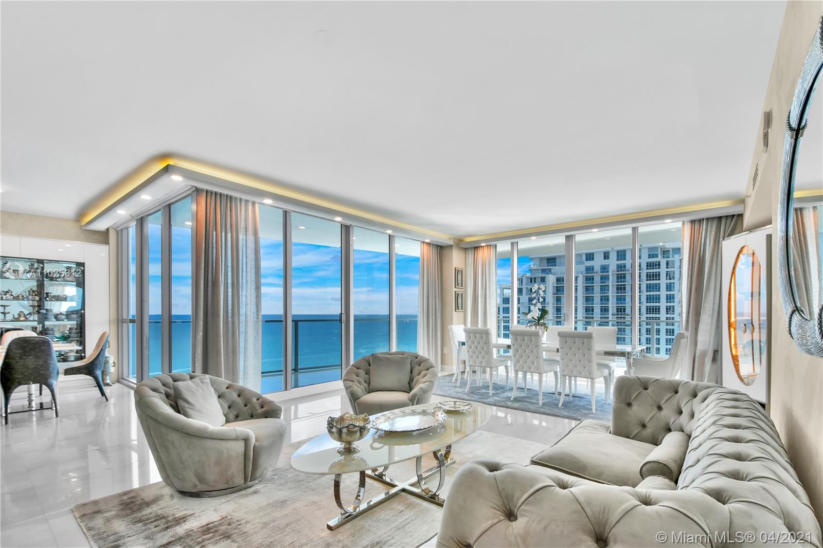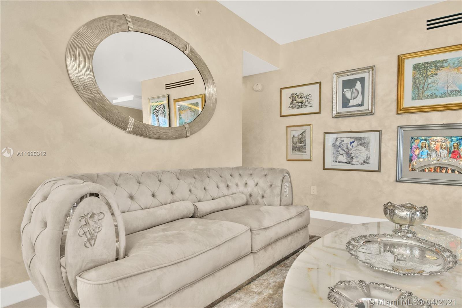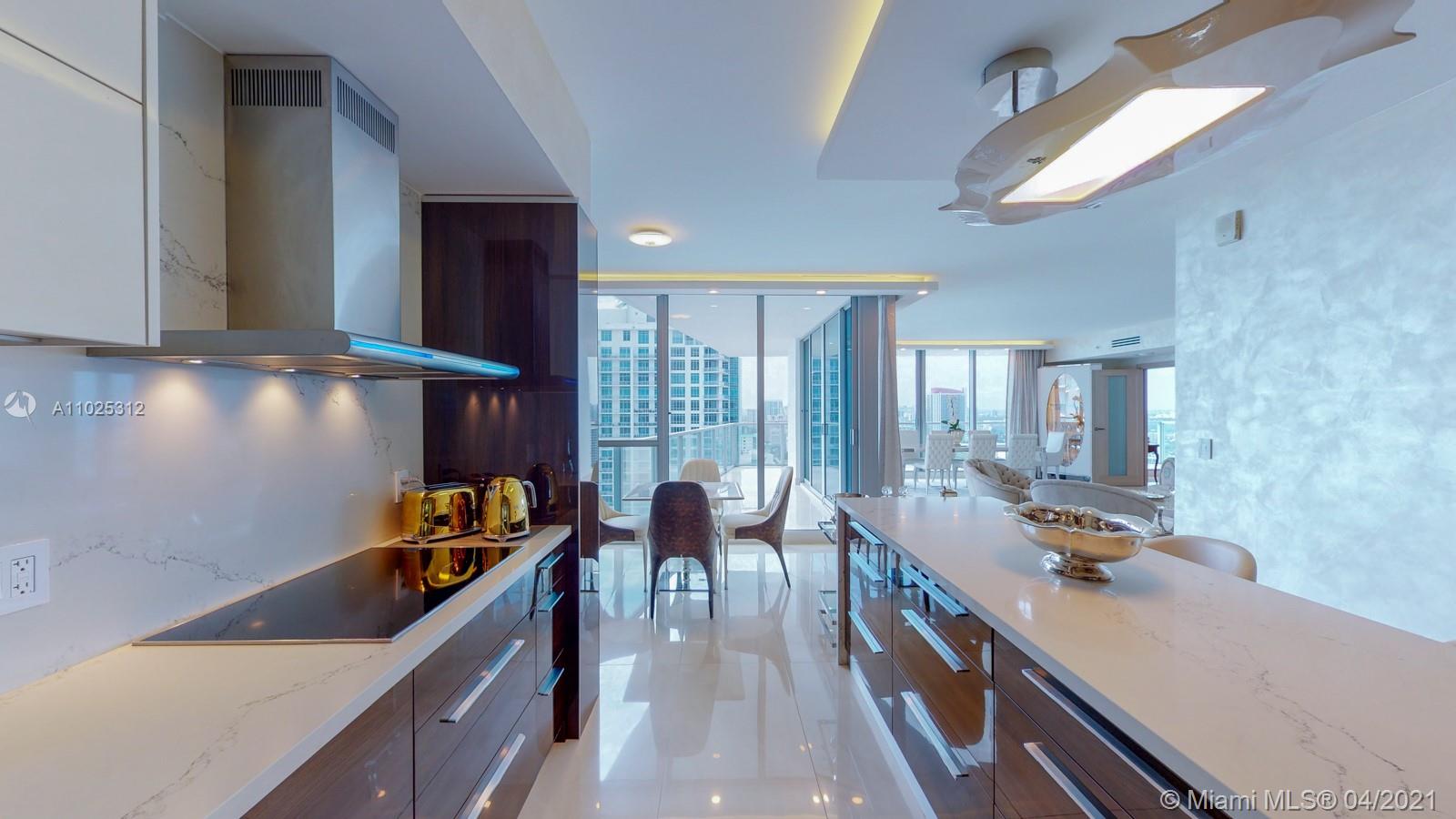 Luxuriously renovated apartment with no expense spared offering nearly 2,308 +-SF of interiors and +/-750-SF of wrap-around terraces. Wake up to panoramic views and sunrises and enjoy five-star amenities offered right here that will make every day feel like a vacation. This residence features a private foyer, floor-to-ceiling high impact windows, Italian “Versace” tiles on floors and walls, Versace wallpaper, new doors from Italdoors, Mirror TV in the master bedroom, LED/Lutron lighting, new A/C, Smart Home System, Soffits lighting, European style kitchen, upgraded European style luxurious baths with spa shower, and sumptuous master suite with hers/his Velart closets. Electric shades, Sound system, Italian Deco Painting on walls.Onyx Slab on the flooring at the foyer. New washer/dryer.