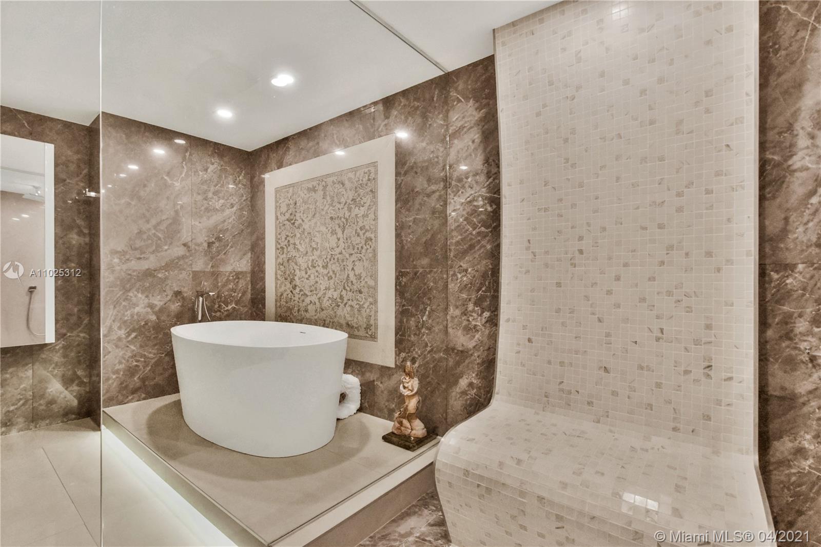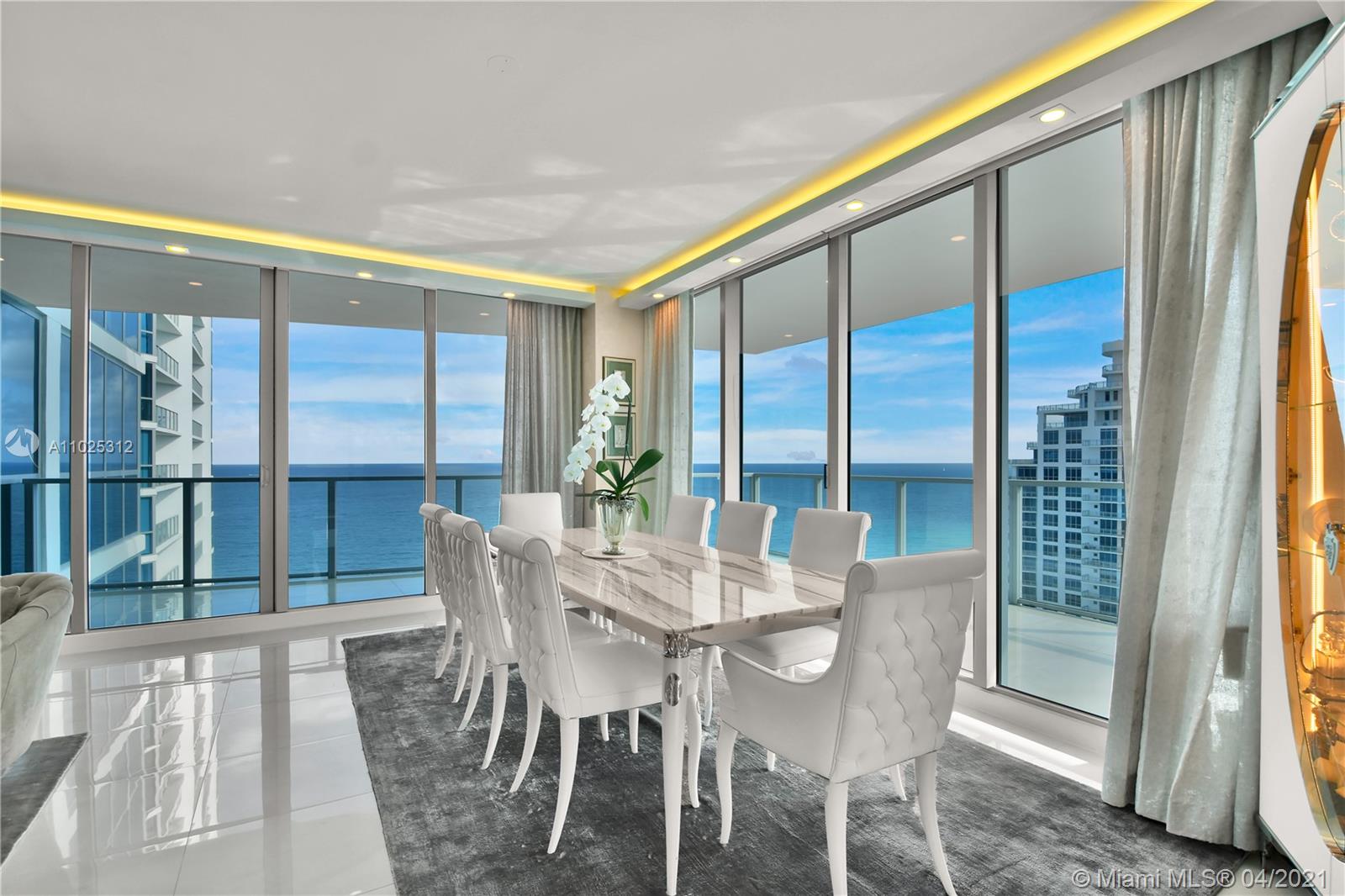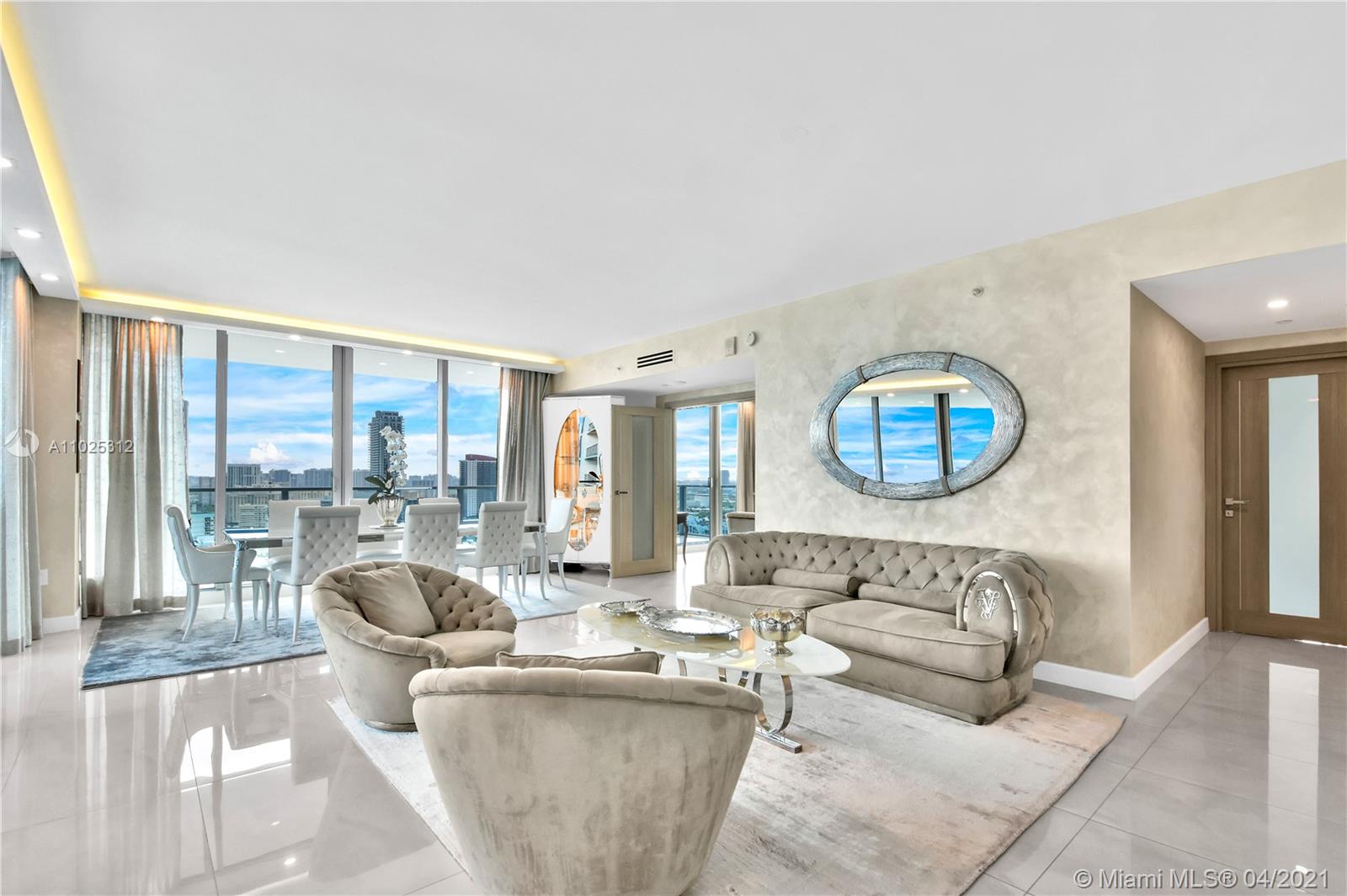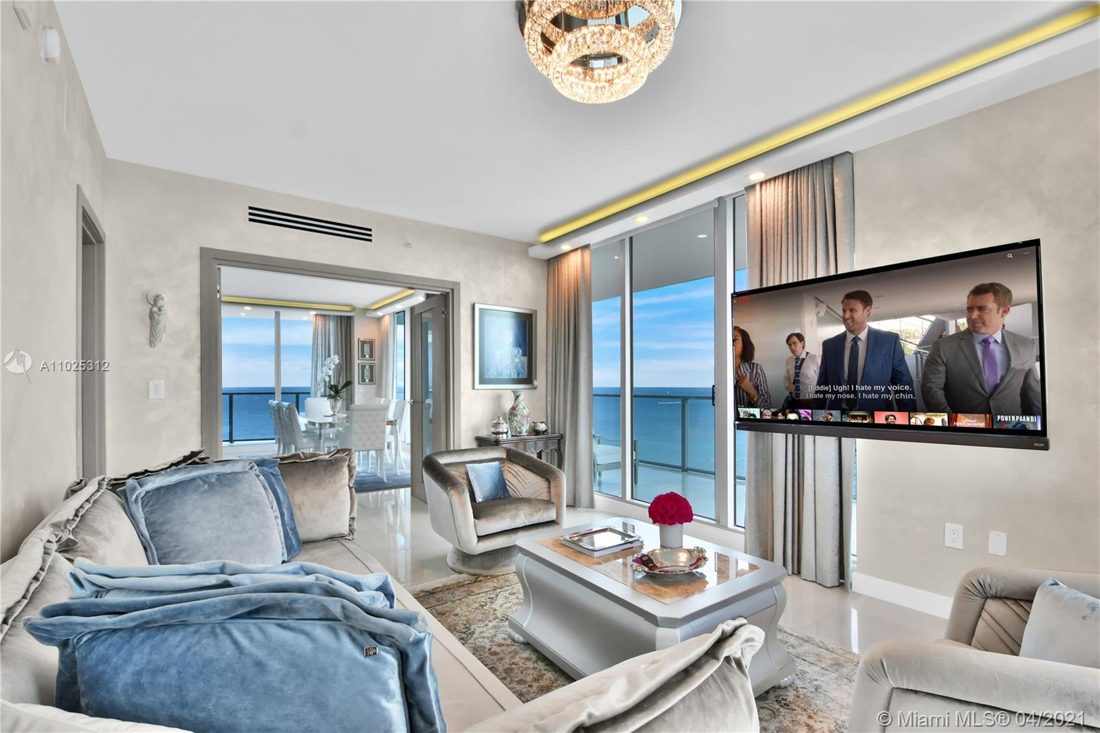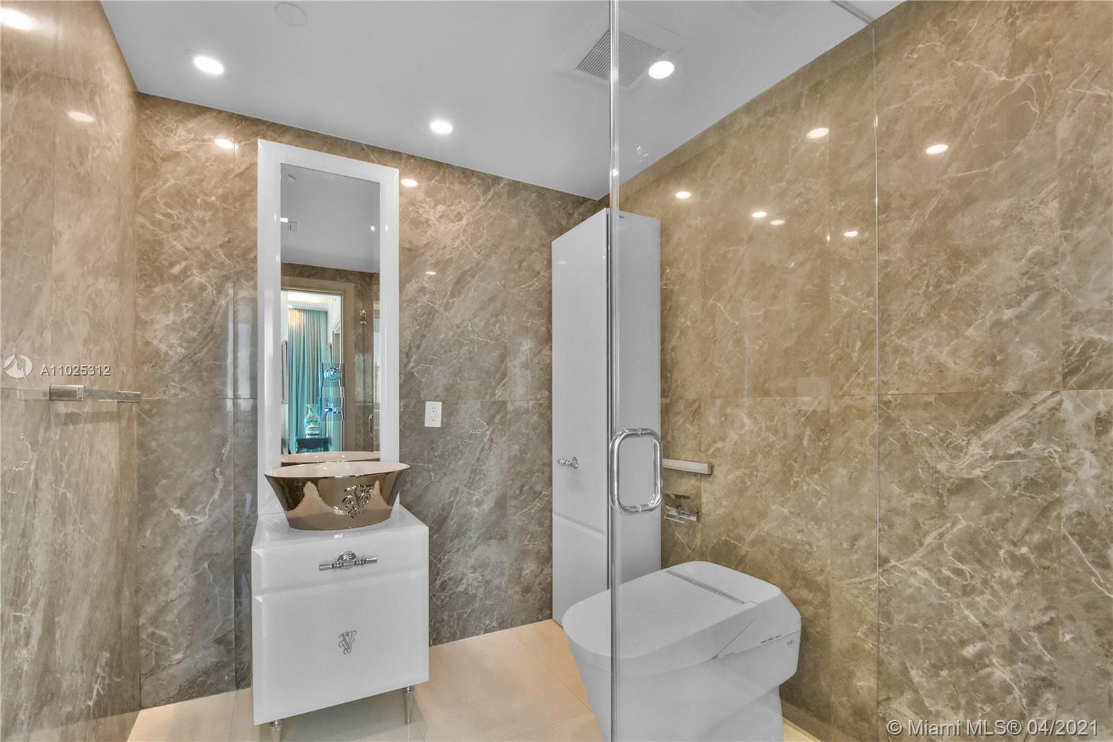 Luxuriously renovated apartment with no expense spared offering nearly 2,308 +-SF of interiors and +/-750-SF of wrap-around terraces. Wake up to panoramic views and sunrises and enjoy five-star amenities offered right here that will make every day feel like a vacation. This residence features a private foyer, floor-to-ceiling high impact windows, Italian “Versace” tiles on floors and walls, Versace wallpaper, new doors from Italdoors, Mirror TV in the master bedroom, LED/Lutron lighting, new A/C, Smart Home System, Soffits lighting, European style kitchen, upgraded European style luxurious baths with spa shower, and sumptuous master suite with hers/his Velart closets. Electric shades, Sound system, Italian Deco Painting on walls.Onyx Slab on the flooring at the foyer. New washer/dryer.