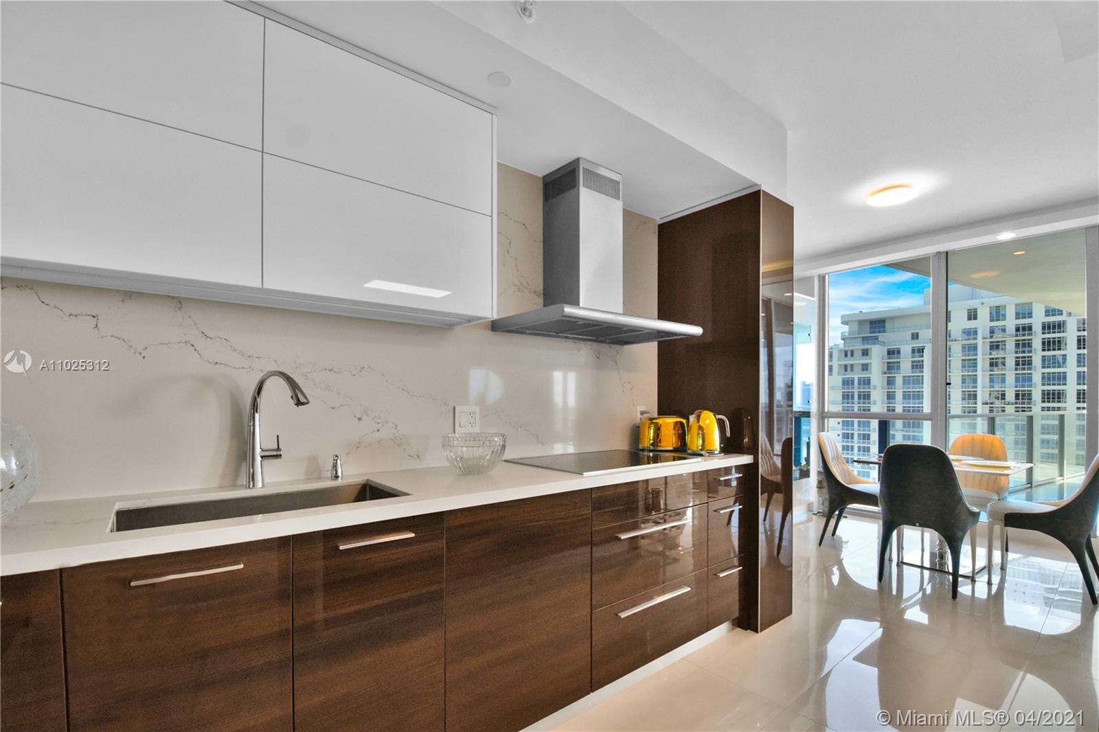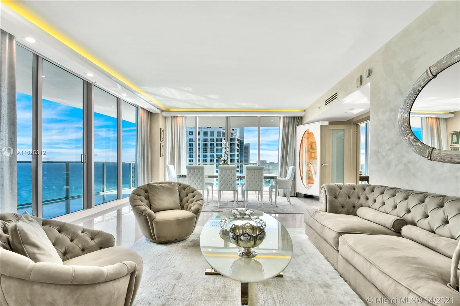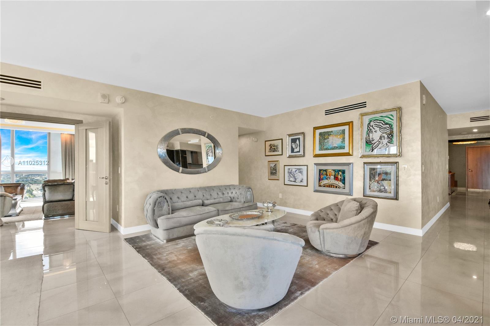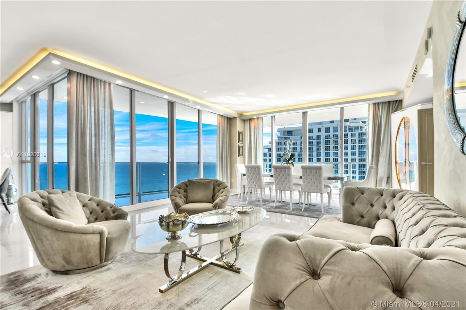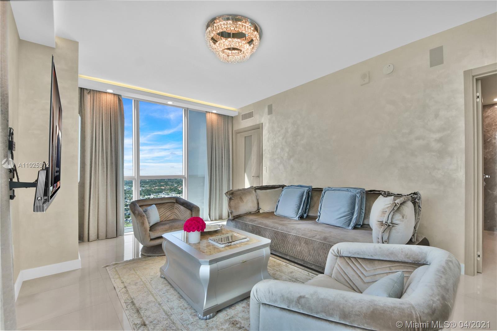 Luxuriously renovated apartment with no expense spared offering nearly 2,308 +-SF of interiors and +/-750-SF of wrap-around terraces. Wake up to panoramic views and sunrises and enjoy five-star amenities offered right here that will make every day feel like a vacation. This residence features a private foyer, floor-to-ceiling high impact windows, Italian “Versace” tiles on floors and walls, Versace wallpaper, new doors from Italdoors, Mirror TV in the master bedroom, LED/Lutron lighting, new A/C, Smart Home System, Soffits lighting, European style kitchen, upgraded European style luxurious baths with spa shower, and sumptuous master suite with hers/his Velart closets. Electric shades, Sound system, Italian Deco Painting on walls.Onyx Slab on the flooring at the foyer. New washer/dryer.