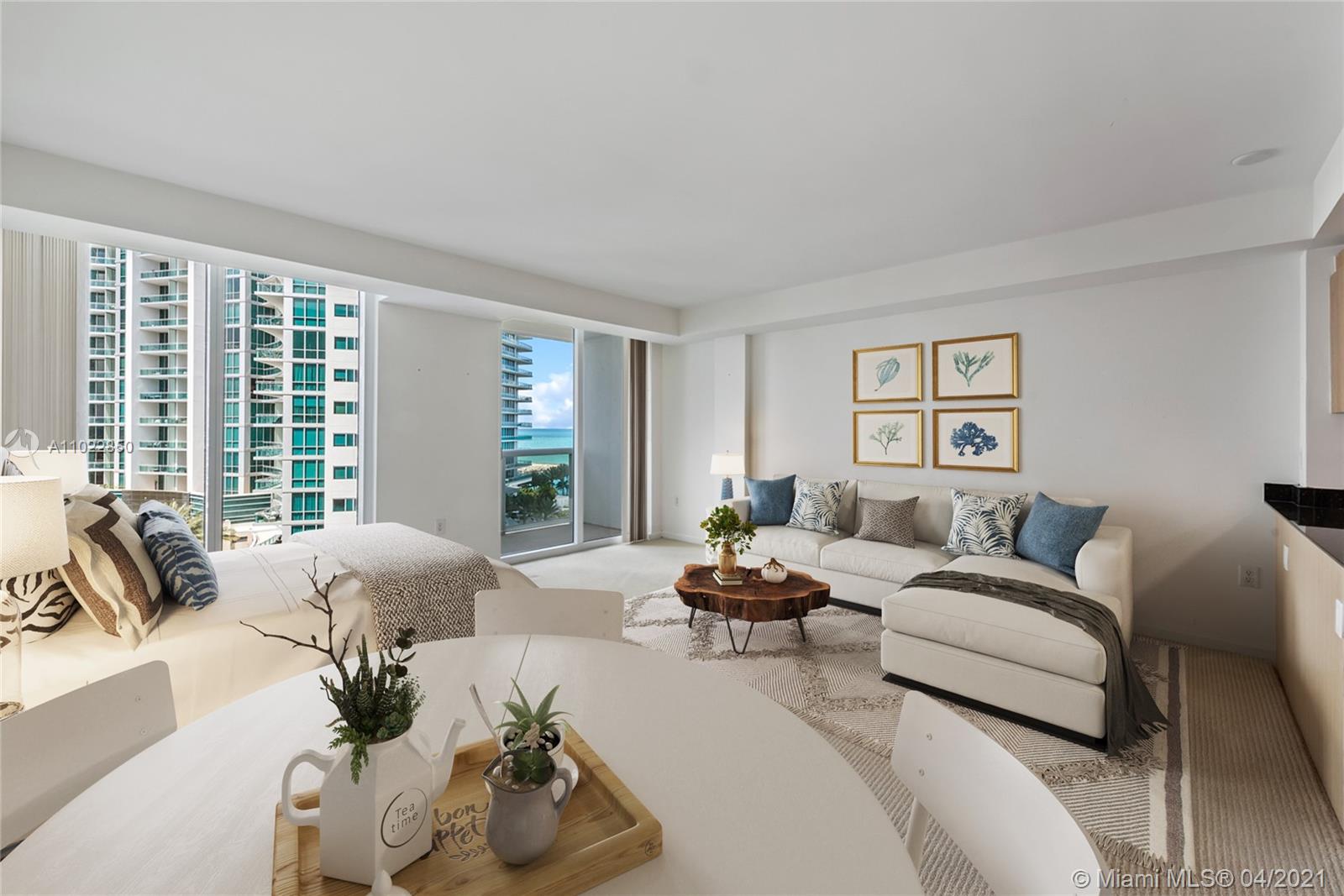 Beach lovers paradise escape. Tropical resort-style living at Harbor House studio residence 801 features a fully updated kitchen, walk-in closet, in-home washer and dryer, tile throughout the kitchen and bathroom and balcony facing the garden with ocean views of the Atlantic and Intracoastal Waterway. Residents can enjoy amenities such as landscaped pool deck with cabanas, poolside bar/grill, 24 hour valet, 24 hour concierge, full-service fitness center, spa and beach access. Located just steps away from Bal Harbor Shops, Surfside, Haulover Beach Park and a 15 minute drive to Aventura Mall.
