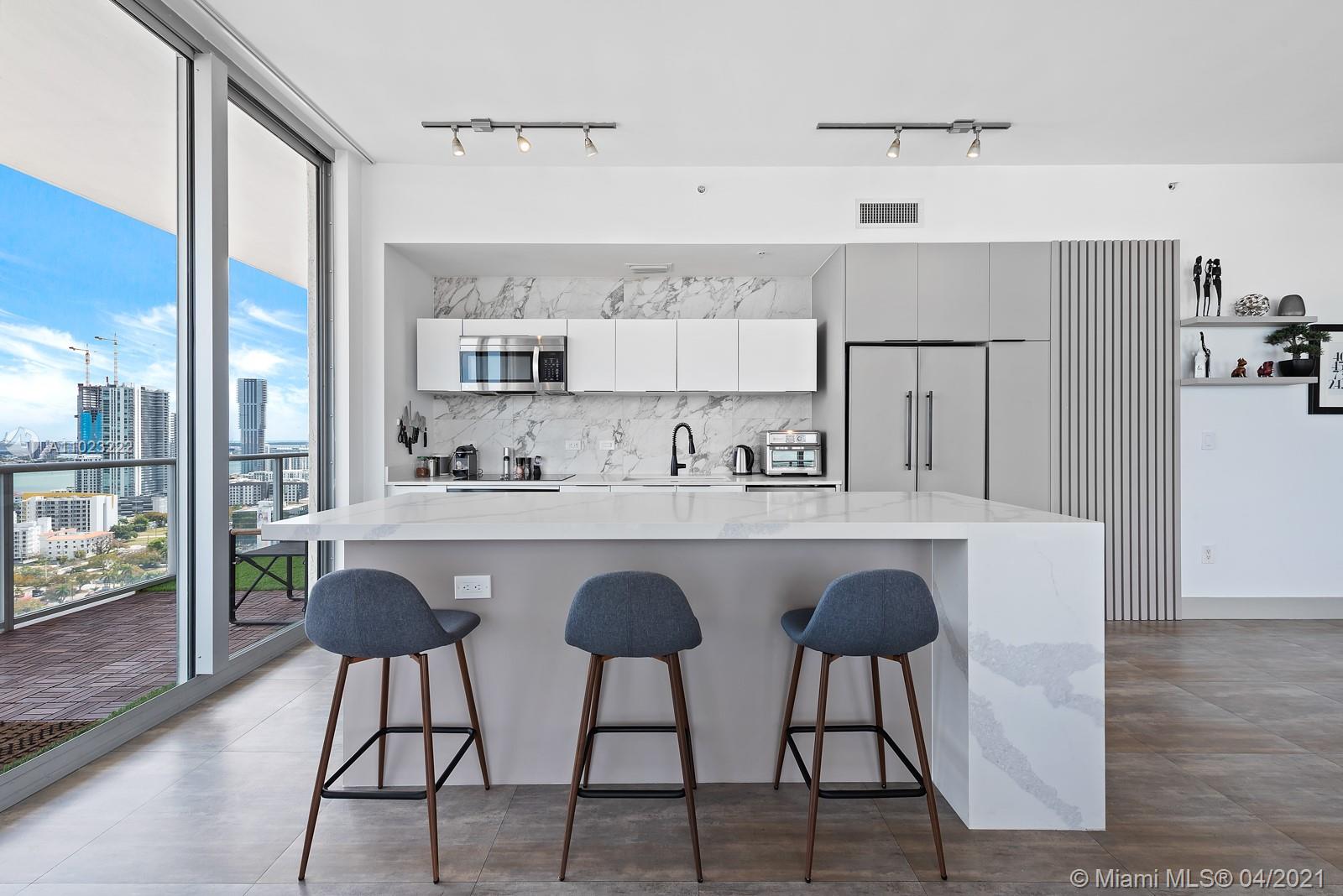 Perched on the 26th floor with wide open views of Biscayne Bay, live the Design District lifestyle in the best line at coveted 2Midtown! Renovated & reconfigured with style, this former three bedroom 01-line has been transformed into a spacious 2 bed + 2.5 bath residence with a massive living area built for entertaining wrapped around by a huge terrace with views from Downtown to Sunny Isles. Renovation included new designer kitchen w/ waterfall island, wine cooler + pantry, powder room, master bed and bath with fully updated double vanity and walk-through closet with built-in storage. The neighborhood is attracting Michelin rated restaurants including Pastis and Cote along with Tom Ford, Givenchy and everyday necessities like Barry's Bootcamp and Target. Welcome to the new Miami.