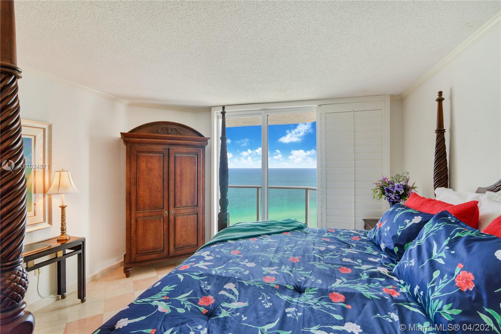 Spacious 1 bedroom with large master bathroom and powder room for guests. Clear blue ocean views from 23rd floor. Large open balcony with views to both the east and west. Floor to ceiling windows with complete hurricane shutter protection. This unit features an updated kitchen with plenty of storage.