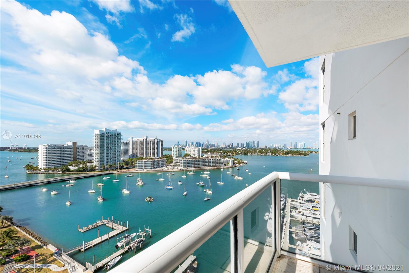 Great rare opportunity to own a southwest-facing corner residence with stunning unobstructed vistas of the bay and skyline. 1802/04 offers a spacious floor plan with 3 terraces and floor-to-ceiling glass windows throughout. Renovation opportunity to create your dream condo at Sunset Harbour, a full-service building with pool, gym, 24-hr security, valet, and marina in an ideal bayfront location brimming with dining and entertaining experiences. Includes 2 deeded parking spaces.