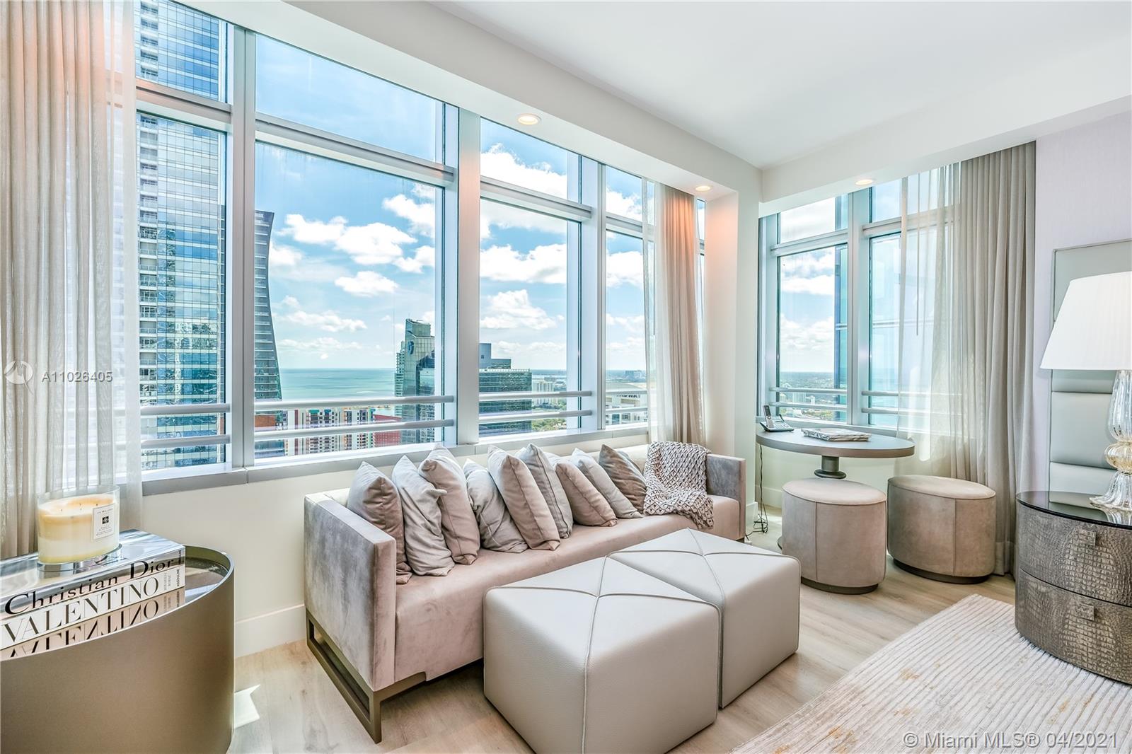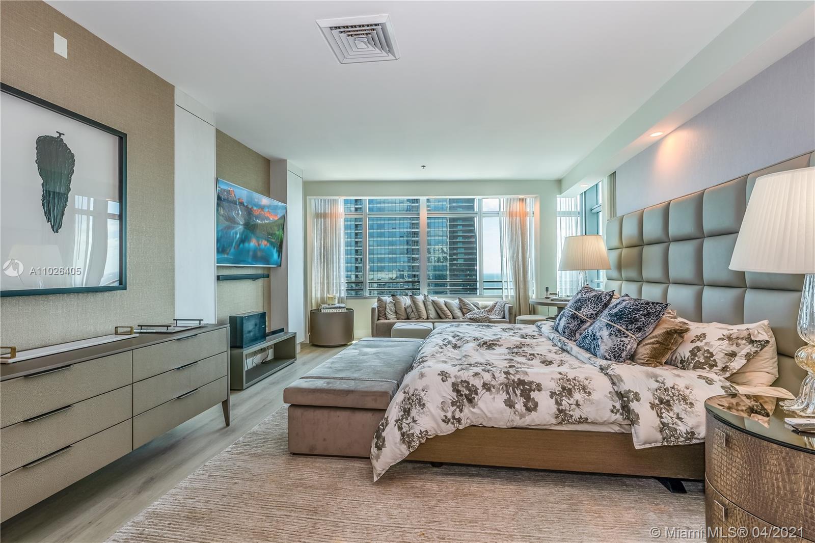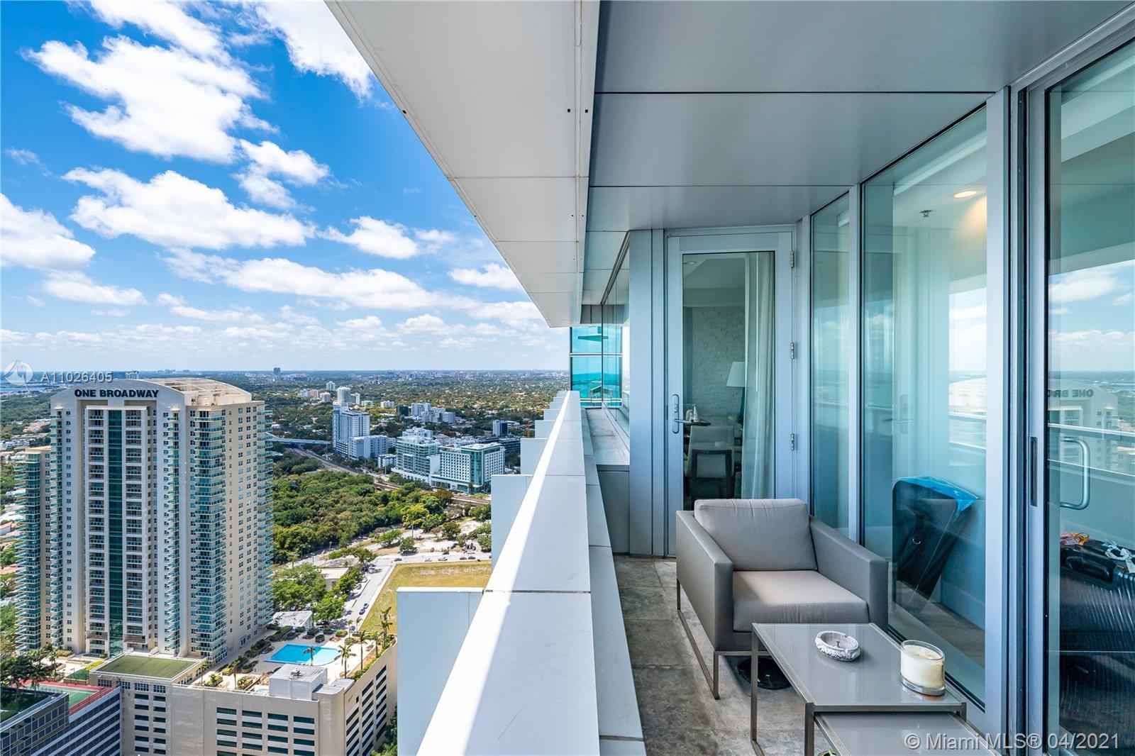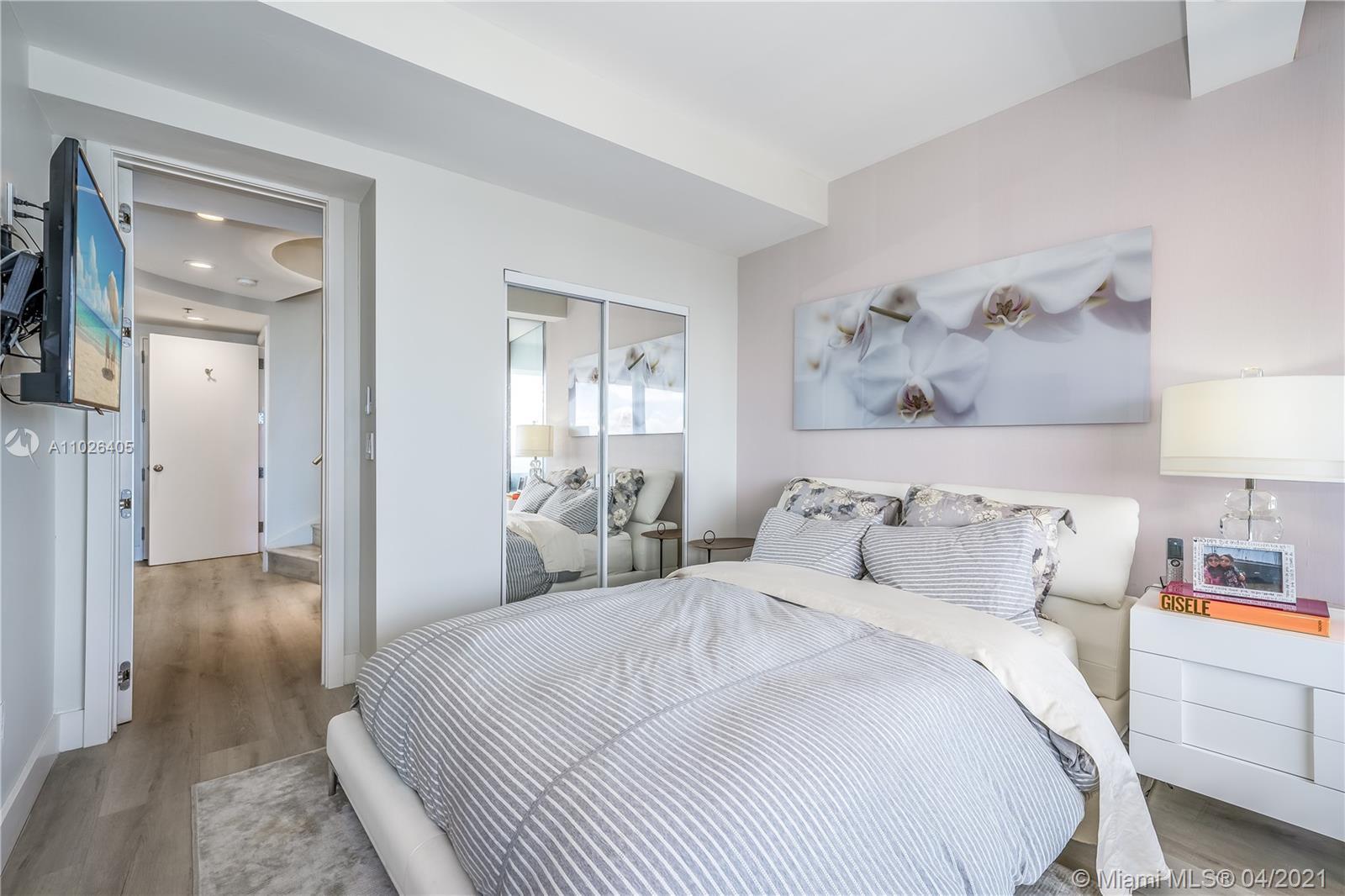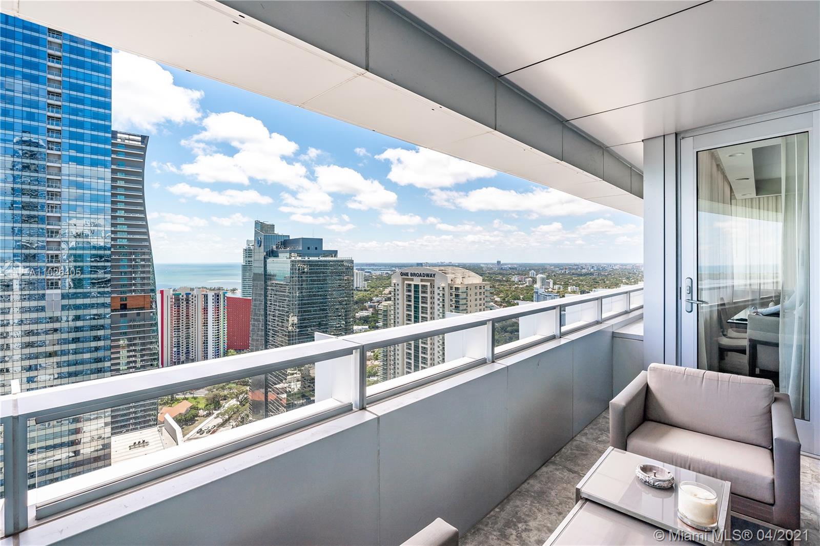 Rare two-story Penthouse in the Sky approved for Airbnb. Interior by Artefacto. First floor main living area features one bedroom and bath, kitchen, living-dining area and balcony. Spiral staircase leads to level landing "Zoom" room, and laundry room. Expansive Principal bedroom with breathtaking views of the Bay and spectacular city views. Unique 3 bedroom 3 bathroom residence one of the few penthouses in Brickell that is legally approved for short-term rentals.