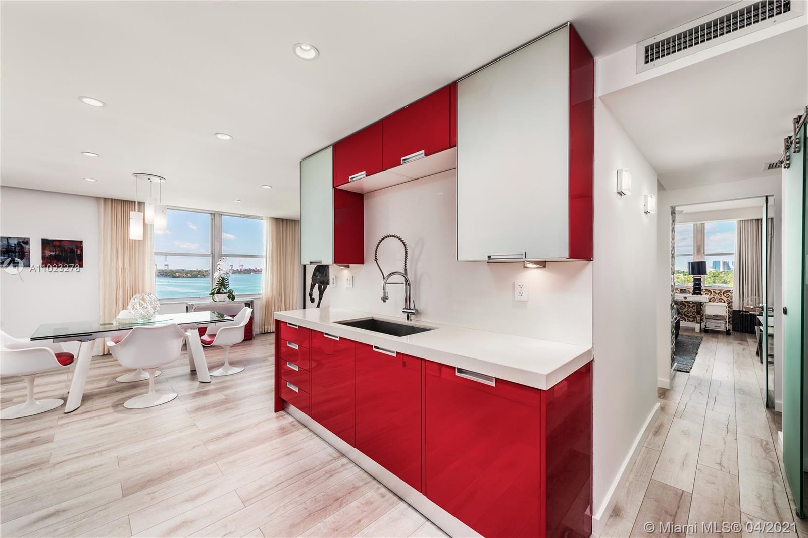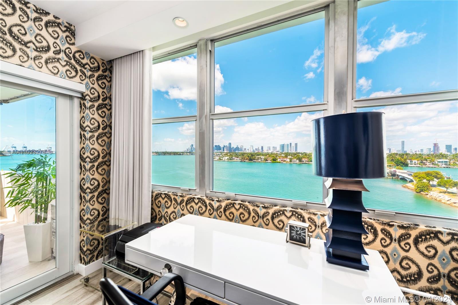 Spectacular waterfront corner unit -rarely available line- w/breathtaking views of Biscayne Bay & Downtown Miami. Stunning 2 bed/2 bath, contemporary renovated & designer appointed w/finest finishes. Located in the Venetian Islands Causeway across from the Standard Hotel. Extremely luminous w/water views from every window. Perfect balcony/terrace to enjoy sunsets year long. New impact windows, State-of-the-art main bedroom and bathroom, large walk-in closets, wallpaper, glass doors through out. It's contemporary luxury Scavolini kitchen features top of the line appliances and opens to dining & living areas. Classic Morris Lapidus building w/ spectacular pool & deck right on the bay to enjoy the sunsets. Superb location, walking distance to Lincoln Road & Sunset Harbor.