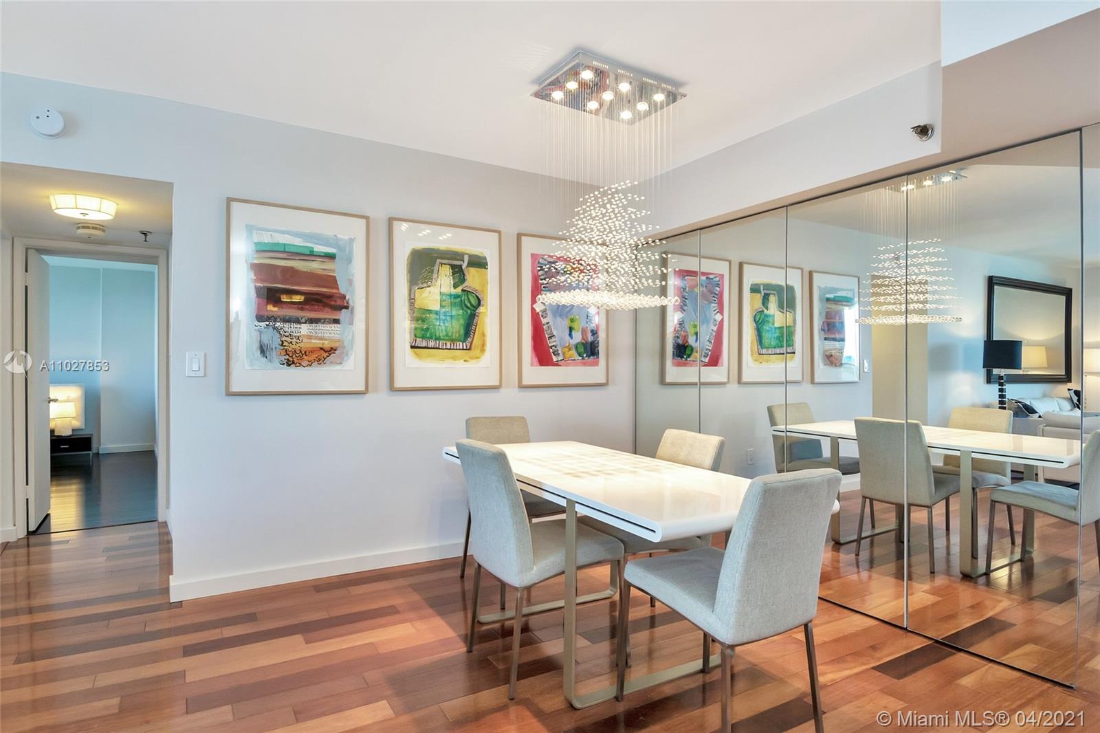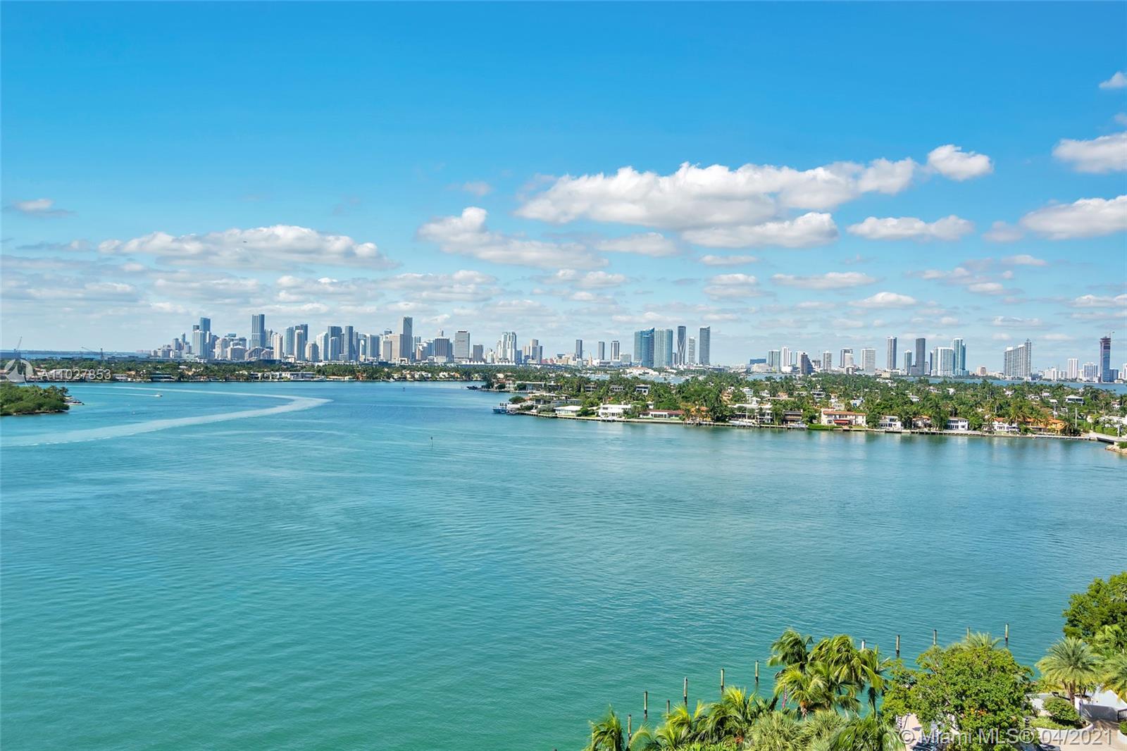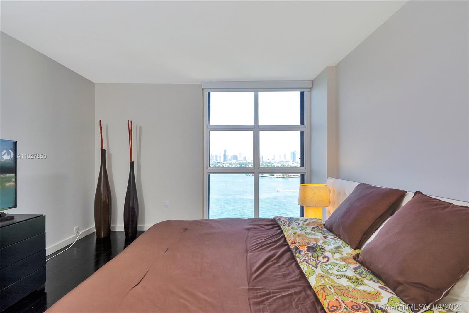 This view is absolute perfection! Finally, a fully furnished, move-in ready 2 bedroom at 9 Island, available immediately with stunning direct bay views from every window! This 2 bed / 2 bath 1,440 SF split bedroom unit has many upgrades including updated kitchen with stainless appliances, full size washer/dryer, wood floors and hurricane shutters. Master bath has dual sinks, glass shower and gorgeous marble floors. Access the oversized balcony from the living room, kitchen and guest bedroom. Unit comes with one garage space and extra storage unit. All artwork excluded except bicycle photographs and Andy Warhol print of Jackie Kennedy.