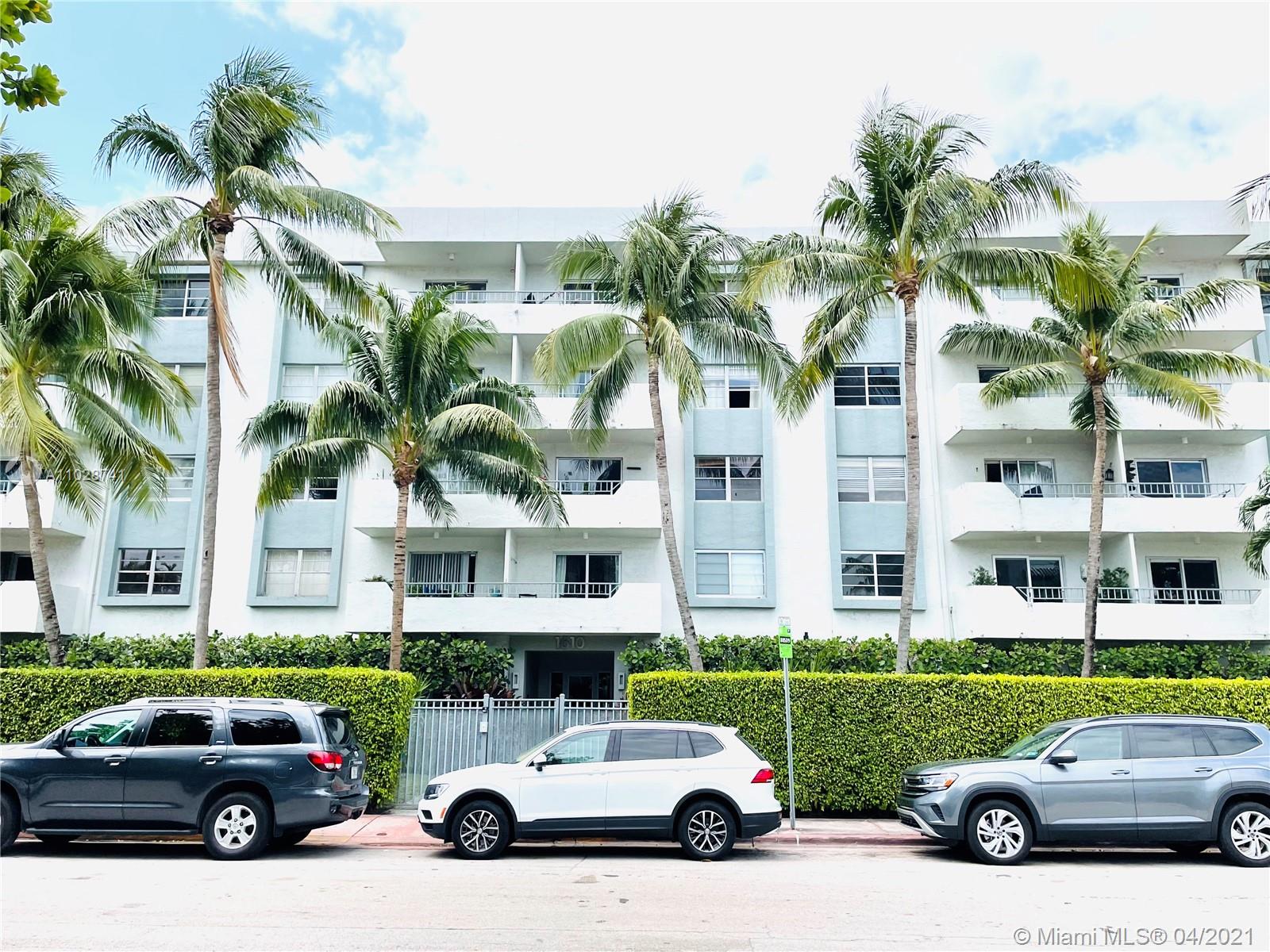 Attention Investors! Don't miss this spacious 1 bedroom, 1.5 bathroom east facing unit, overlooking the garden on the south side of Lincoln Road. Features stainless steel appliances, tile floors, washer/dryer in unit, lots of closets, central a/c, a large balcony, garage parking, pool on same level as unit, steps from Lincoln Road. Well managed and beautifully maintained building. Fabulous location!