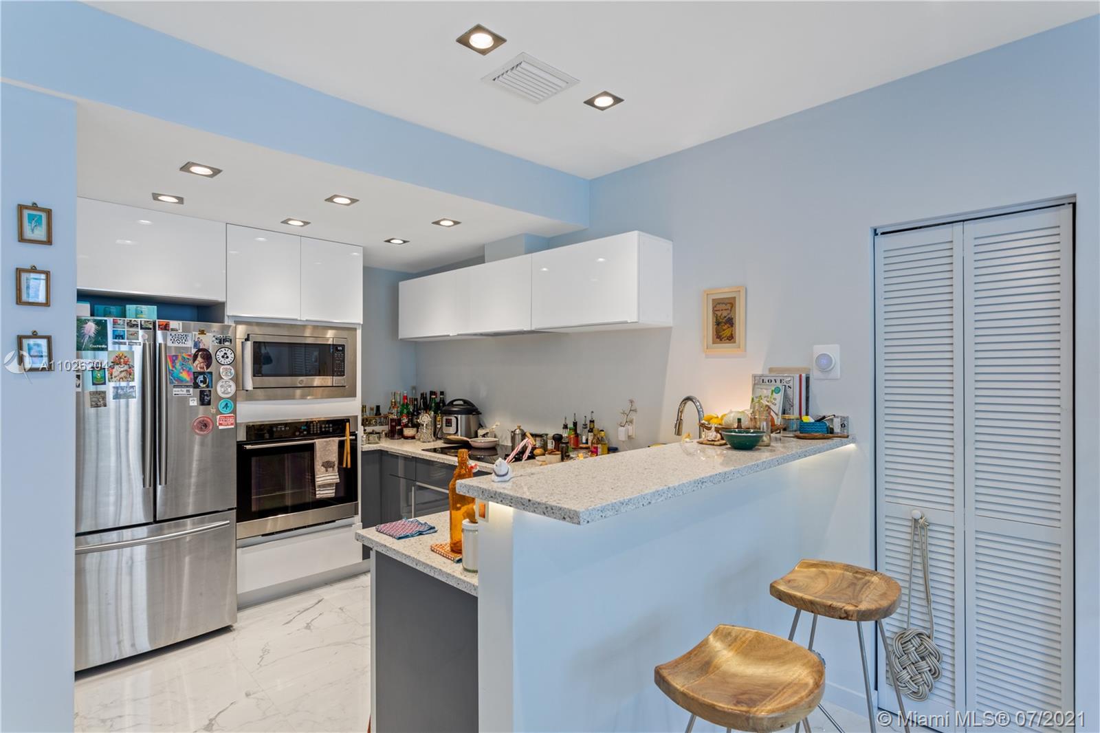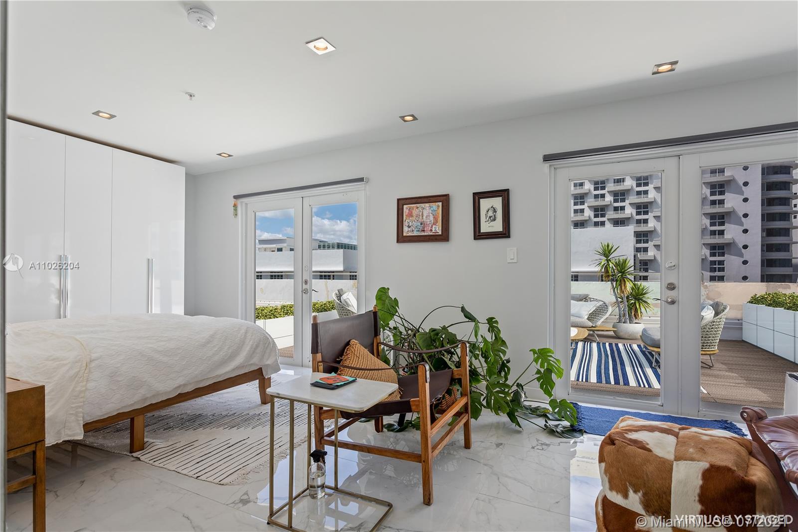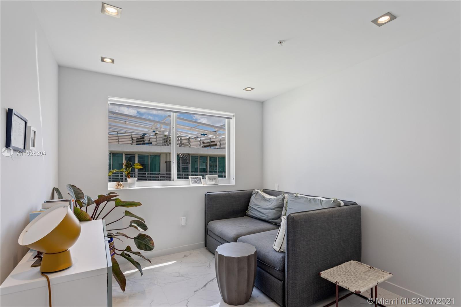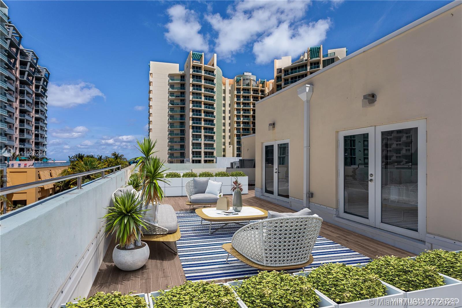 Top floor, corner duplex. This ultra-modern 1220 SF home features impeccable construction. Watch the sunset from your unique 1000SF private outdoor terrace. Apartment 506 has three bedrooms and 2.5 bathrooms. Great layout with open kitchen with eat-in counter and new stainless appliances. Recessed lighting and custom marble floors throughout. Two full designer bathrooms and one-half bath for total comfort and convenience. Washer/ Dryer installed. New AC system. Very low monthlies. The association will be installing wood decking and divider walls to the outdoor space.