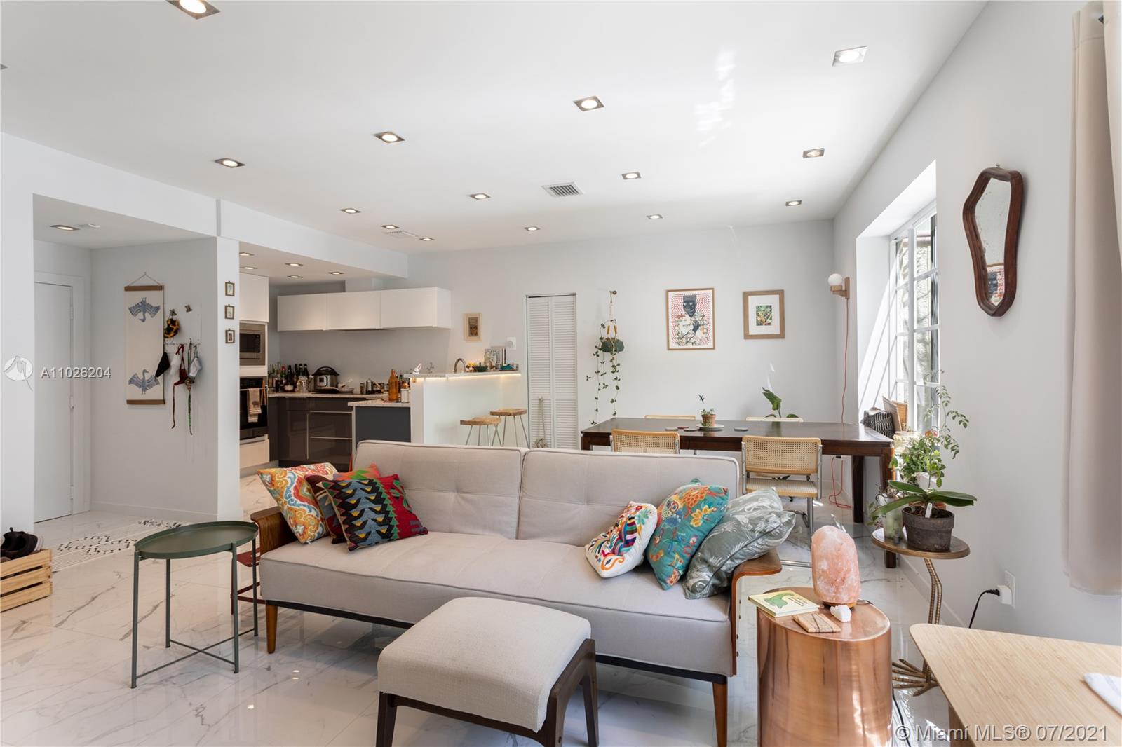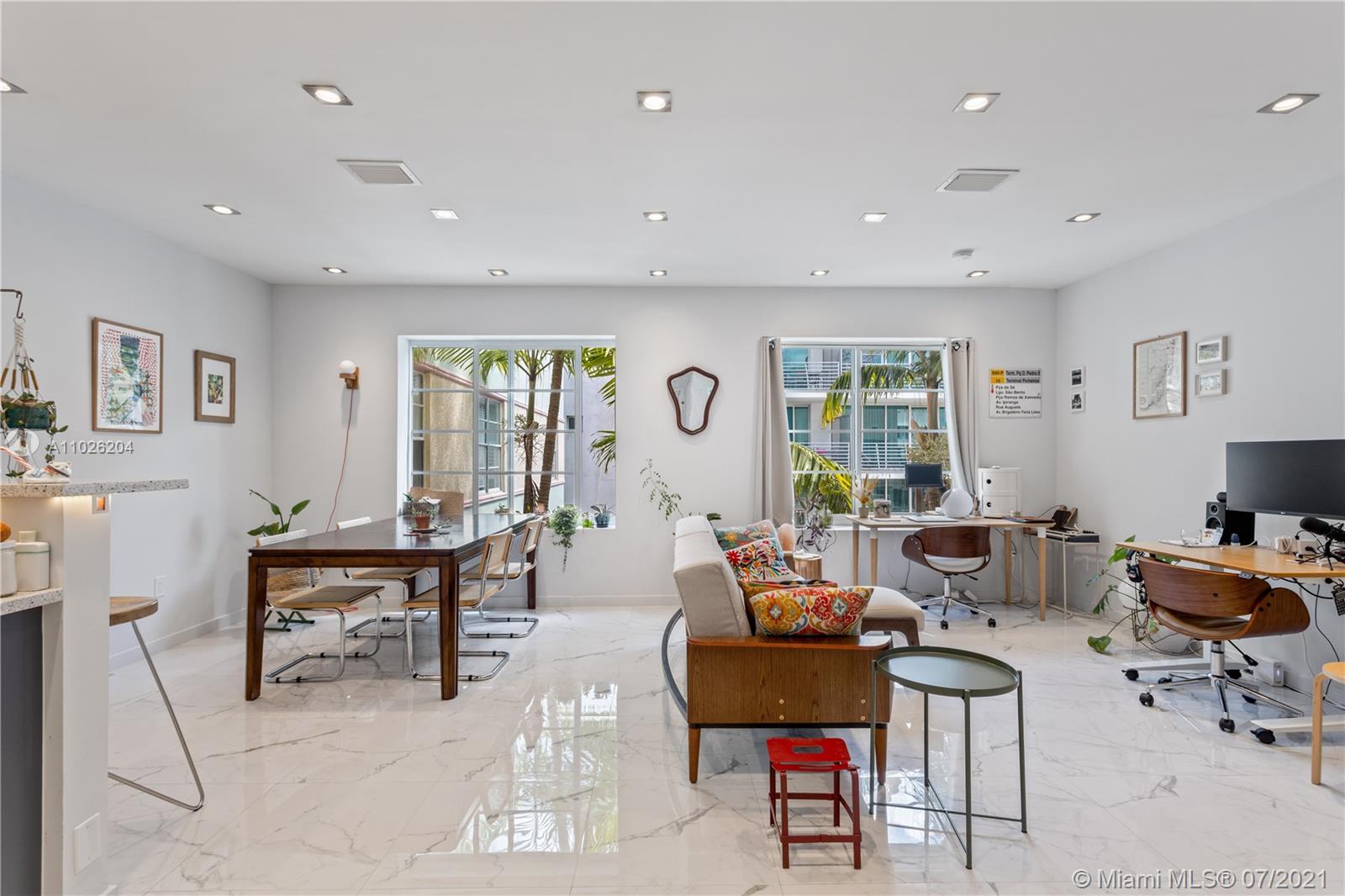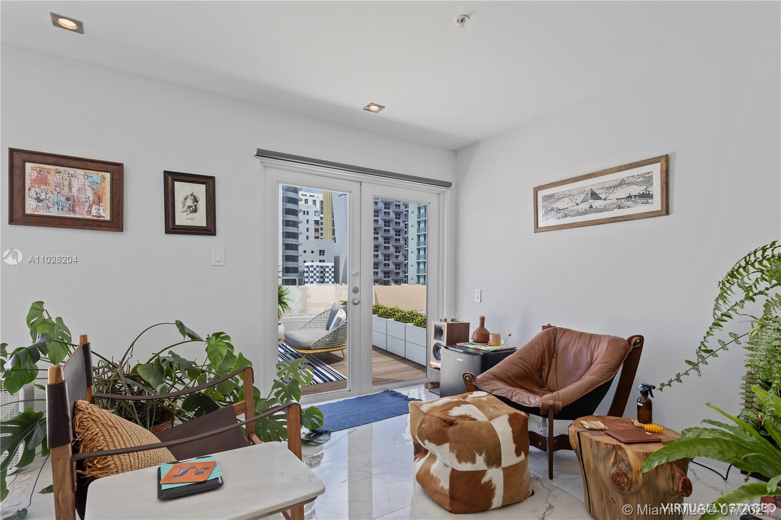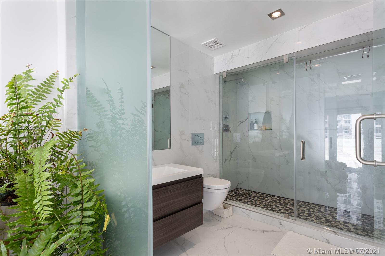 Top floor, corner duplex. This ultra-modern 1220 SF home features impeccable construction. Watch the sunset from your unique 1000SF private outdoor terrace. Apartment 506 has three bedrooms and 2.5 bathrooms. Great layout with open kitchen with eat-in counter and new stainless appliances. Recessed lighting and custom marble floors throughout. Two full designer bathrooms and one-half bath for total comfort and convenience. Washer/ Dryer installed. New AC system. Very low monthlies. The association will be installing wood decking and divider walls to the outdoor space.