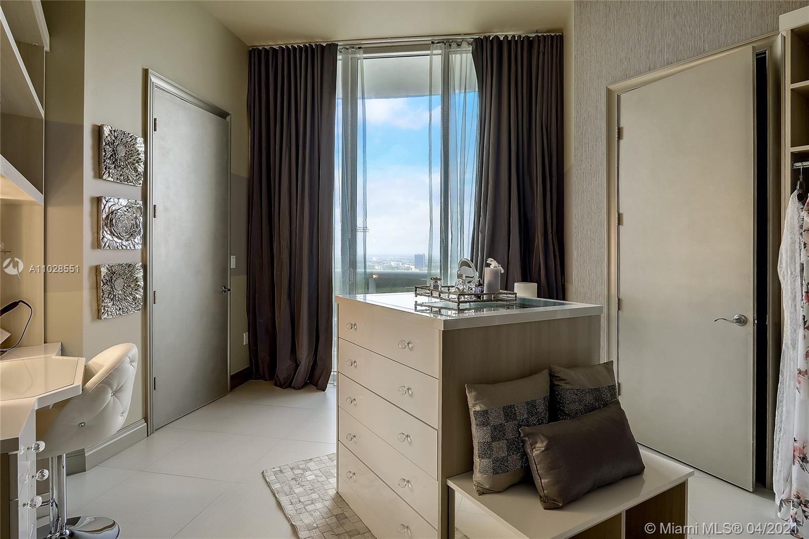 Welcome to Trump Tower I Sunny Isles #3404 – a stunning home in the sky with 11 ft. ceilings and direct ocean and intracoastal views. Beautifully designed and finished, with floor to ceiling windows, this flow through residence gets warm natural sunlight from sunrise to sunset. Marble floors throughout. Private foyer entry. Original floor plan has been modified, with the Seller converting the 2nd bedroom into a spectacular dream walk-in closet, and the den/bedroom converted into an office. Trump Tower I is a full service luxury ocean front building with state of the art two level fitness center, steam & sauna, concierge services with a beach club and restaurant services.