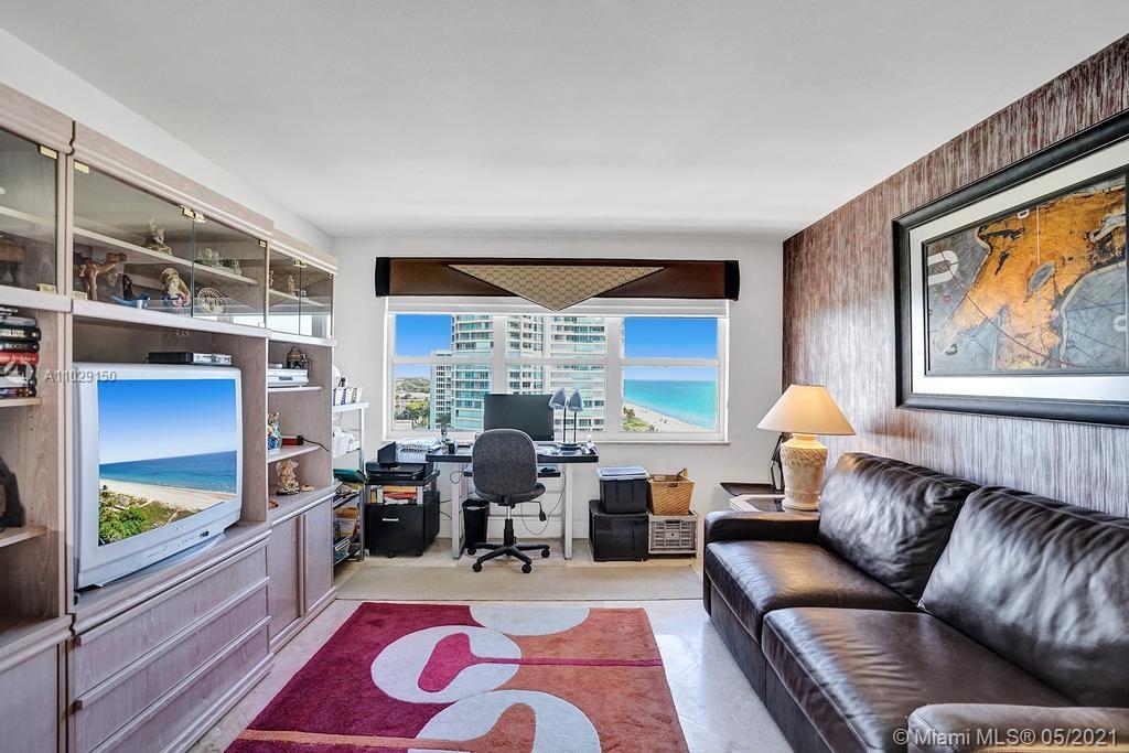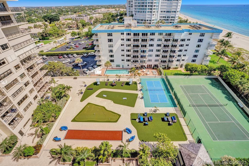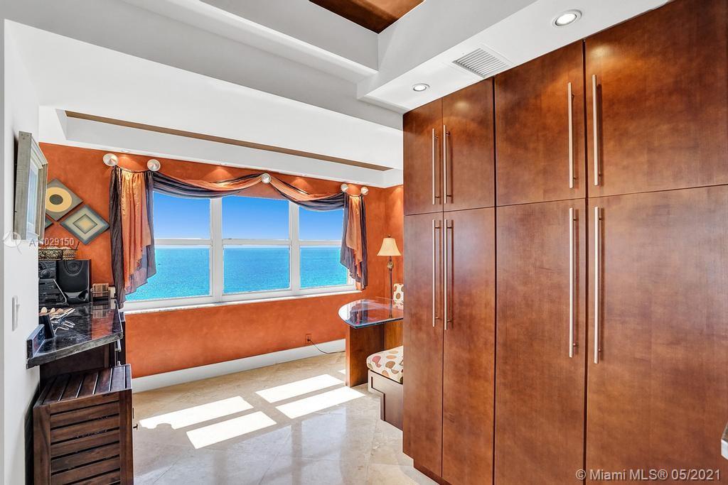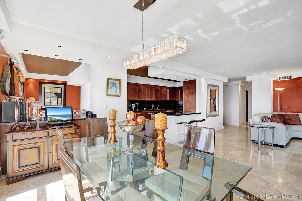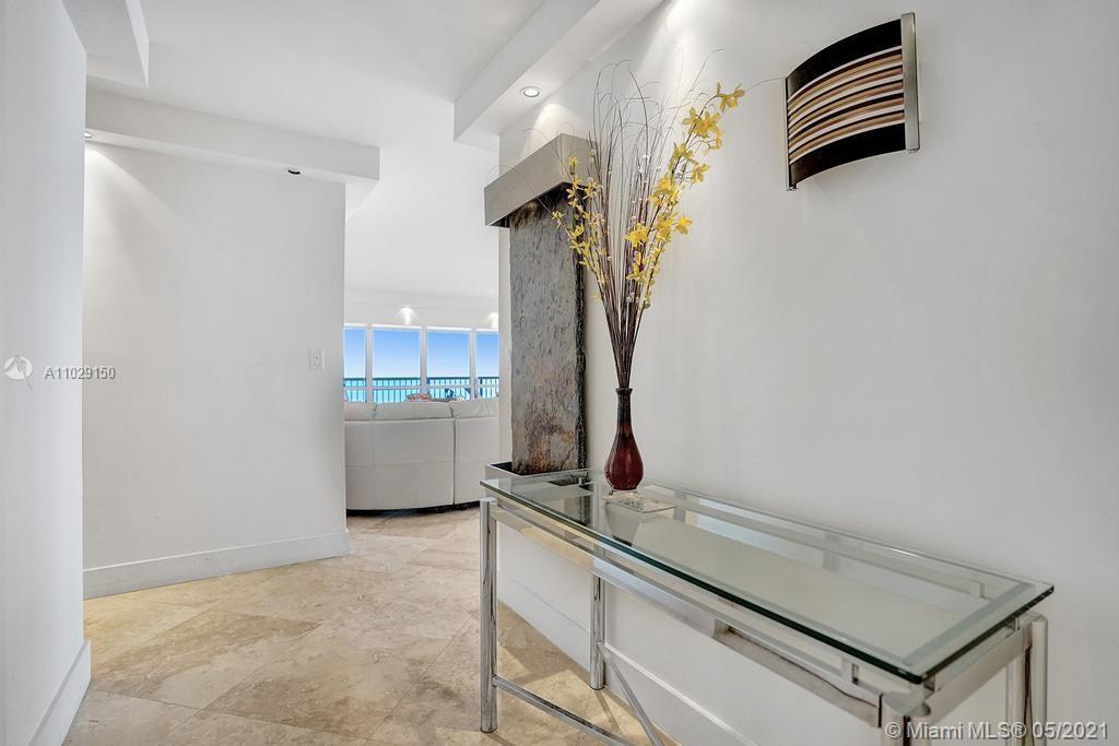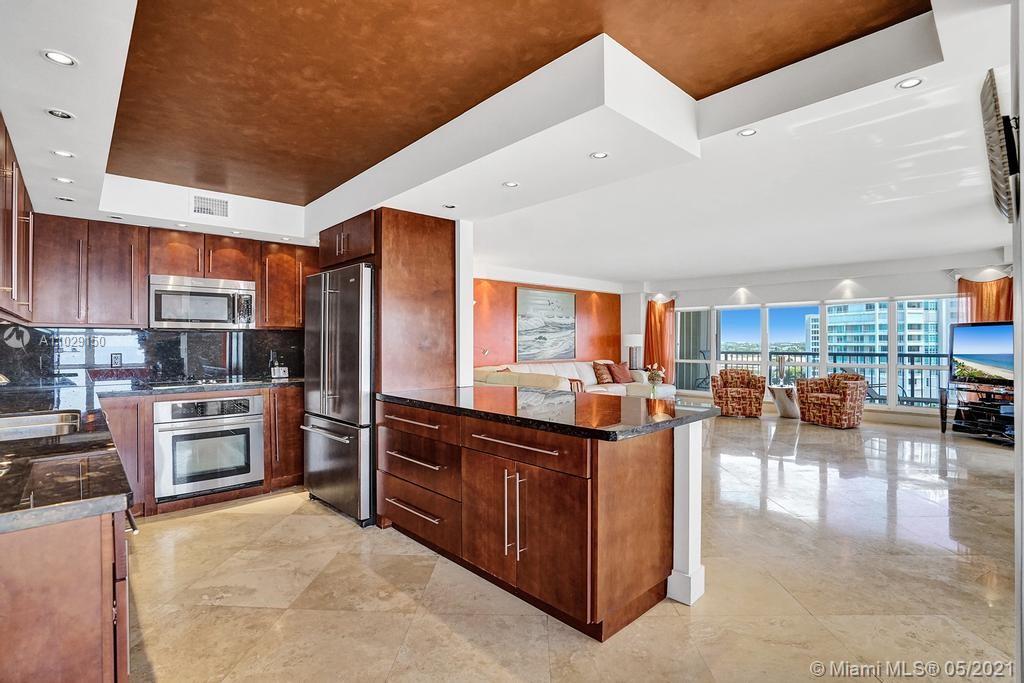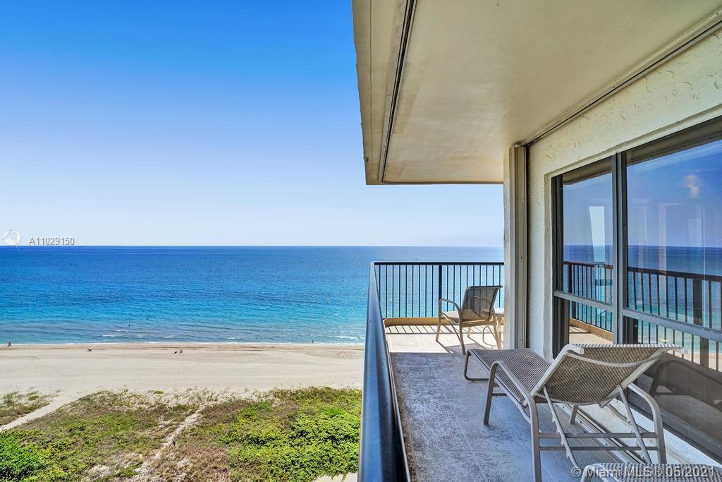 Beautiful NE corner with amazing Direct Oceanfront view.... including the Intracoastal, Skyline and stunning Sunsets. Every room has a view of the ocean! Large wrap balcony from living room. Marble floors throughout, open kitchen offering wood cabinetry, granite countertops, Jenn Aire appliances, wine cooler and breakfast nook. Foyer entry and separate laundry room. Spacious master bedroom with private balcony. Large master bath offering shower, jacuzzi tub, double sinks with onyx countertop. Second and third bedrooms are spacious. Second bath offers shower and additional cabinets for storage. Half bath with onyx countertop. Amenities include oceanfront heated pool, grill area, gym, saunas, pickle ball & bocce courts, tennis, billiards room, vehicle car wash. 24/7 security. Small pet okay.