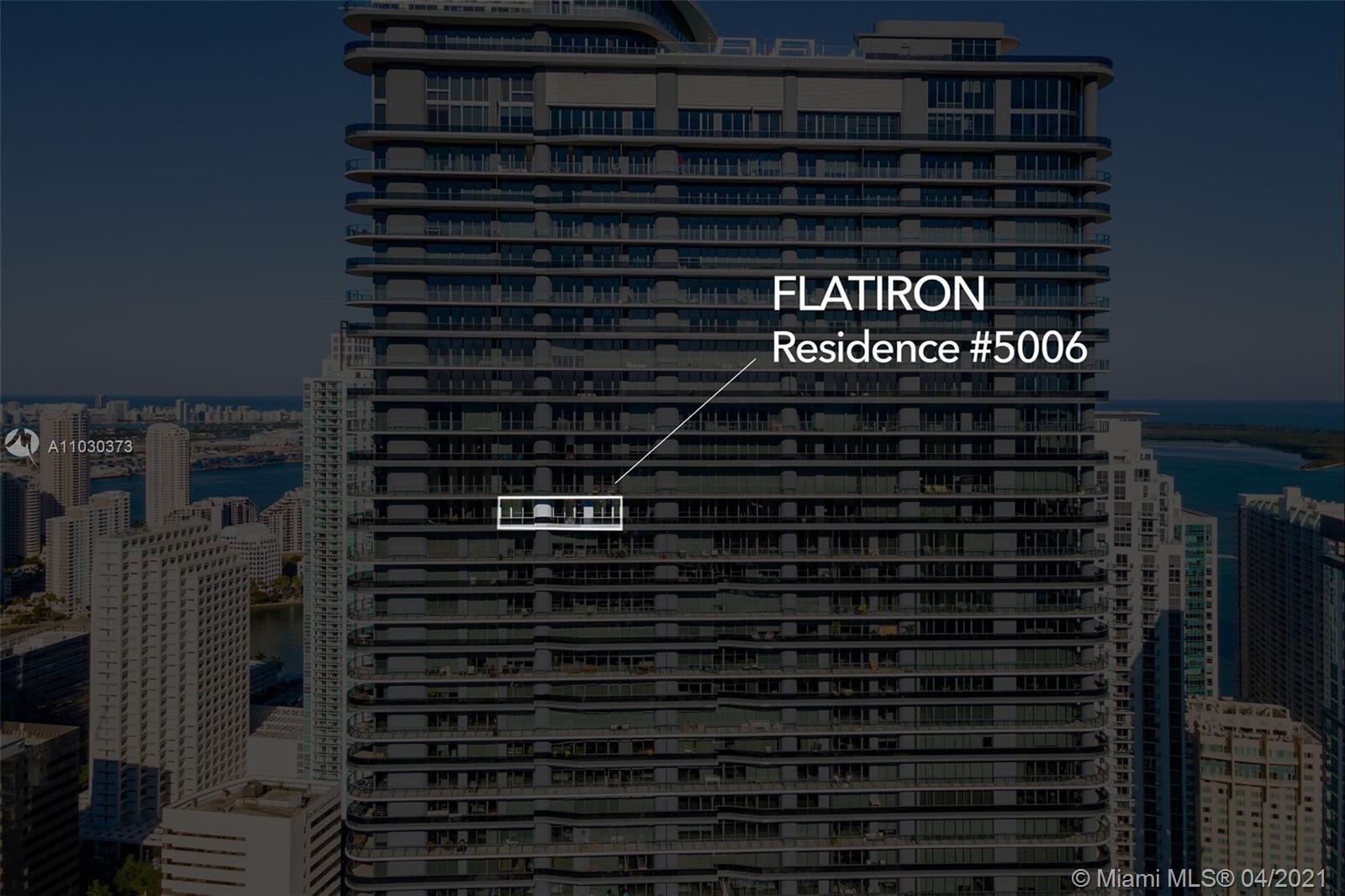 Penthouse on the top of the 50th floor Ugo Colombo's latest gem Brickell Flatiron . The views from this Penthouse includes amazing sunset and open water views of the bay of Coconut Grove. Split floorplan two bedroom design with two bathrooms, guest bath and DEN to be used as office or TV room. With custom closets, MIELE appliances, ceramic floors and spacious balcony overlooking the Skyline The unit comes with one assigned parking plus one complementary valet. Flatiron is located in the heart of Brickell with full security a five star amenities including movie theater, wine room, multiple social rooms, penthouse gym, rooftop pool, spa facilities Flatiron is walking distance to shops and restaurants, offices and two blocks from Brickell City Center