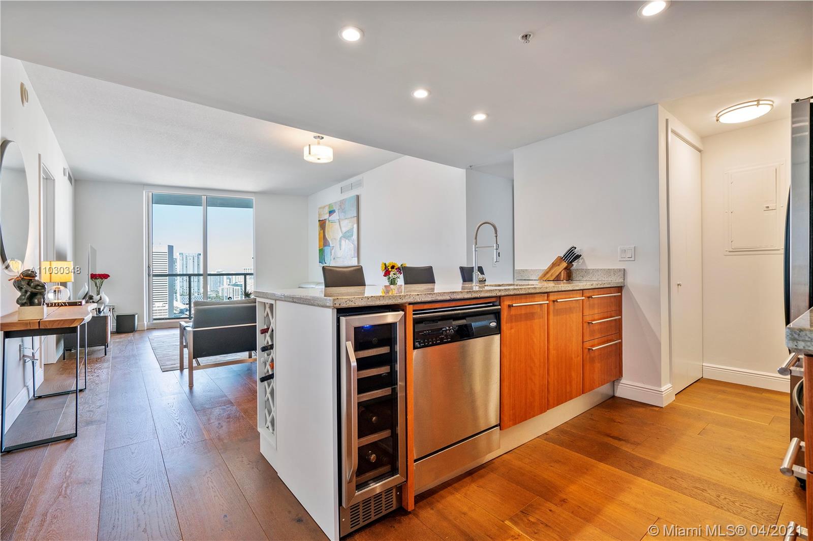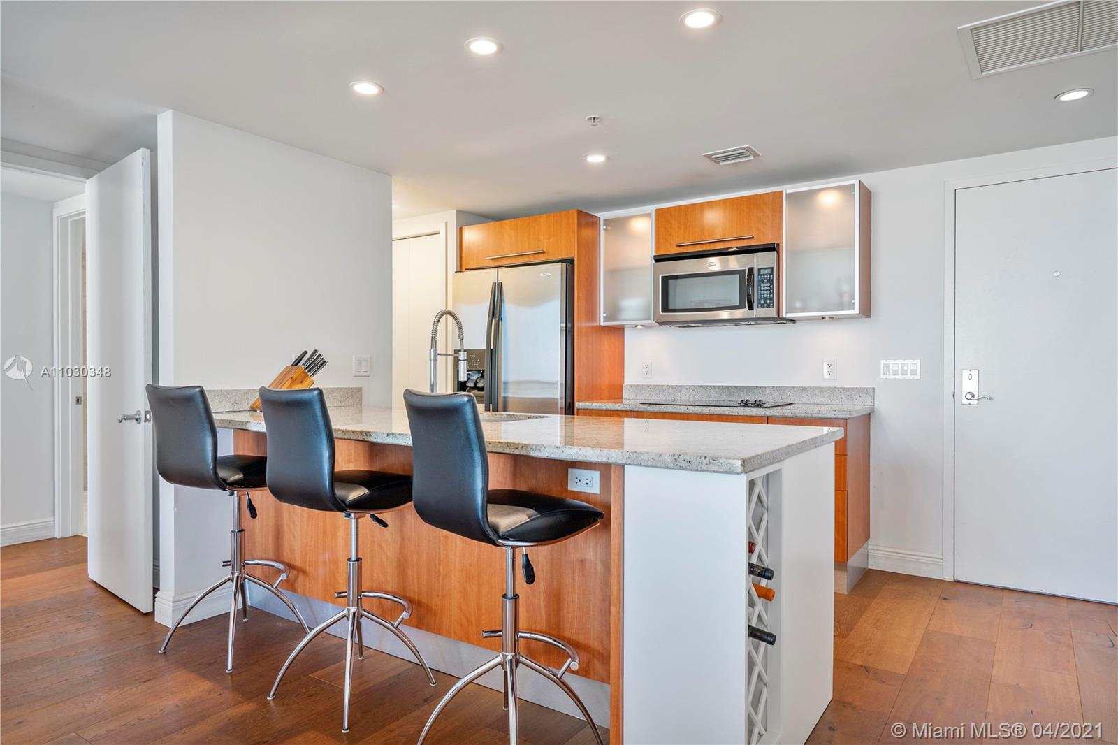 Come live in this beautifully updated and turnkey unit in the heart of Brickell, which offers breathtaking panoramic views of the Biscayne bay and the Brickell skyline from the 32nd floor. This two bedroom and two and a half bathroom split unit has been substantially upgraded with; wide plank cherry hardwood floors throughout, marble floors in all bathrooms and showers, high end vanities in bathrooms, American standard one piece European style toilets, remote controlled blinds in living room and black outs in both bedrooms, customs California closets, Stainless steel appliances, granite kitchen counters, wine rack and temperature controlled wine cooler, LG high end W &D. Latitude on the river offers many amenities and it is only steps away from Brickell city center and other attractions.