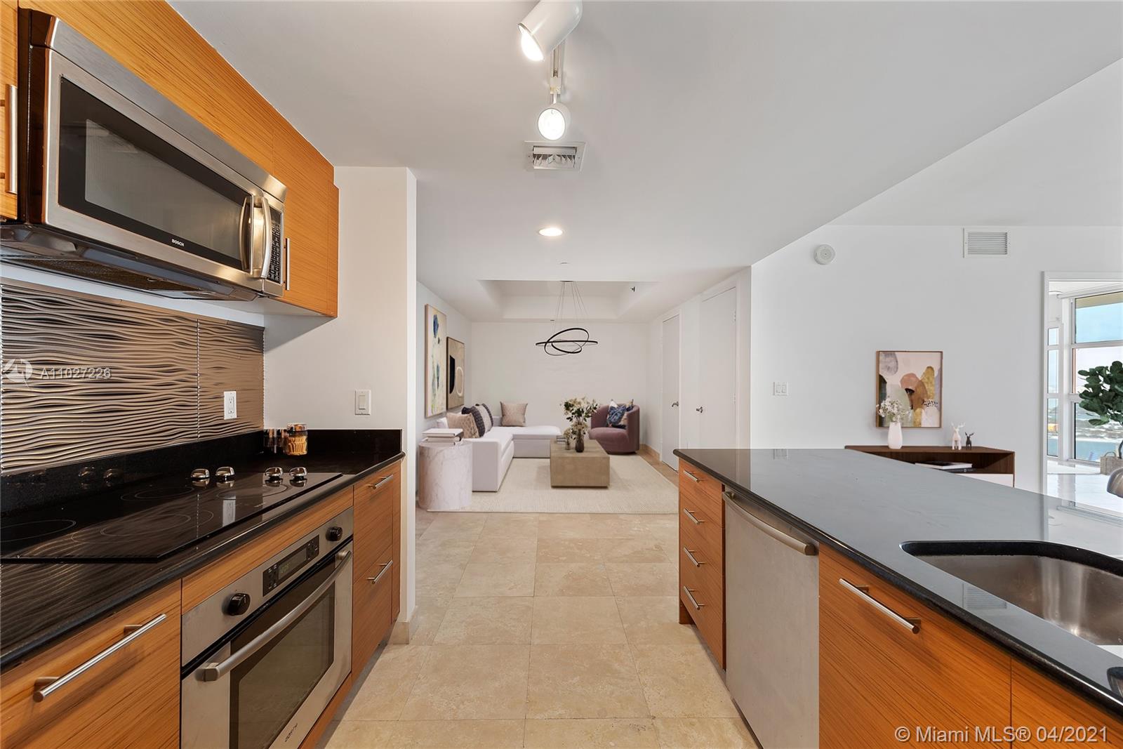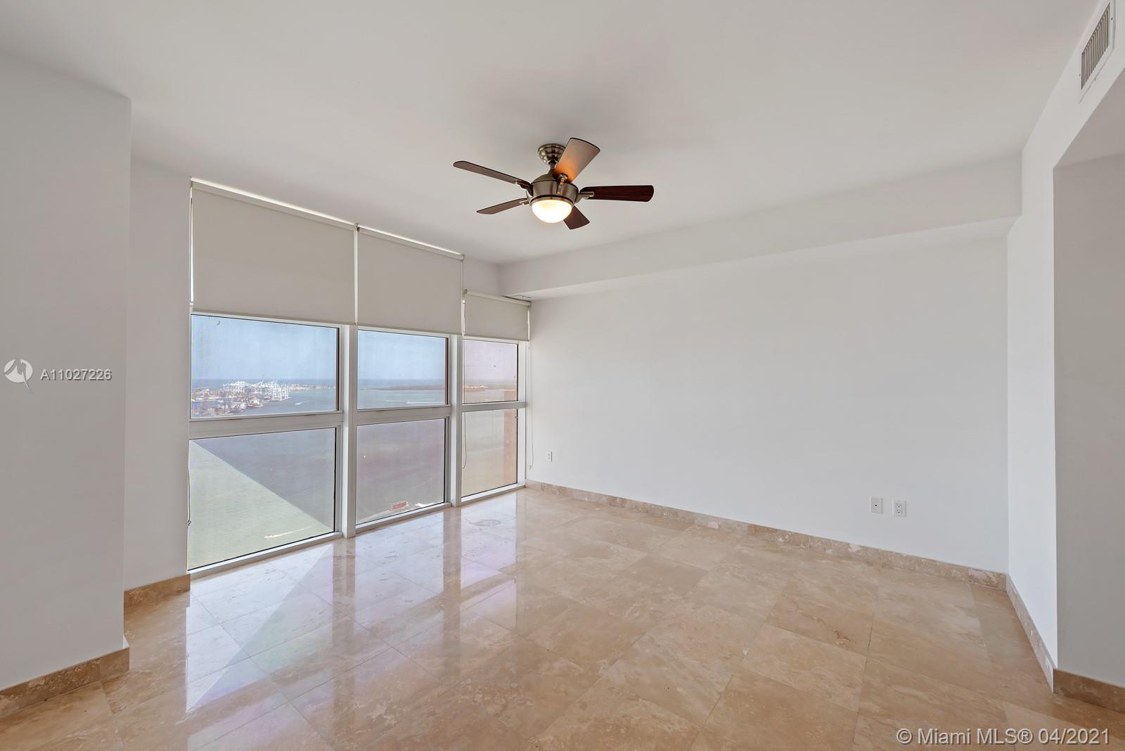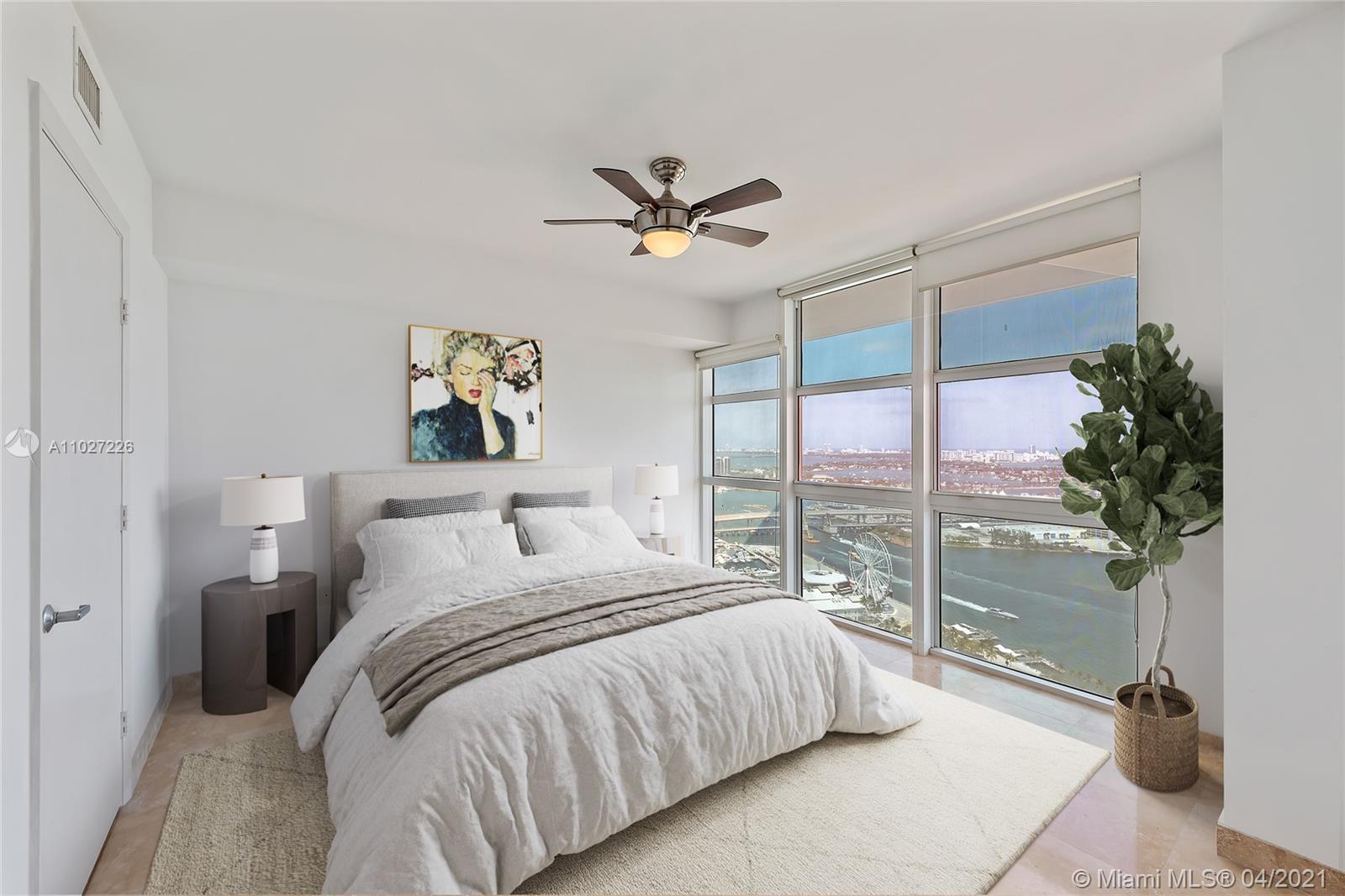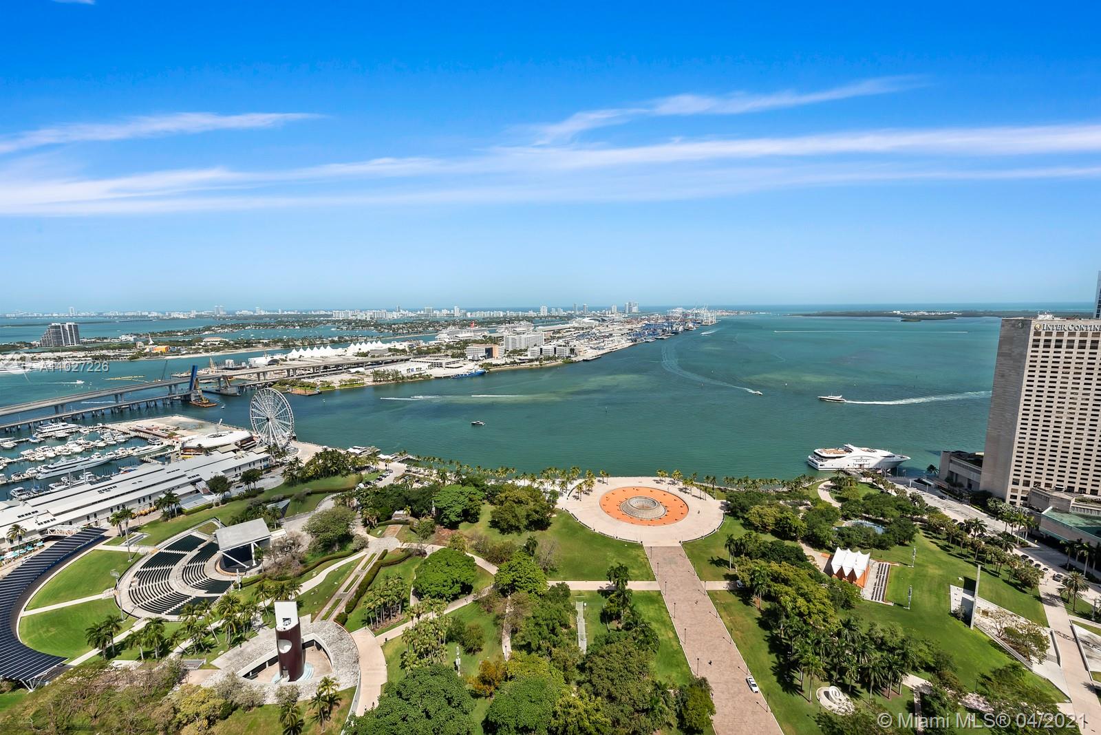 A metropolitan oasis at 50 Biscayne! East-facing residence 4106 features 3 bedrooms, 2 baths, travertine floors throughout, and a kitchen with all Teak cabinetry. The living room and bedrooms provide unobstructed, magical views of Biscayne Bay and Bayfront Park. In lieu of a balcony, exterior window art inspired by Roberto Burle Marx lets residents see the bay through the lens of his work. Bedroom windows open to allow the ocean breeze into the home. 50 Biscayne residents enjoy a 2-story clubroom, infinity-edge pool deck w/ cabanas and lush landscaping, and a 2-story health + fitness center containing a spa & meditation rooms. Located in Miami's lifestyle epicenter, walking to the arts + culture nearby such as Bayside Marketplace, Perez Art Museum, and AAA has never been easier.