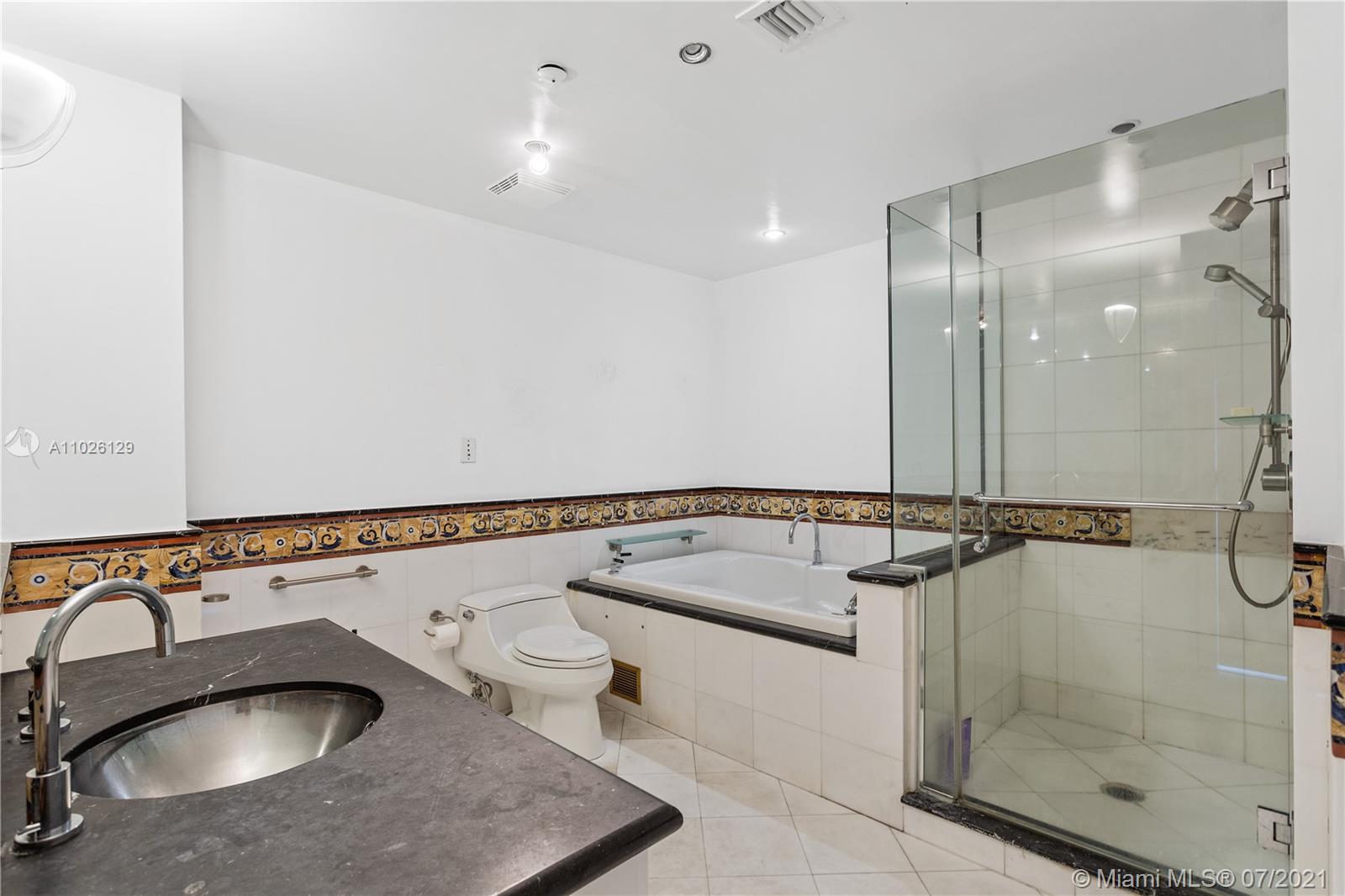 Don't miss out on these beautiful Sunsets! Best priced one bedroom at the luxurious Bentley Bay, full service, white-glove Condo. The oversized terrace (26ft x 15ft-approx) offers a feeling of floating on the bay. Spacious layout; Open kitchen with Sub Zero refrigerator, Gaggenau stove/oven, Samsung dishwasher and GE microwave. Extra large bathroom with tub and shower. Master bedroom with direct bay view. Throw on a coat of paint and move in or utilize the completed architect' plans (included with the sale) for a custom renovation of interior and exterior. Located on the 5th floor, step right over to the pool/cabana and spa as well as the buildings exercise room on the same floor. Washer/Dryer in unit. Easy Living ! One parking spot. Heated pool. $5000 seller credit. Contact agent.