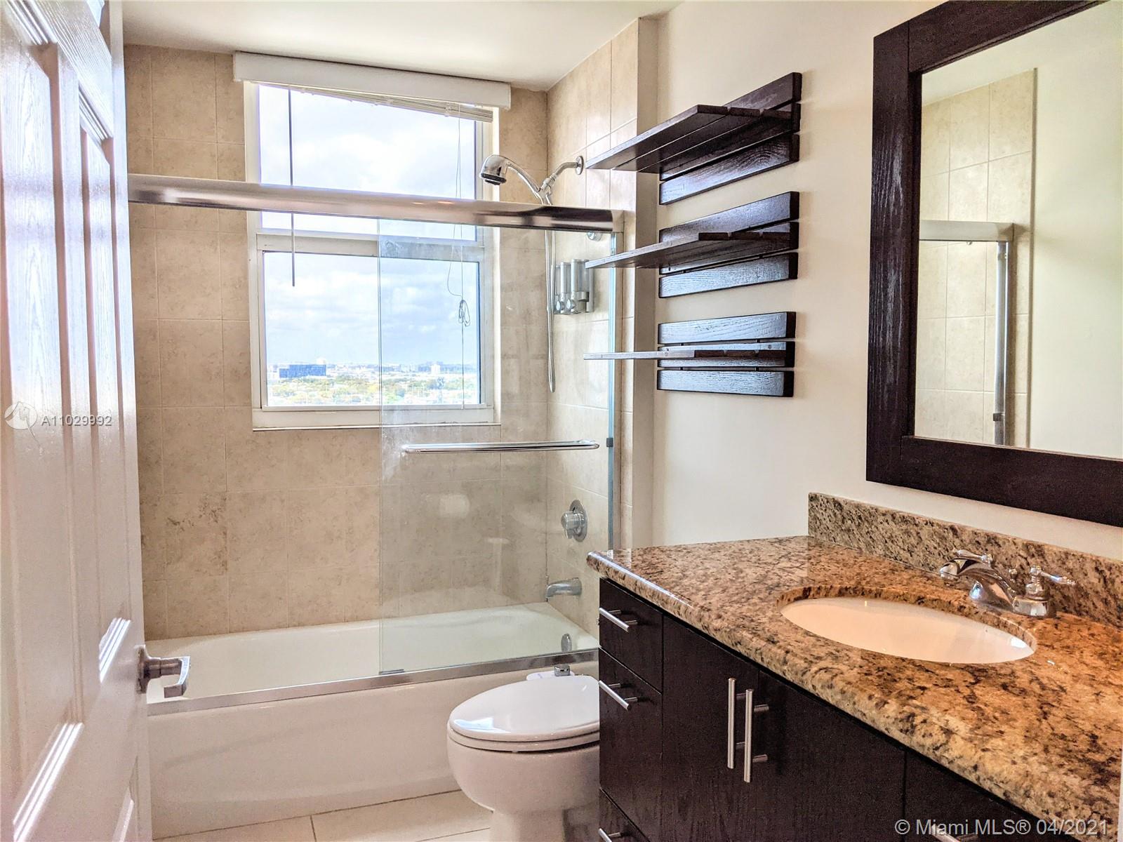 Enjoy beautiful sunrises and sunsets from this 2 bedroom, 2 bath corner unit. Intracoastal and city views through the floor to ceiling bay windows, tile floor throughout, open kitchen with granite countertops, washer and dryer inside unit. 1 assigned covered parking space. 1800 Biscayne Plaza has a modern lobby, fantastic pool area and fully equipped gym, and 24 hour security. Located in the new upcoming area of Edgewater. Close to the performance arts, American Airlines Arena, Bayside, the Art District and a few blocks from Downtown Miami!