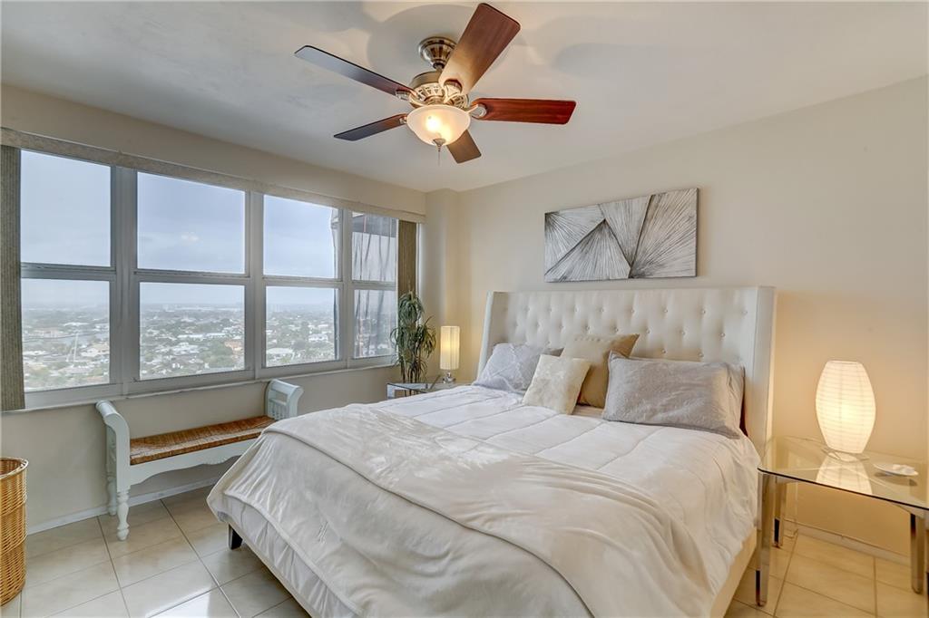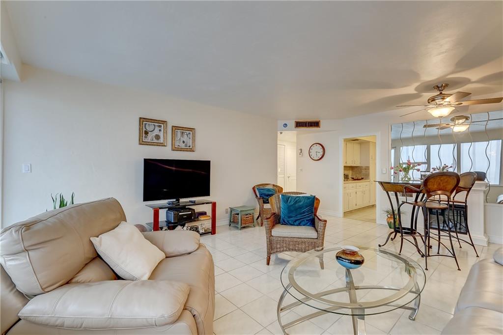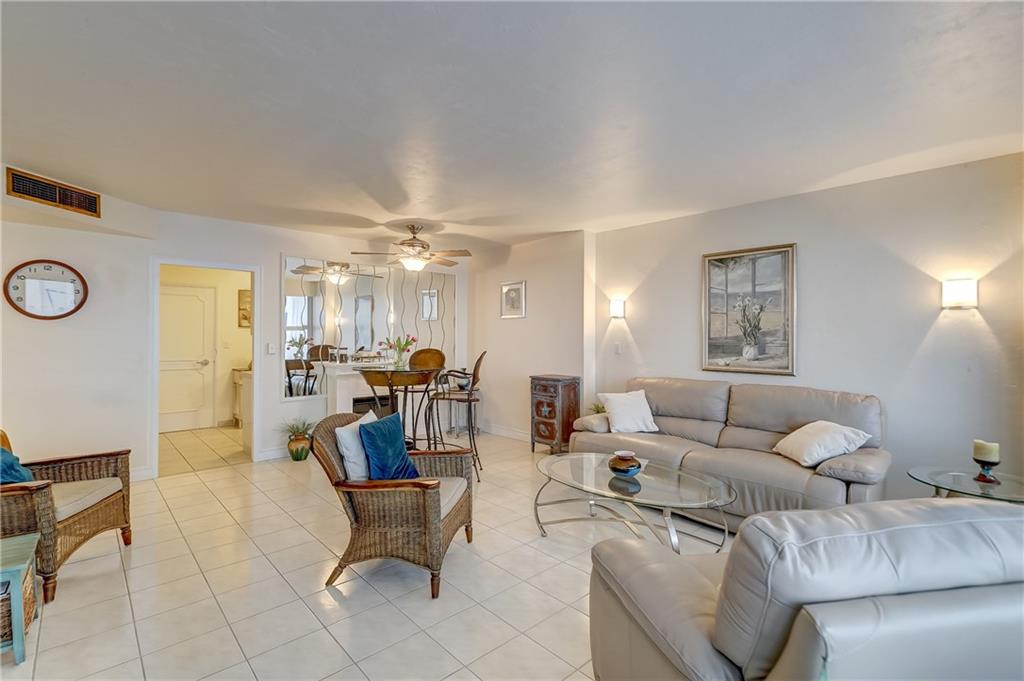 INTRACOASTAL & OCEAN VIEWS!! Move In Ready. Updated kitchen and bath with incredible views from the 16th floor. Pretty tile throughout. Electric fireplace in living room. 15 min walk to the beach. Swim in a 60' x 30' heated pool which gets sun all day. Shady areas nearby. Building being upgraded with new GLASS BALCONIES, Fresh new white paint and a new wired fire alarm system. Seller to pay all assessments at closing. Live in a resort like setting across the street from the beach. Full amenities include on site maintenance, 24 hour private guarded security, covered driveway entrance (porte-cochere), gym, bocce ball, shuffle board, separate clubhouse on the intracoastal. NO RENTING, Age 55+, $52,416 min income, no land lease, fiber optic cable & wifi included in $546 maint.