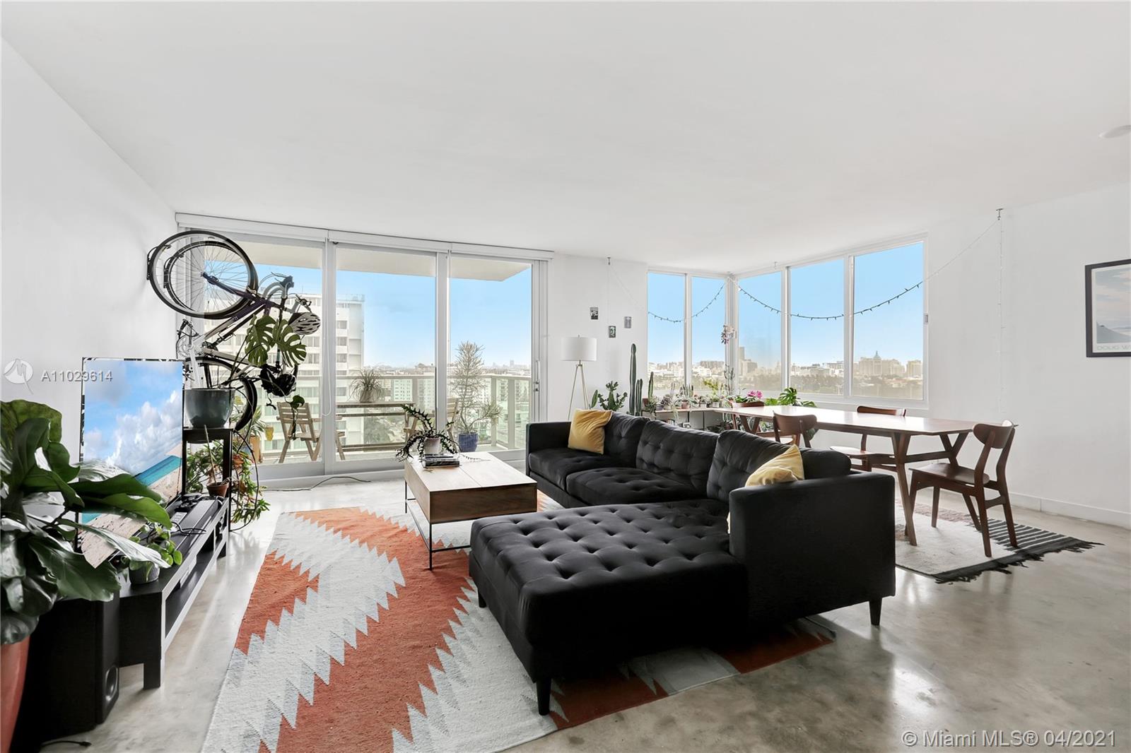 Over-sized 1 bedroom, 1.5 bath at the Mirador 1000, 14th floor overlooking all of SoBe with views all the way to the ocean. This unit comes with new high-impact windows and doors, 3 large closets, 2 are walk-ins, along with a linen closet. Apartment has polished concrete floors, updated kitchen, and a balcony. Unit comes with 1 assigned covered parking space ($20K value). The Mirador is a full service building that includes a doorman, gym, and pool. Please see following link to access the 3-D tour https://soflo-rephotos.view.property/public/vtour/display/1819074#!/matterport