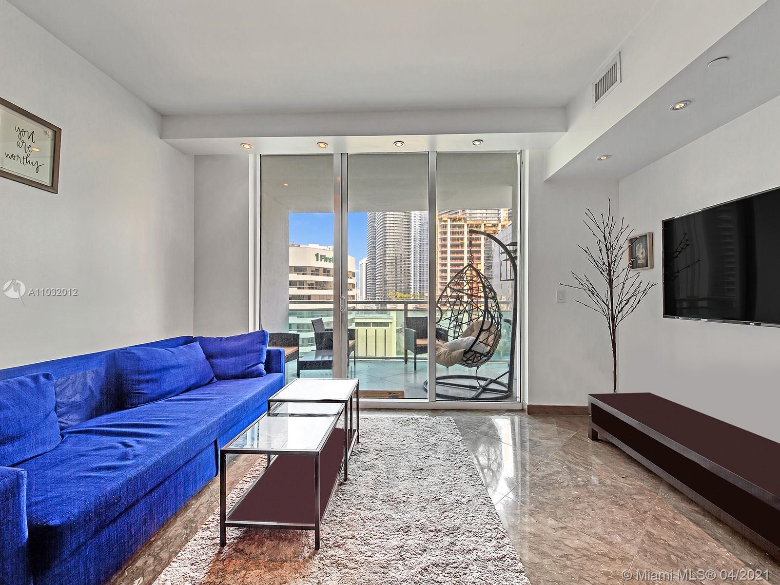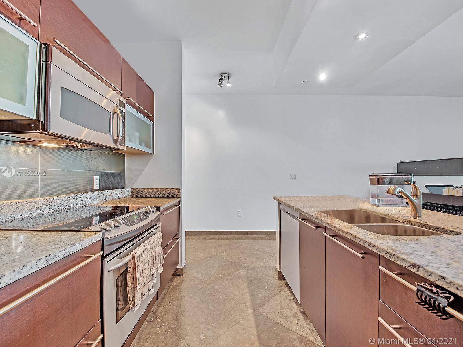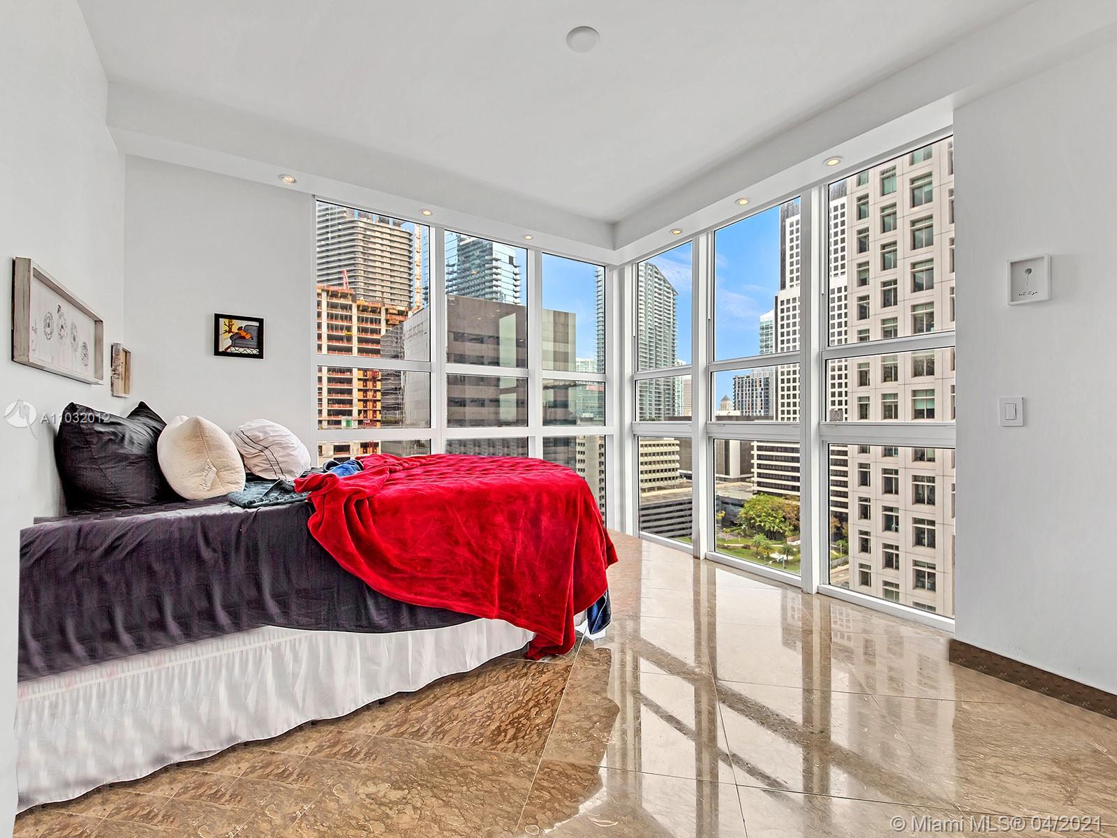Luxurious 1br/1ba corner unit completely remodeled with stunning views of Miami Skyline and Biscayne Bay. Marble flooring throughout. Kitchen is equipped with Italian cabinetry, granite counters and stainless-steel appliances. This unit has been customized w/motorized window treatments, extra lighting, and surround system. Open living space with over-sized impact-resistant windows. Sleek bathroom features extra wide bathtub, glass shower door and marble slab counters. Building offers 24-hour concierge, valet parking, 2 swimming pools, hot tub, sauna, lounge rooms, fitness center and more located in the center of the Brickell Financial District. Walk to work, metro mover, Mary Brickell Village, Brickell City Centre & Restaurants