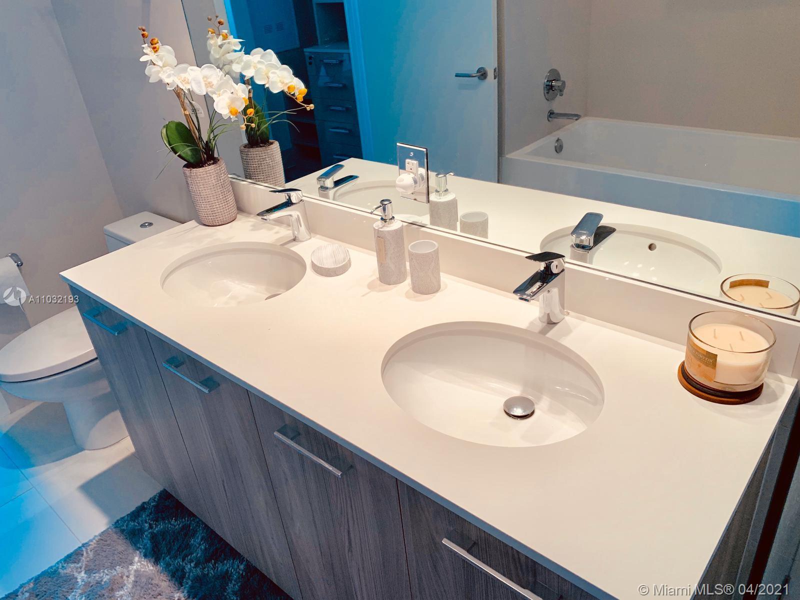 Amazing Biscayne Bay views and endless amenities. Unit is professionally furnished and decorated with porcelain floors, custom made closets and closets doors, and Automatic blinds. The unit is completely equipped with voice command Technology including lights, blinds. Spend sunsets or BBQ on the breathtaking pool rooftop at the 46th floor. Games room, party room, kids room, screen room, gym, 2 pools, spa, sauna, etc. Residents have access to the private Amara Beach Club. Seasonal rentals permitted minimum 30 days per association.