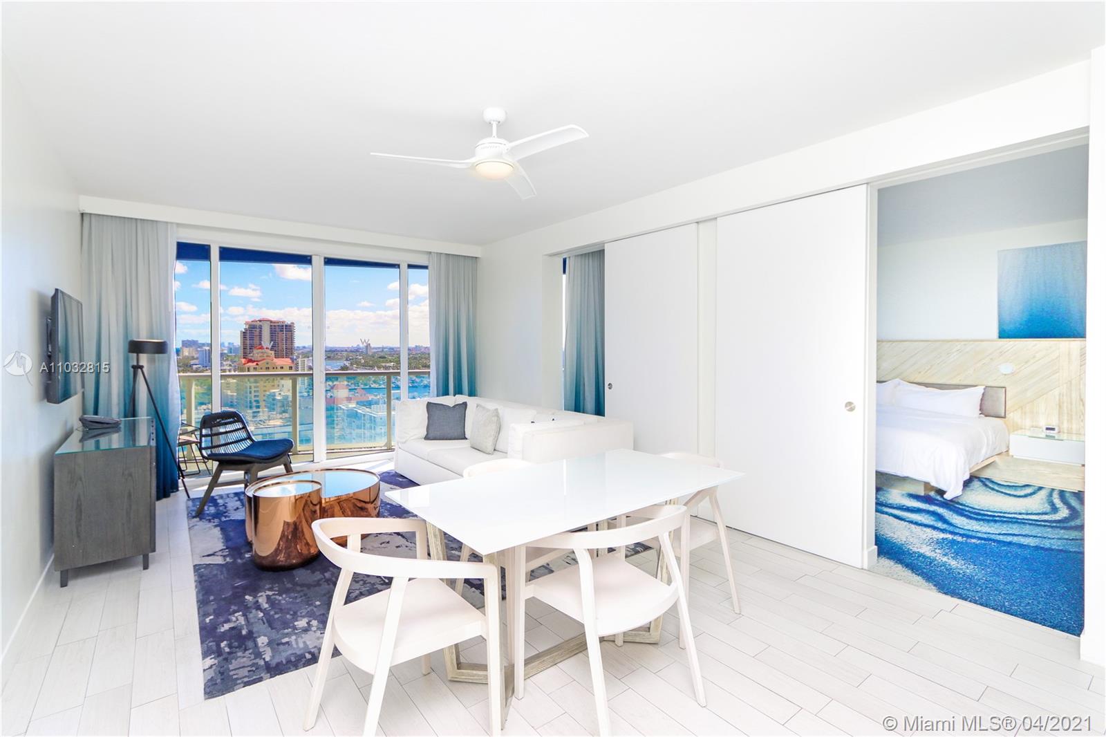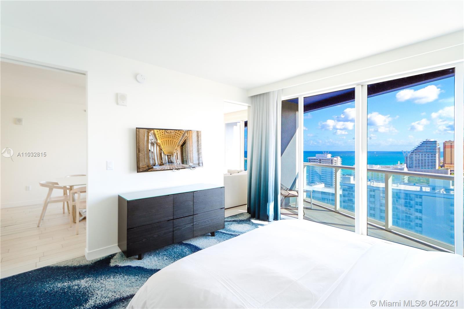 INVESTORS DREAM AT PRESTIGIOUS W HOTEL!Welcome to the most magnificent and tastefully furnished one bedroom and full one bathroom with direct ocean views from the living room and picturesque intracoastal sunset views from the master bedroom. Come live directly on the beach with all perks of W Hotel. Open layout, spacious balconies and stylish design round out this turnkey condo, complete with washer/dryer, full-size kitchen and top-of-the-line appliances. Enjoy resort-style Living amenities including 2 pools (east and west), AWAY Spa, fitness center, Living Room bar, Sushi Bar, Steak 954 and more.You can have it rented via hotel program while you are away and have great income property and enjoy the best water views from this unit while you stay. Best line and lowest price in the building.