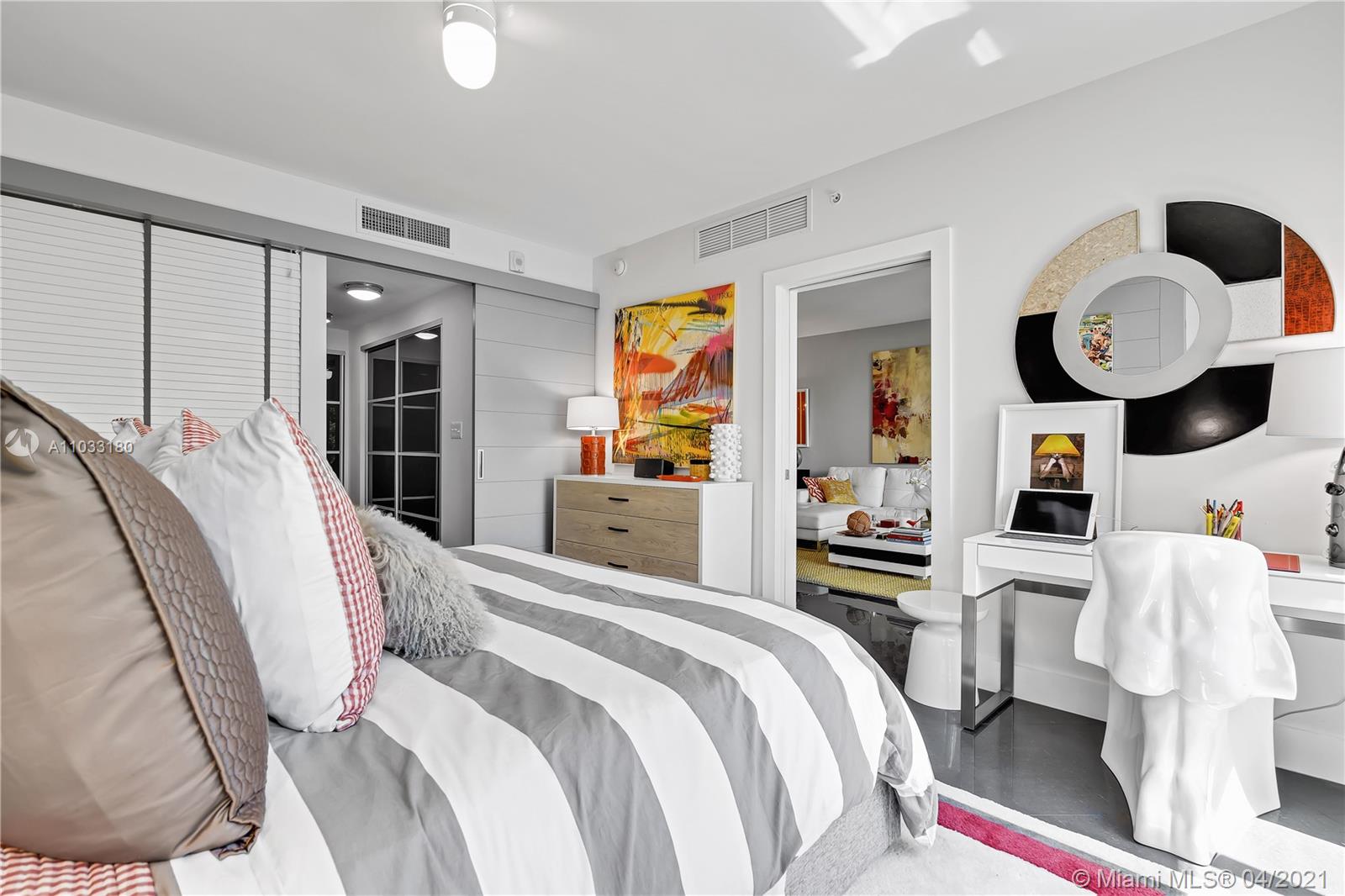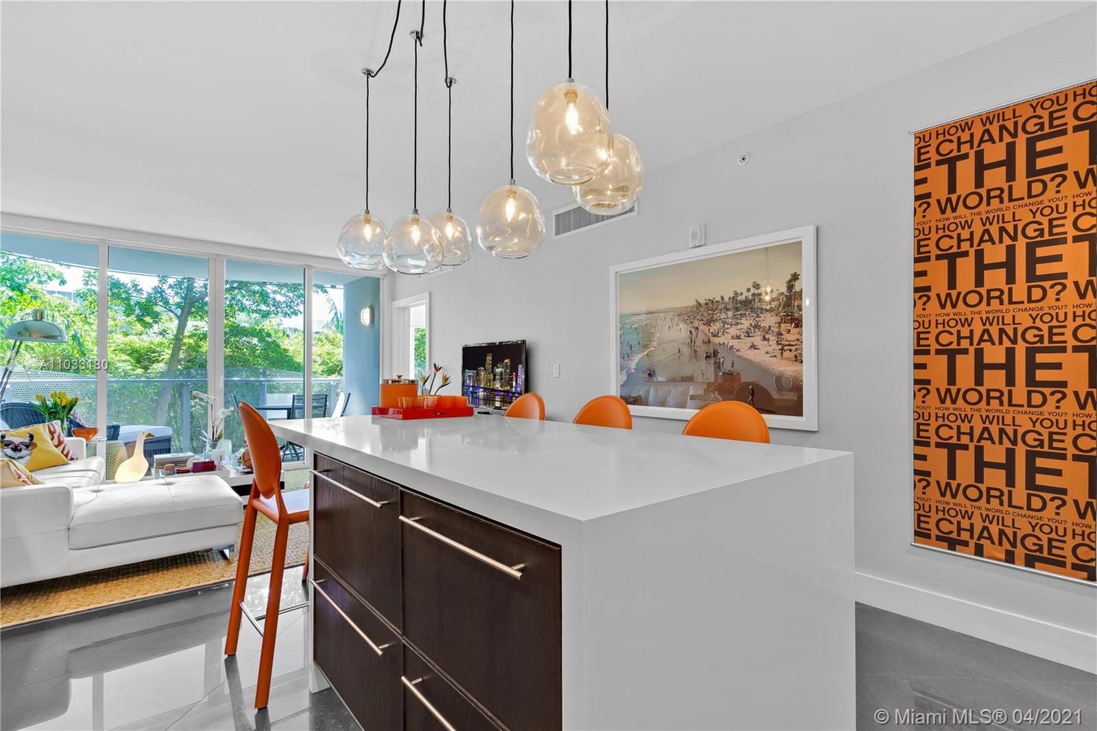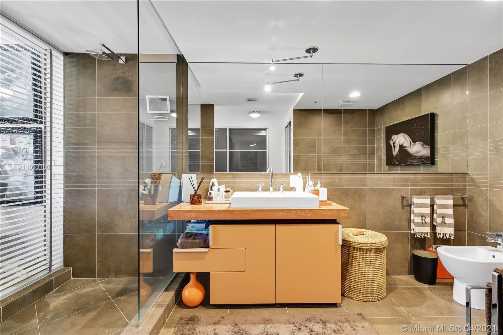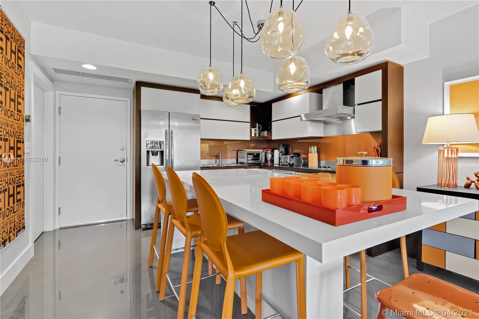 Best one bedroom, two bathroom in Artecity! Enjoy this quiet corner unit with Eastern exposure. You will be surrounded by lush green gardens outside, and lots of designer upgrades inside , including a kitchen island and beautiful lighting fixture. Phenomenal location in the heart of South Beach cultural and artistic hub. Surrounded by visual and performing arts venues like the Bass Museum, the Convention Center and Miami City Ballet. Just a short walk from the Ocean. Shared amenities are located throughout the property. Residents enjoy lush outdoor spaces and relaxing gardens, two pools, a fully equipped gym, 24 hour concierge service, valet parking and beach services ( umbrella and 2 lounges).