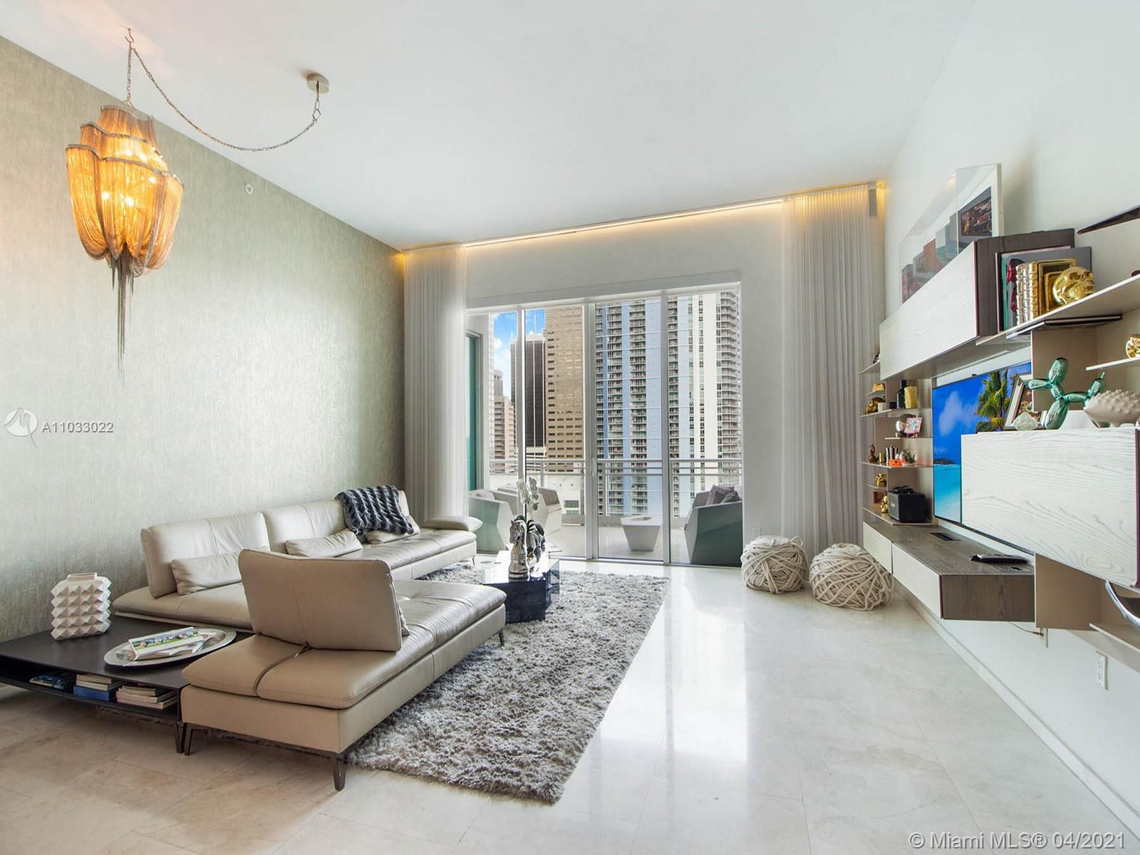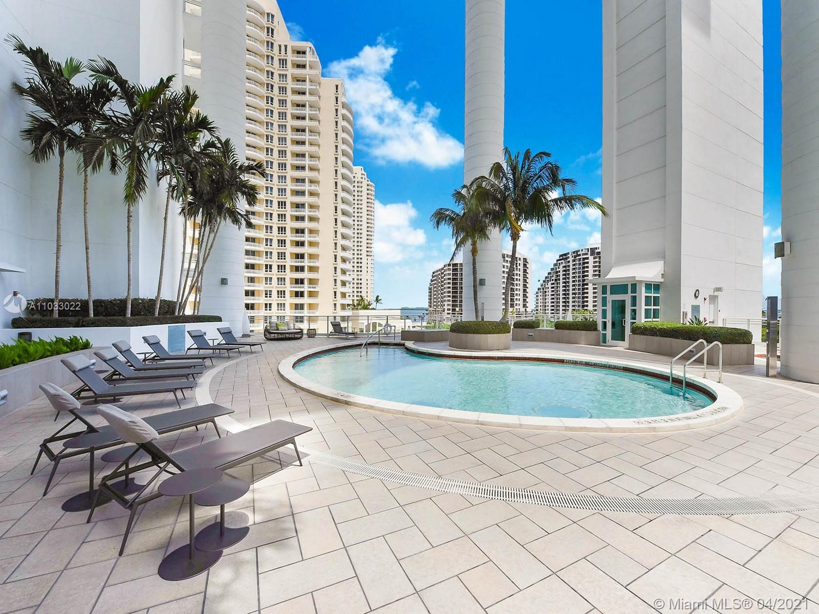 Asia is the most private building on the island of Brickell Key. This seller spared no expense and upgraded the kitchen cabinetry, countertops and appliances and custom lighting throughout this spacious two bedroom. Vaulted ceilings make the space feel larger with an extra nanny or storage room. Stunning views of the Bay from every room with an oversized balcony perfect to relax and take in the Miami fresh Ocean air. Fabulous amenities include fitness center, tennis, racquetball, resistance pool, sauna and jacuzzi. Two assigned parking places.
