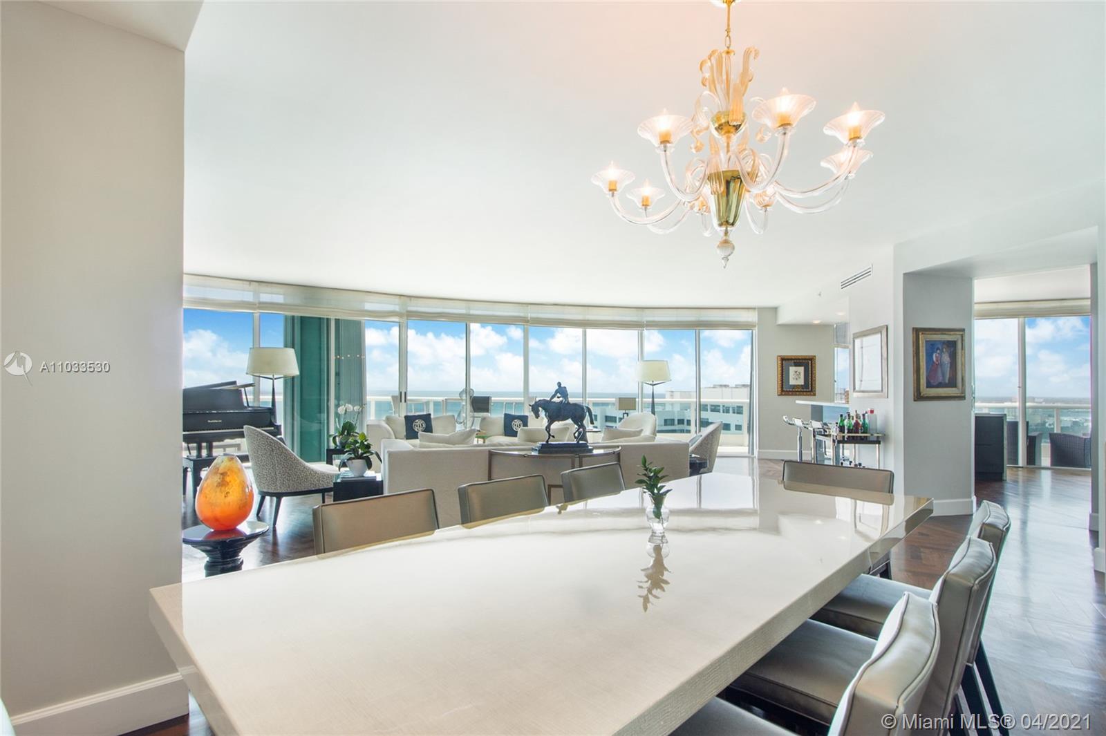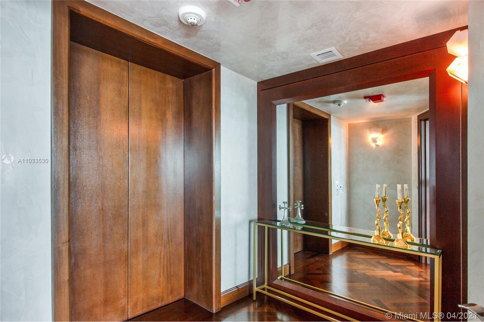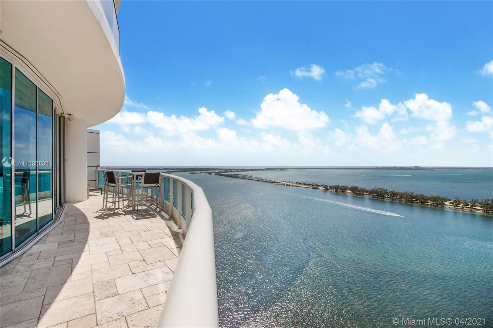 Impeccable designer remodeled residence, featuring unobstruted breathtaking panoramic views, over looking Biscayne bay. Upgrades include an open kitchen concept, blending in perfectly with the oversized family & dining rooms, including high-end appliances; Subzero and Wolf cook top, range and microwave. Private elevator foyer with beautiful Venitian plastered walls, rich finishes like mahogany herring-bone patterned floors, bled beautiful with contemporary finishes. All rooms offer water views & each room has direct access to the oversized wrap-around balcony. Designer furniture and art negotiable at a separate price, for a complete turnkey opportunity. Rare 3 assigned secured covered parking spaces included, as well as an additional storage unit convey with the property.