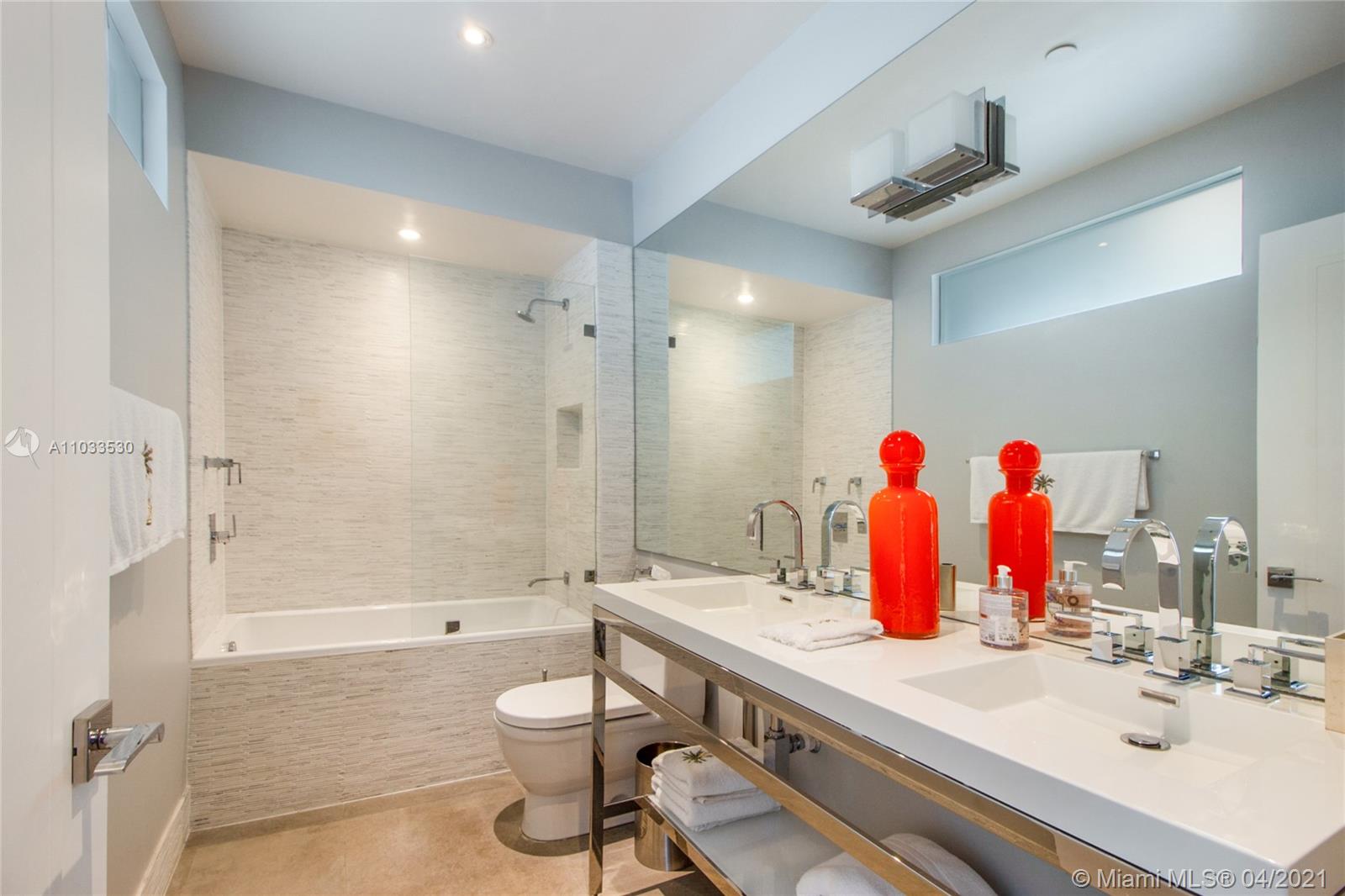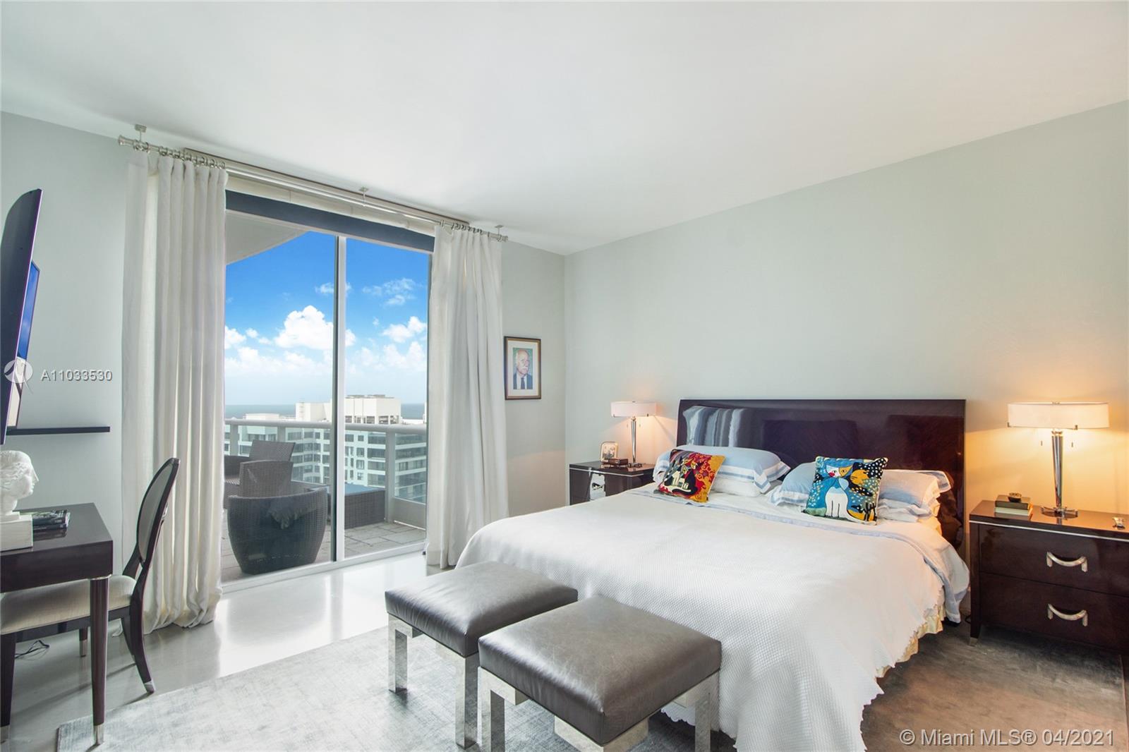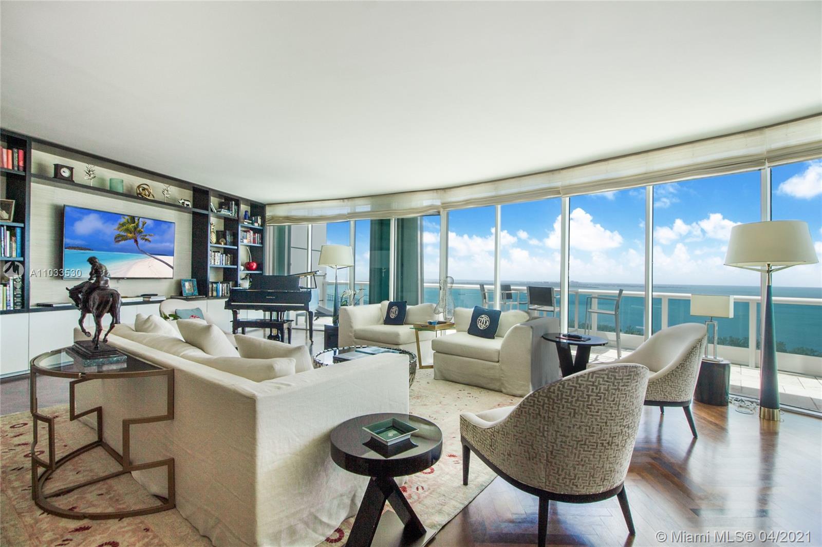 Impeccable designer remodeled residence, featuring unobstruted breathtaking panoramic views, over looking Biscayne bay. Upgrades include an open kitchen concept, blending in perfectly with the oversized family & dining rooms, including high-end appliances; Subzero and Wolf cook top, range and microwave. Private elevator foyer with beautiful Venitian plastered walls, rich finishes like mahogany herring-bone patterned floors, bled beautiful with contemporary finishes. All rooms offer water views & each room has direct access to the oversized wrap-around balcony. Designer furniture and art negotiable at a separate price, for a complete turnkey opportunity. Rare 3 assigned secured covered parking spaces included, as well as an additional storage unit convey with the property.