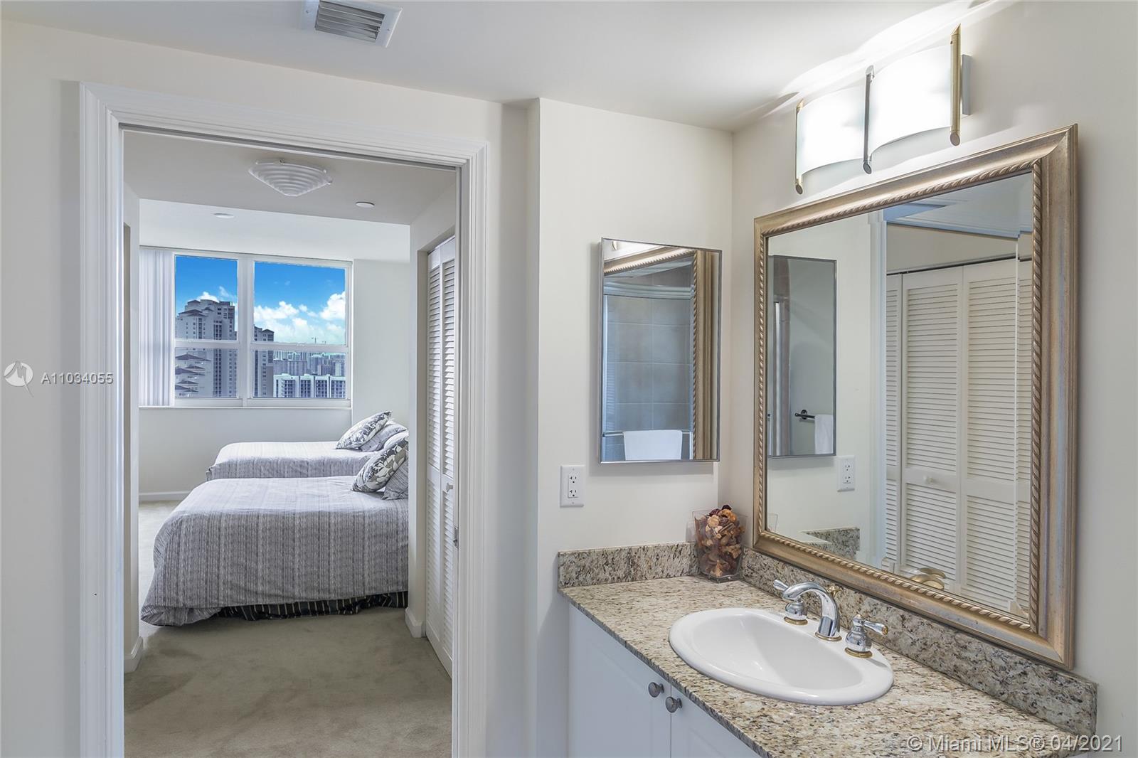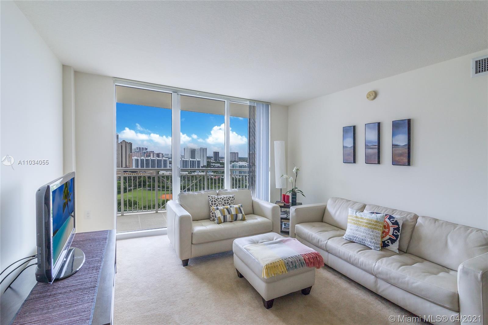 Aventura lifestyle converges around the private Golf and Country Club, the famous Aventura Mall and the city signature restaurants and parks. This well appointed 2-Bedrooms flat features city, park and Intracoastal views with plenty of natural light, granite counter tops, walking closet, laundry room and open balcony. The building offers services like valet, 24/7 attended lobby personnel, heated pool with Jacuzzi, recreational deck, landscaped walks areas, BBQ gazebo, playground, business center, meeting-social room, billiard room, fitness center with Yoga studio, massage and steam rooms. Walking distance to all conveniences, short ride or bike to the Beach, 3-miles exercise path,Tennis courts and Soccer and Baseball fields. Live, Work and Play!