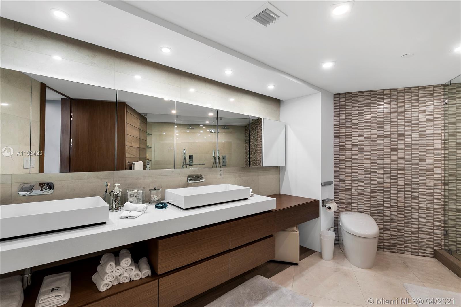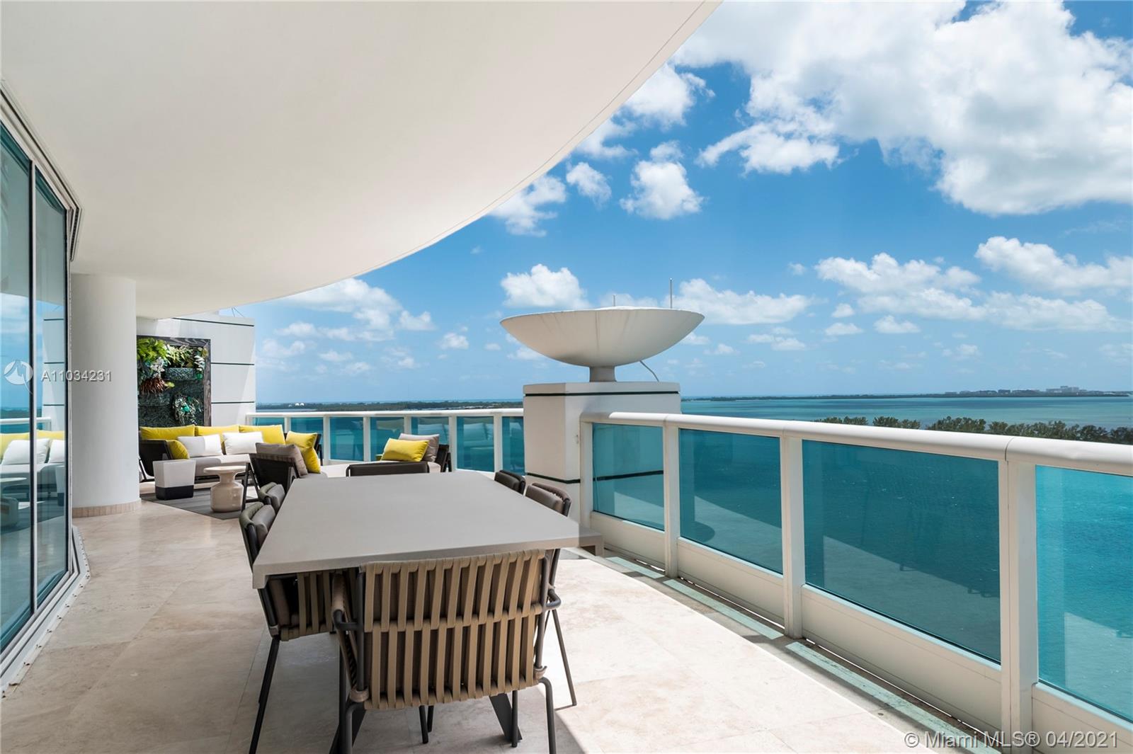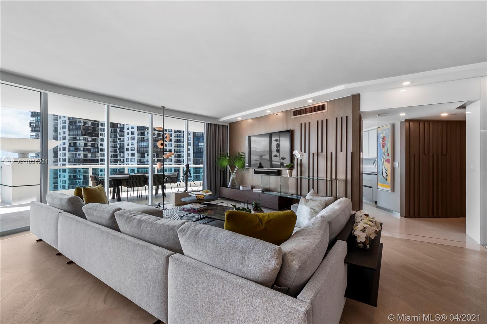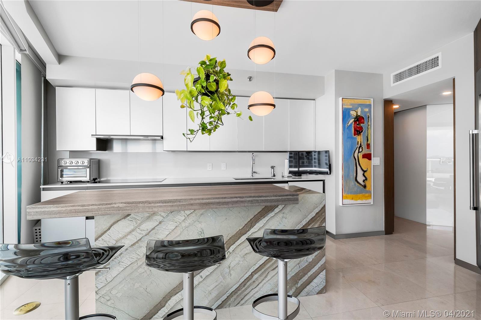 STUNNING and FULLY RENOVATED unit in the luxurious Bristol Tower. This unit is truly one-of-a-kind with exquisite finishes. Everything in the apartment was custom-made. Featuring: imported Italian woodwork for closets, built-ins, and cabinetry, marble counters, Thermador appliances, floor-to-ceiling windows, spectacular views from every room, gorgeous accent walls made of natural stone and wood, and a private elevator & foyer. Enjoy alfresco dining and gorgeous sunrise and sunset views from this unique wrap-around balcony, one of the largest in the building. Amenities: swimming pool, clubroom, fitness center, sauna & steam room, children's playground, complimentary valet, concierge, 24-hour security, cafe, & tennis court. 2 parking spaces + 1 storage - Light fixtures not included!