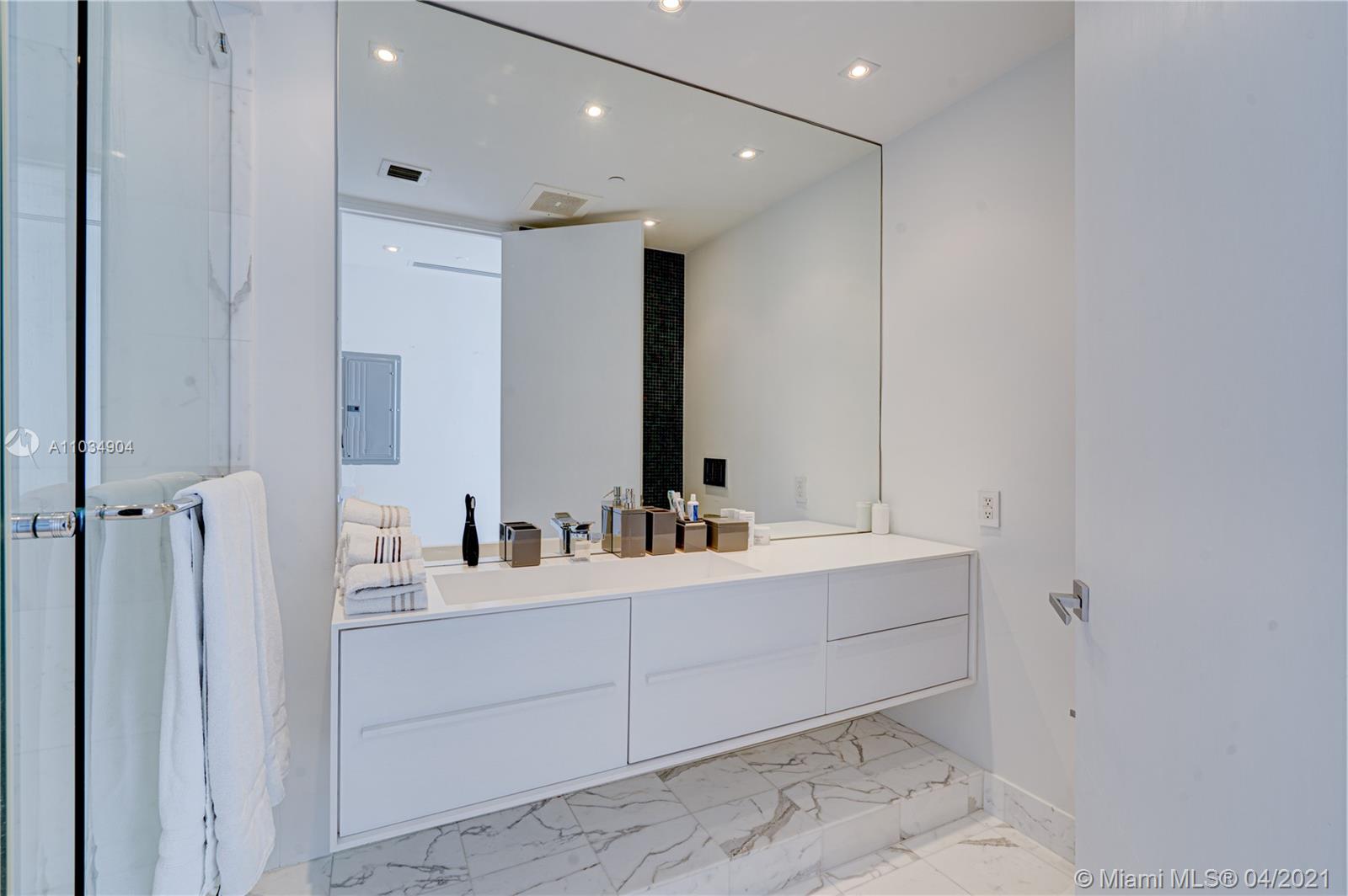 Corner unit on the 48th floor with southeast exposure overlooking Brickell, Brickell Key and Key Biscayne. Completely remodeled unit with fine touches, featuring 3 bedrooms, 3 full bathrooms, Automated system for lighting, sound and Window treatments. Master bedroom features a large closet space, double sink and cabinets, enclosed shower and Toilet room. This unit offers a storage room inside the unit. AC diffusers, custom mirrors an much more. Icon’s architecture, by the world renowned firm Arquitectonica, is unique and ultra-contemporary, perfectly paired with the interior design by Philipe Starck. Its Olympic-length pool overlooking Biscayne Bay, its exceptional spa, and its lushly landscaped outdoor living room, are some of the distinct amenities that make this building a true icon.