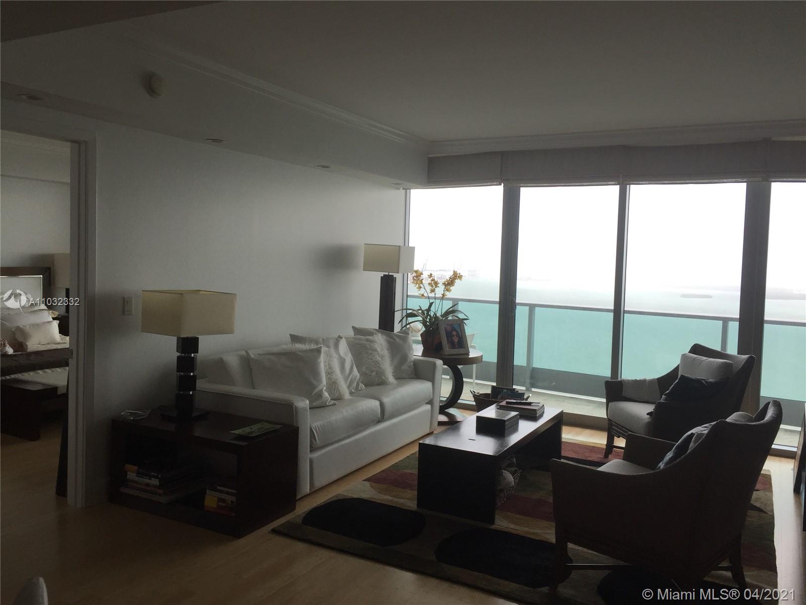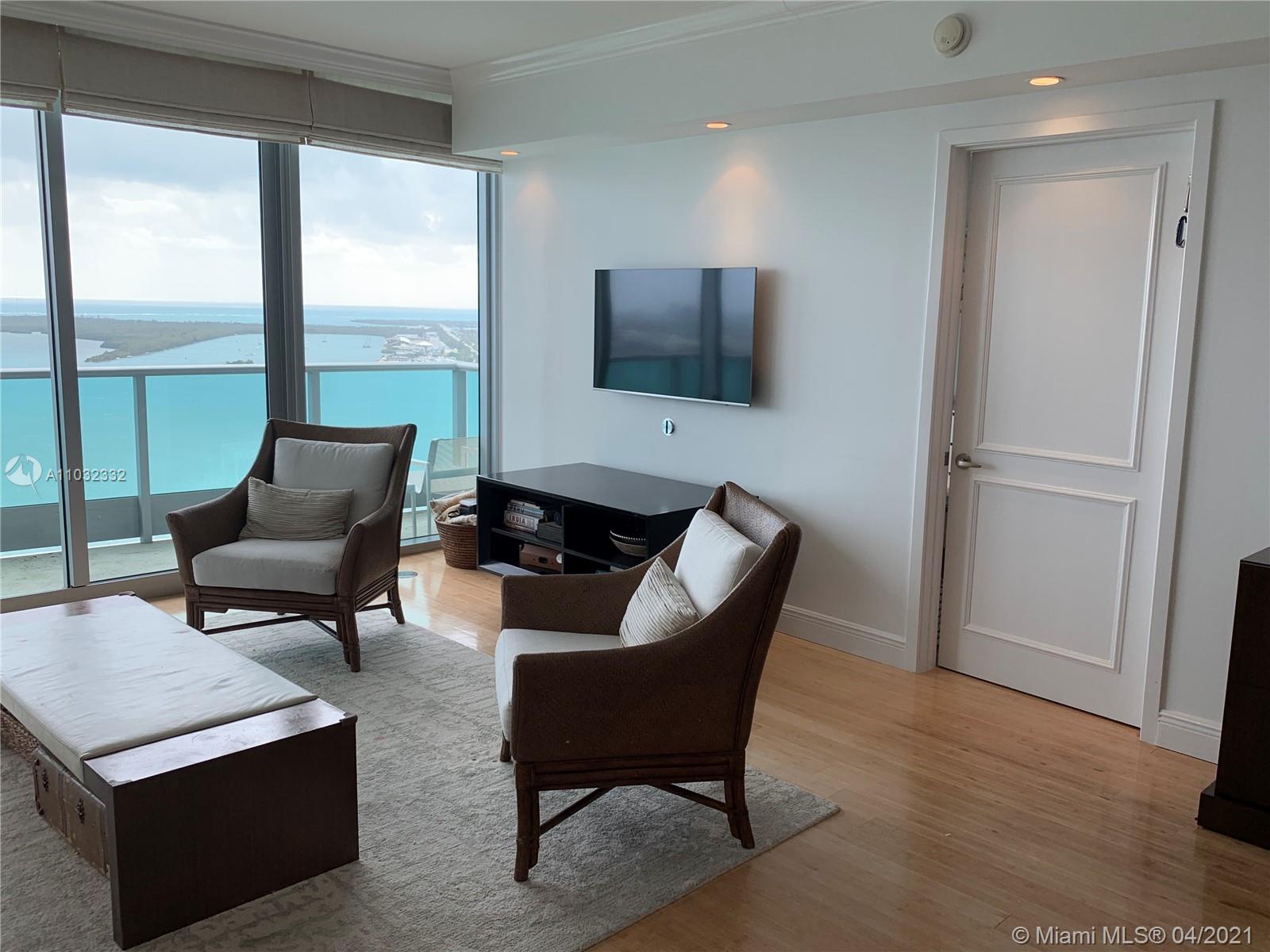 2 Bedroom / 3 Full Bathroom + DEN (Queen Murphy bed custom built and slide doors to convert it into a private room) Water views from every room. Custom made motorized roller shades and impact windows. Over sized bathroom with shower & jacuzzi, Italian kitchen cabinets, granite countertops, Sub Zero fridge and Miele appliances, wine cooler, built-in coffee maker. Private elevator to your foyer entry. Unit comes with 2 assigned parking spaces in the lobby level + storage unit. Amenities: Full service concierge, fitness center, spa, rooftop party room, infinite pool and jacuzzi, business center, kids room, 24hr valet, security, infinity pool.