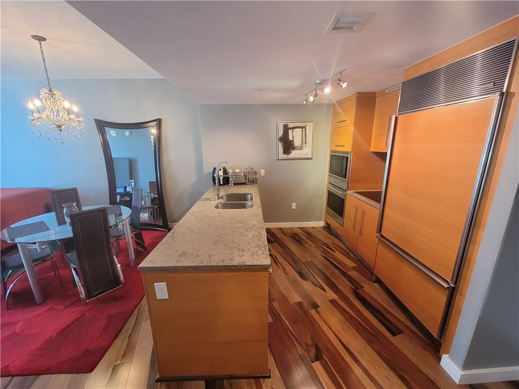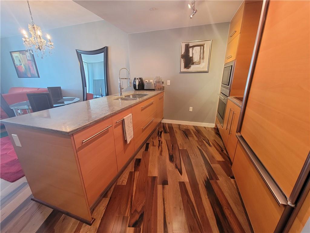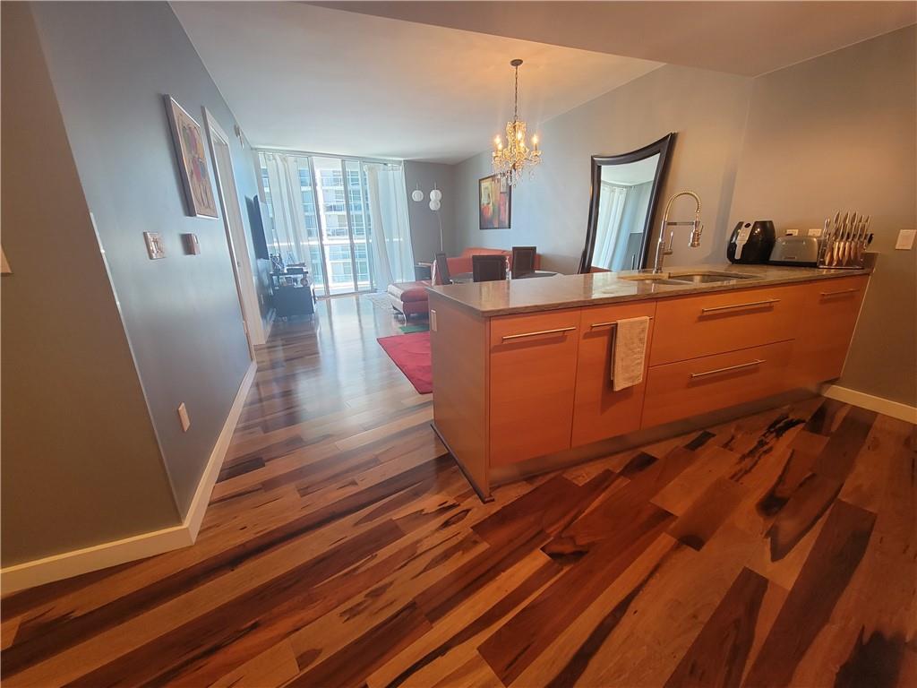 Beautiful unit in the Icon Brickell. Breathtaking water views of Biscayne Bay out to the Ocean. Pool views strait below. Modern hardwood floor upgrades. Wolf & Bosch appliances, Sub-zero fridge, large walk in closet. 5 Star amenities. Unit comes furnished and ready to move in. All within walking distance to Brickell's finest restaurants and shops.