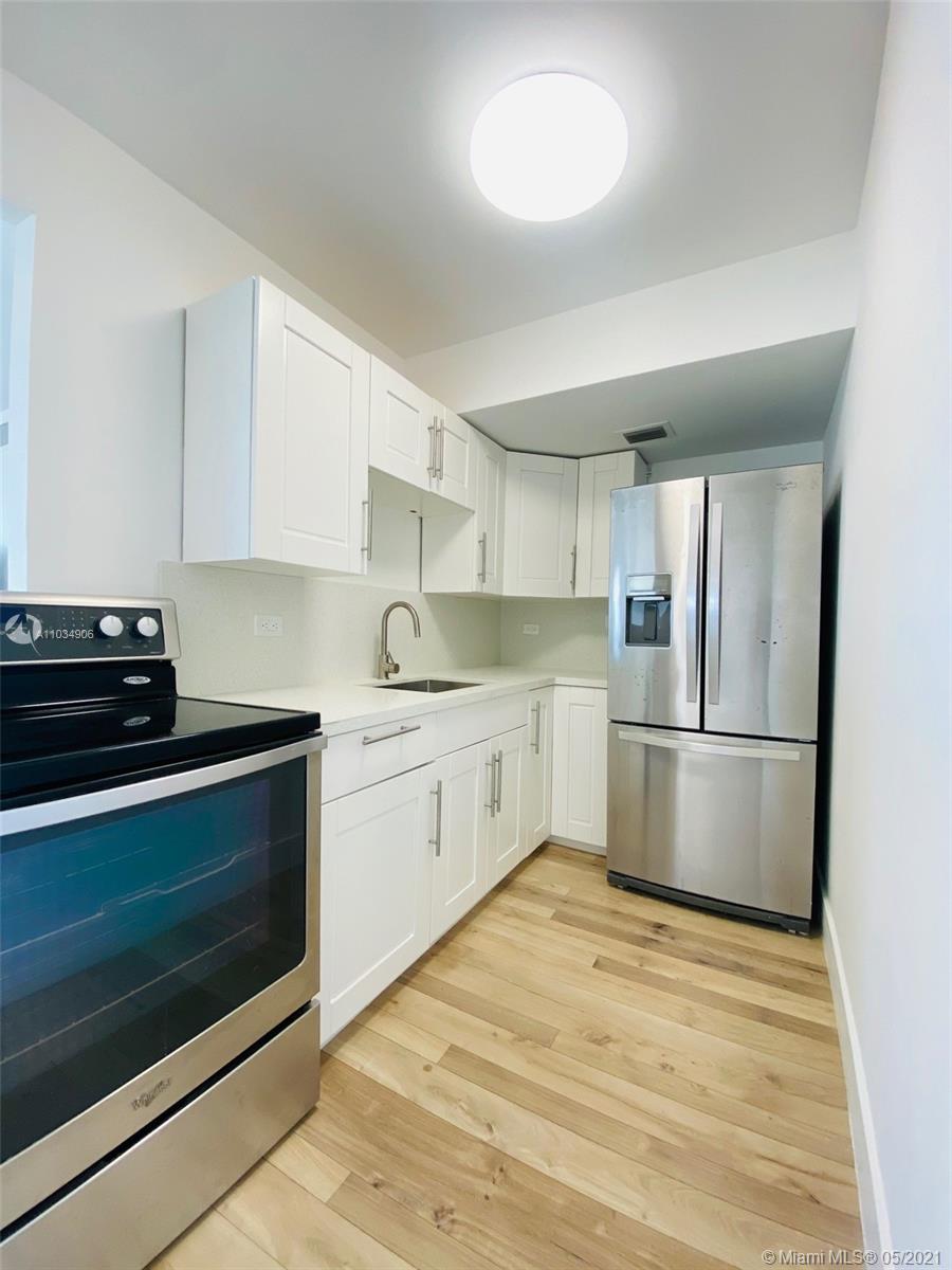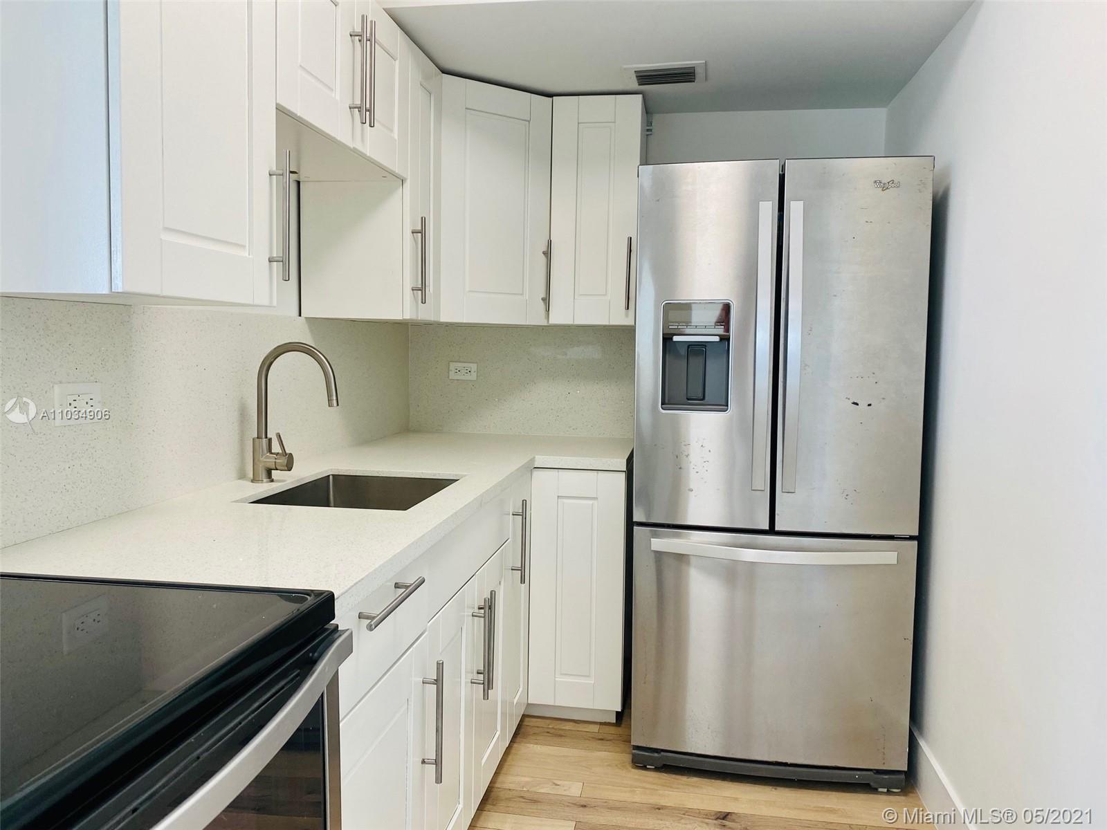 Bright & spacious 1 bedroom ( 2 bed on tax rolll can easily be converted back) Stunning updated bleached wood floors thru out updated kitchen , stainless steel appliance, quartz counter tops, Updated bath/vanity. Impact window too... refinished wood floors.. great closet space- washer/dryer combo text agent for showing