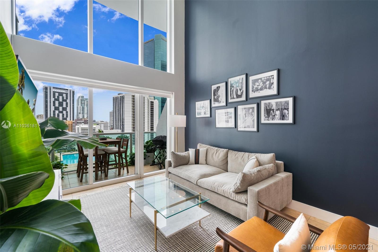 Located in the coveted Brickell on the River South sits this perfectly appointed 2 Bedroom 2 Bathroom loft style unit. Upon entry you are greeted by vaulted ceilings and an abundance of natural light with endless city views from every room. Enjoy a large master suite with private balcony, large walk-in closet, double vanity bathroom and space for a home office. Other property features include updated appliance package throughout the kitchen, Philips Hue smart lighting and automated window treatments.