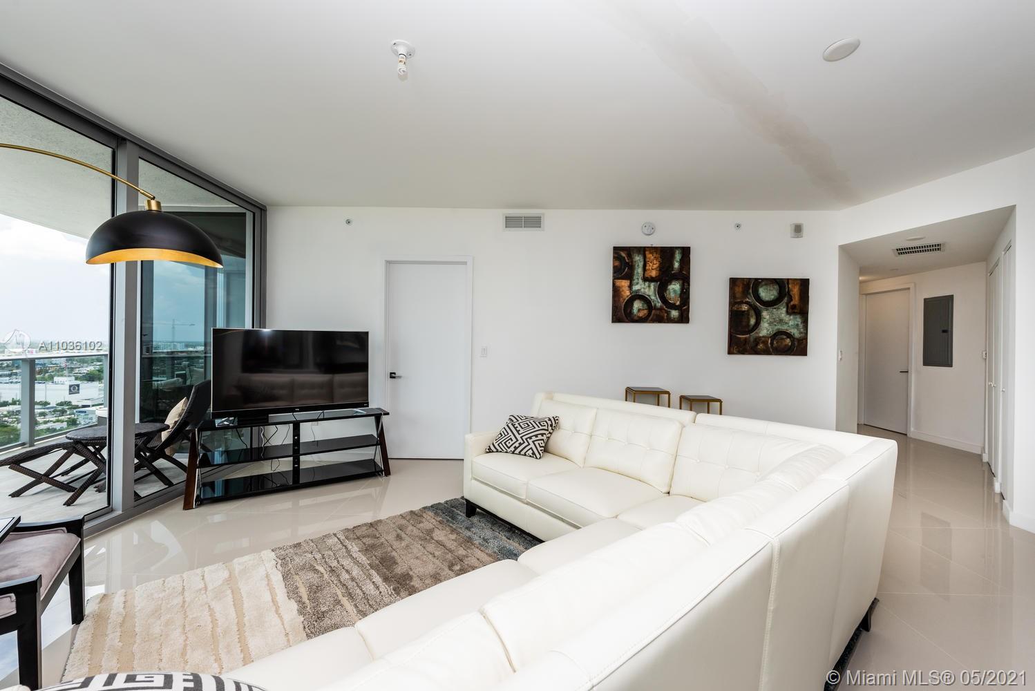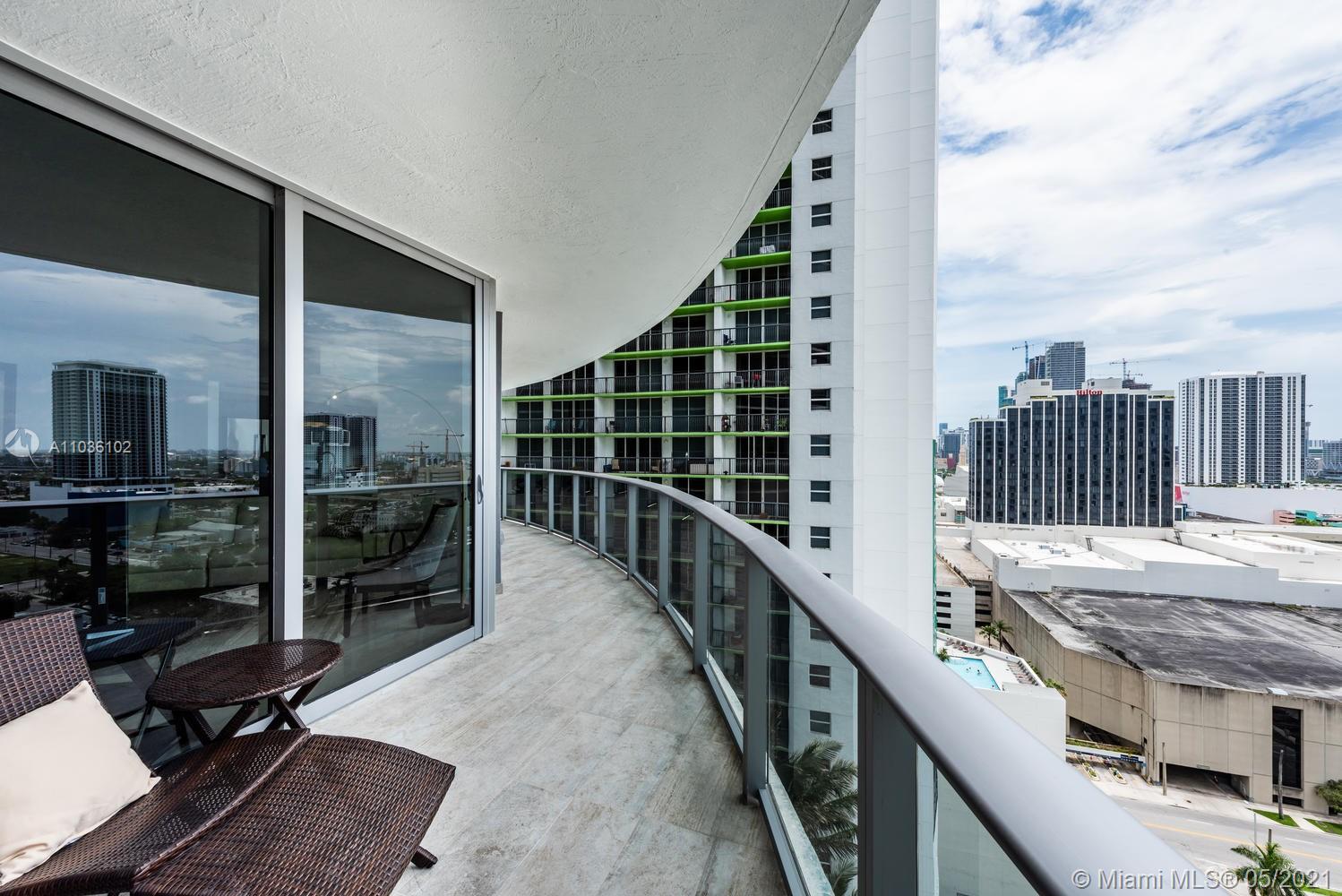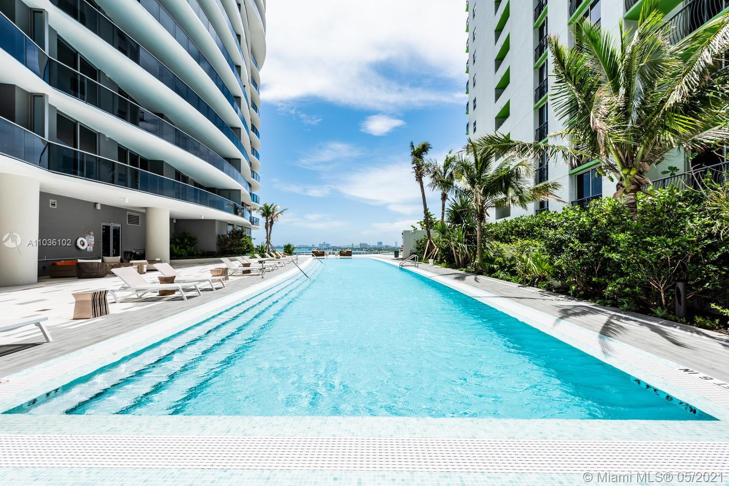 Aria on the Bay 2 Bed 2 bath, corner unit with wraparound balcony, LINE 00 BEST PRICE ON THE BUILDING , accessible from every room, and spectacular views. Ocean & bay views to the east, sparkling skyline views to the south & striking Miami views to the west. Beautifully interior featuring gleaming Italian porcelain floors, wide open quartz & stainless steel kitchen featuring Bosch appliances & custom italkraft cabinetry, fully built out walk-in closets, two master suites with an extra half bath for guests, laundry inside & more. Aria on the bay is Edgewater's best. Impressive amenities include the 24/7 doorman, valet & concierge, dual pool & hot tub decks, private yoga studio, spa, 5-star fitness center, party room, theater & more.