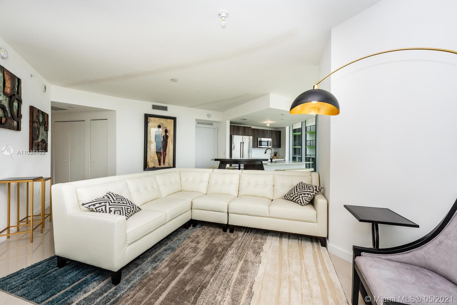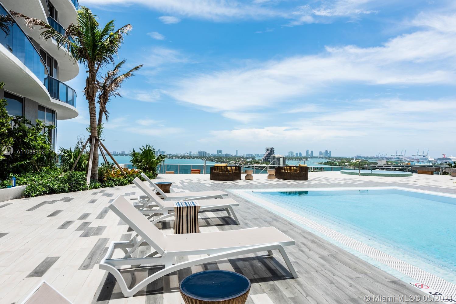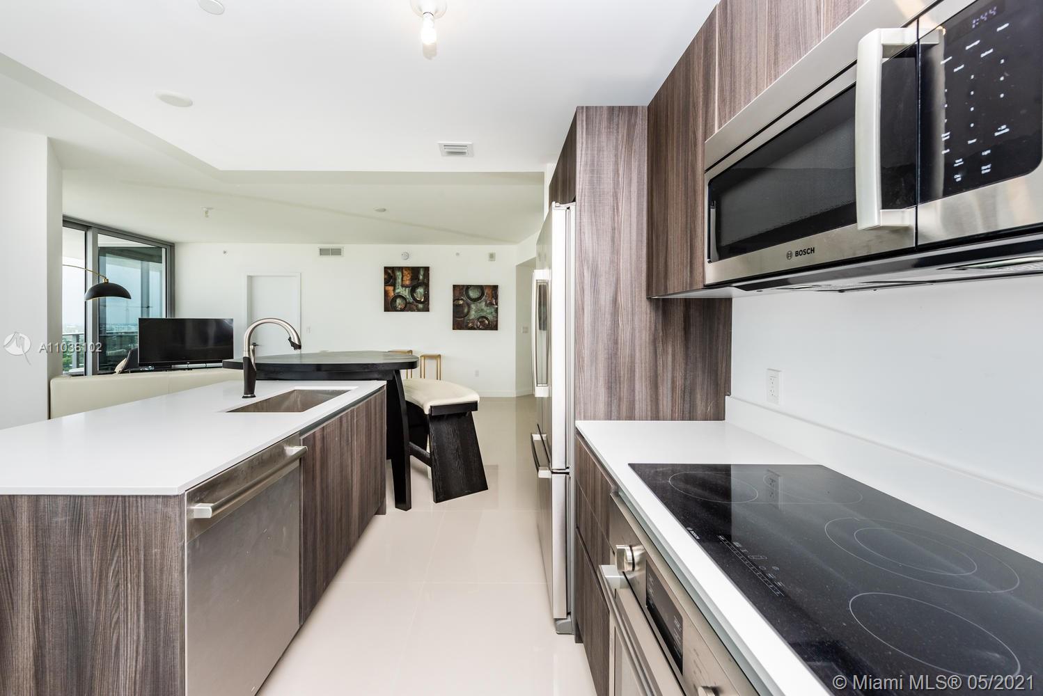 Aria on the Bay 2 Bed 2 bath, corner unit with wraparound balcony, LINE 00 BEST PRICE ON THE BUILDING , accessible from every room, and spectacular views. Ocean & bay views to the east, sparkling skyline views to the south & striking Miami views to the west. Beautifully interior featuring gleaming Italian porcelain floors, wide open quartz & stainless steel kitchen featuring Bosch appliances & custom italkraft cabinetry, fully built out walk-in closets, two master suites with an extra half bath for guests, laundry inside & more. Aria on the bay is Edgewater's best. Impressive amenities include the 24/7 doorman, valet & concierge, dual pool & hot tub decks, private yoga studio, spa, 5-star fitness center, party room, theater & more.
